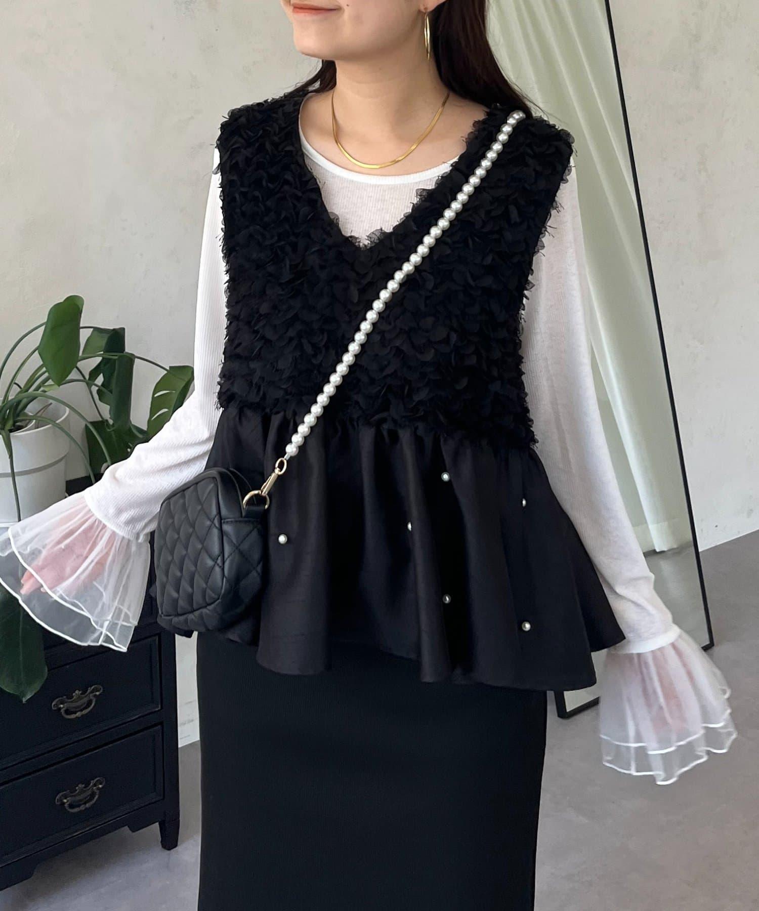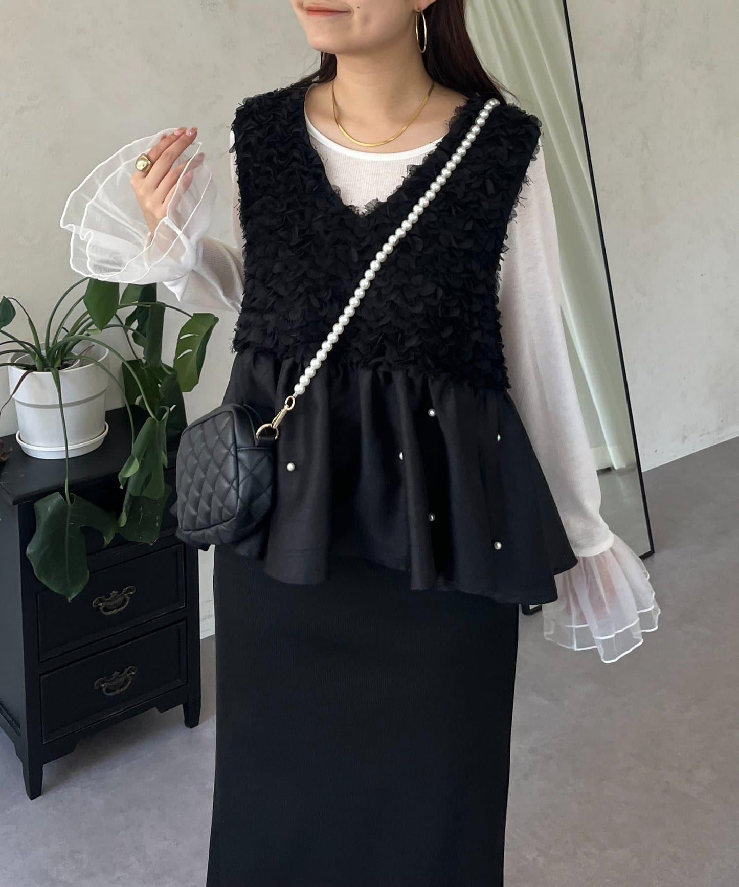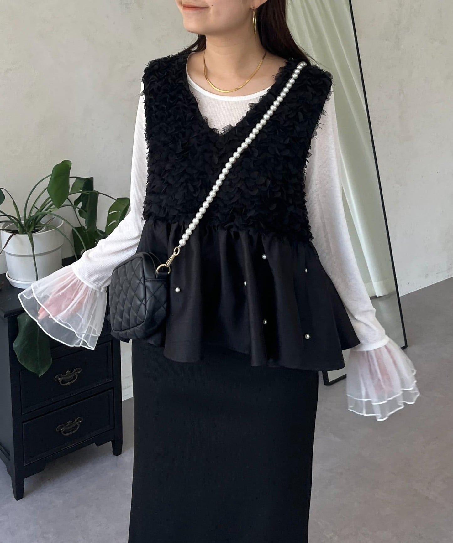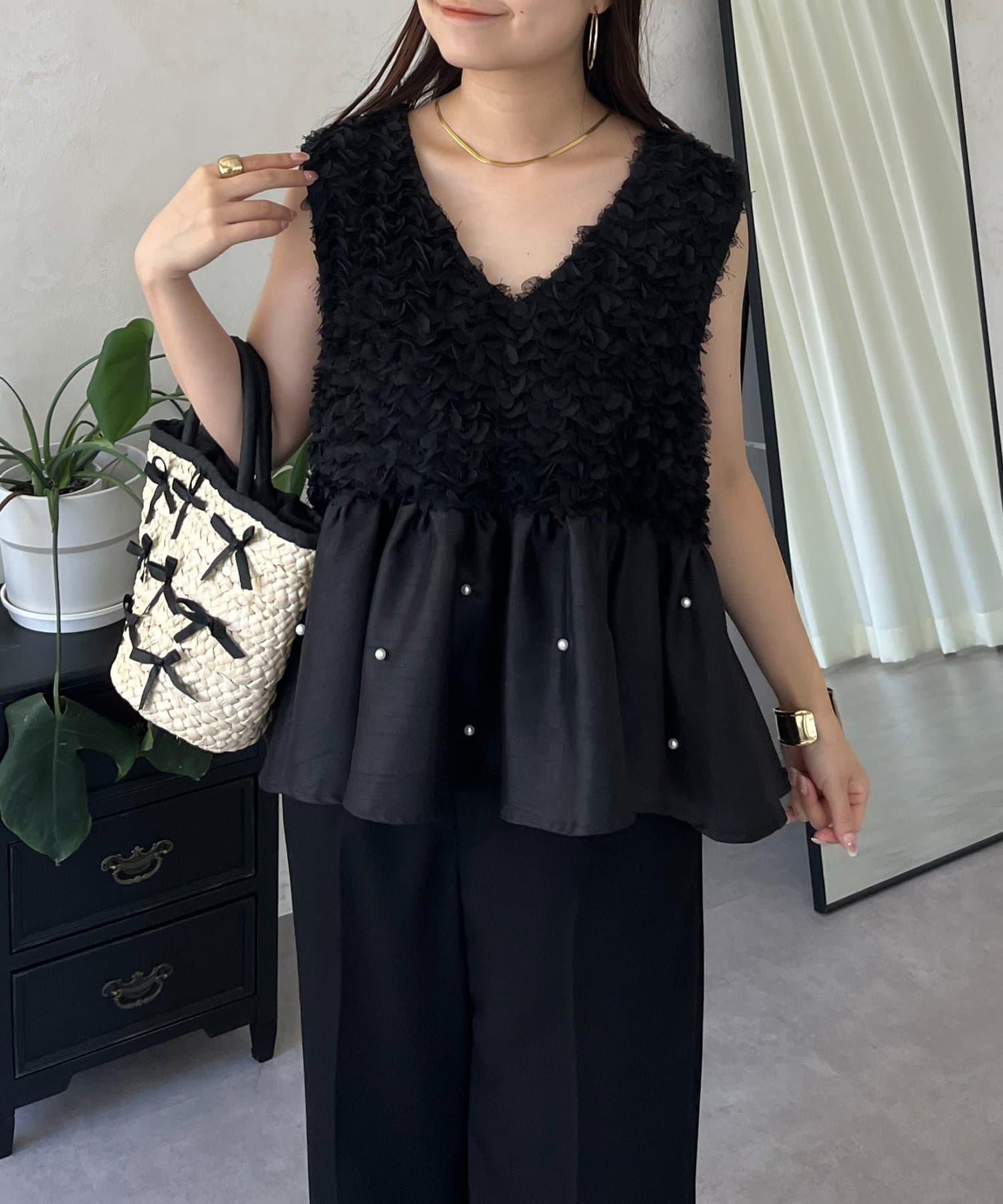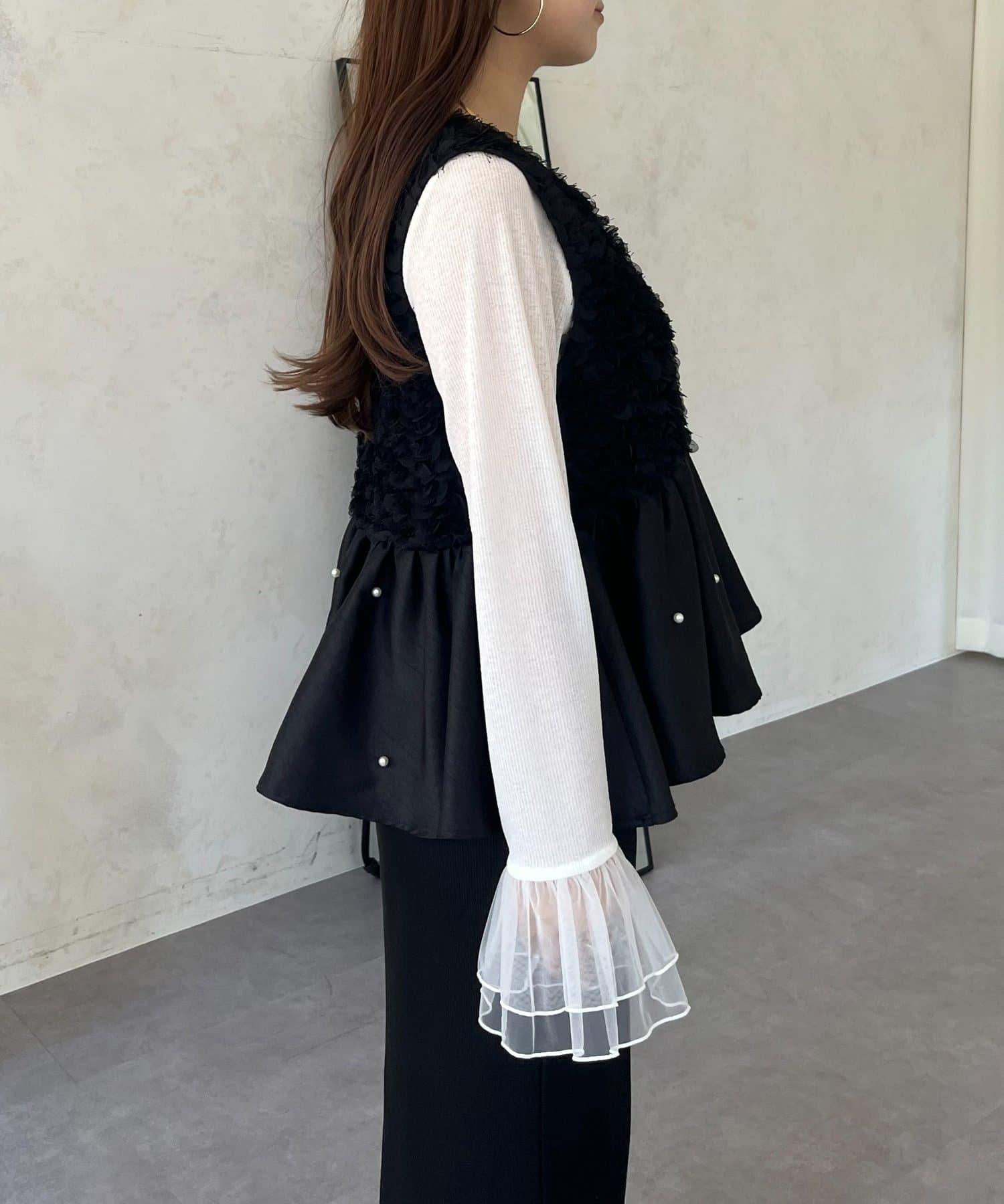 【總選舉參賽單品】花卉圖案珍珠荷葉邊背心