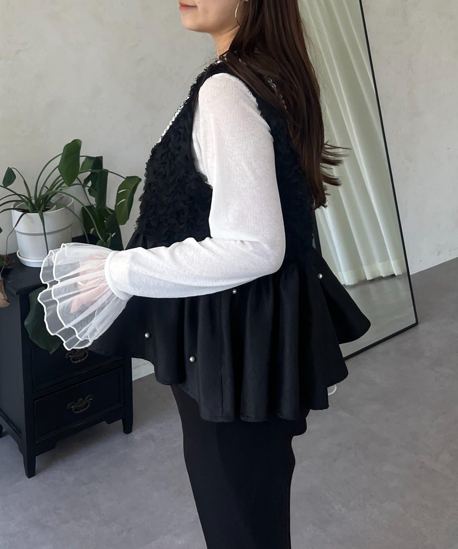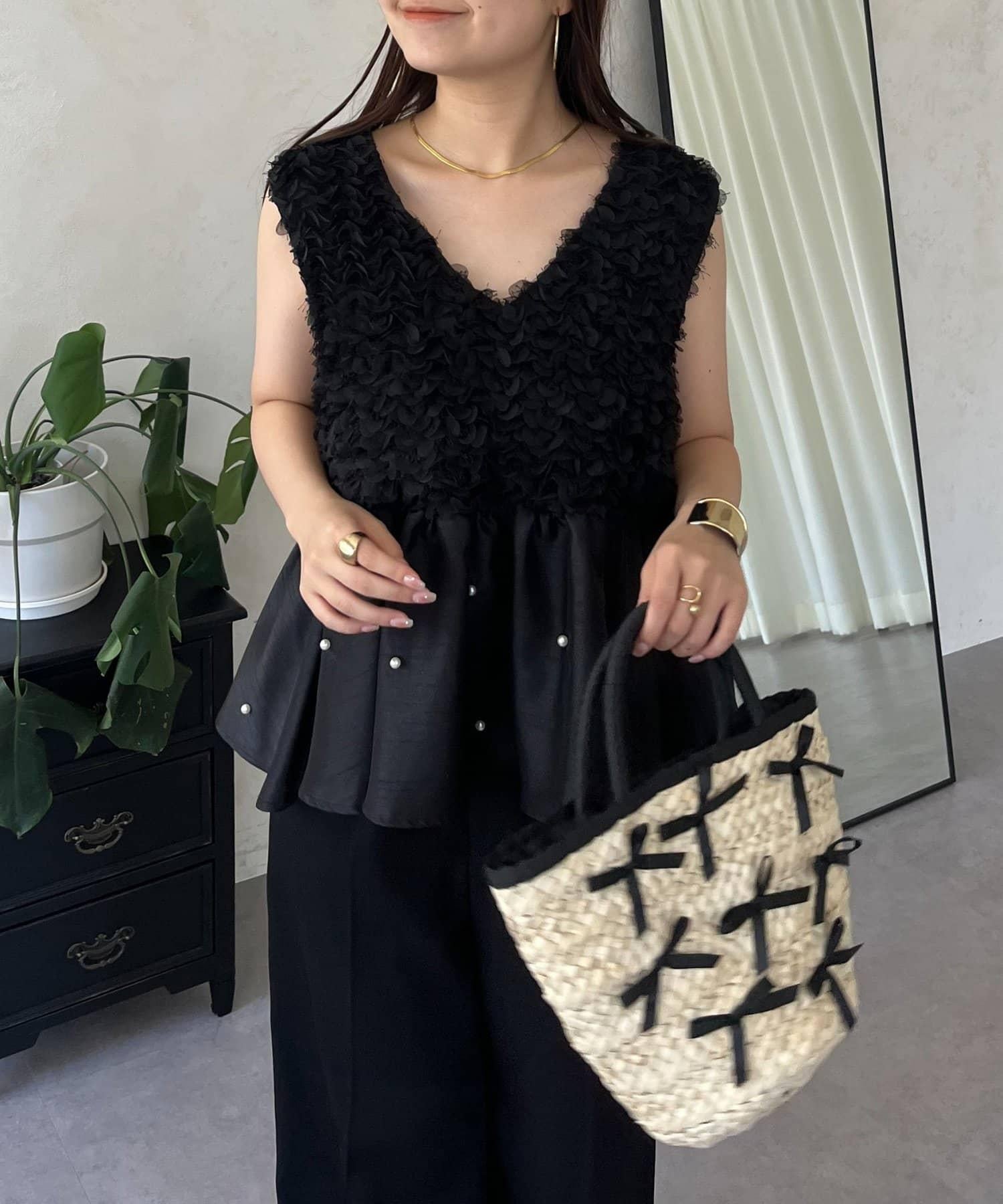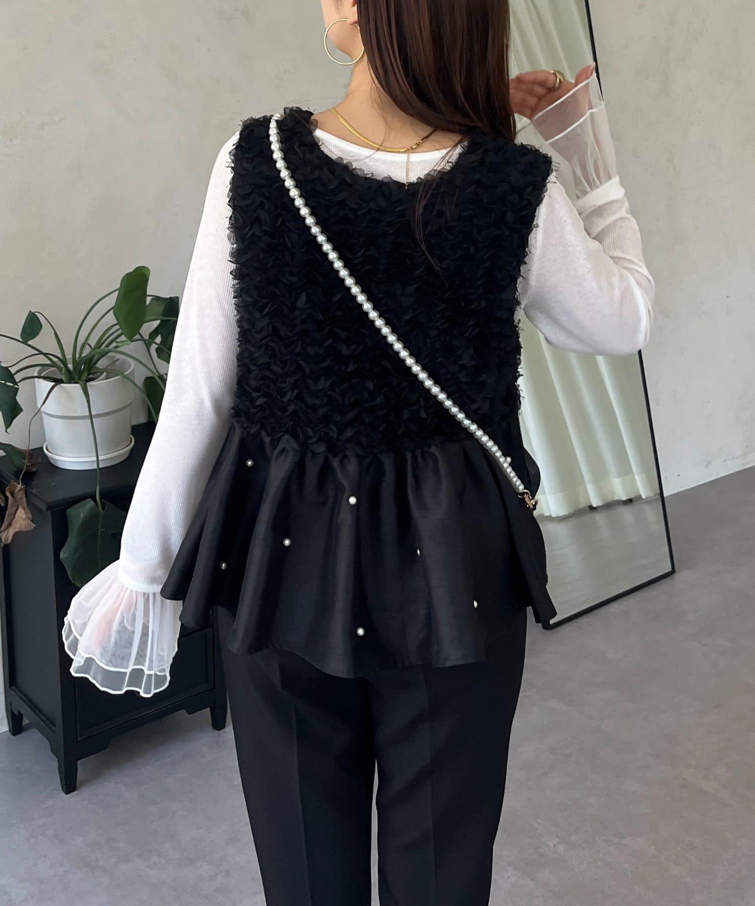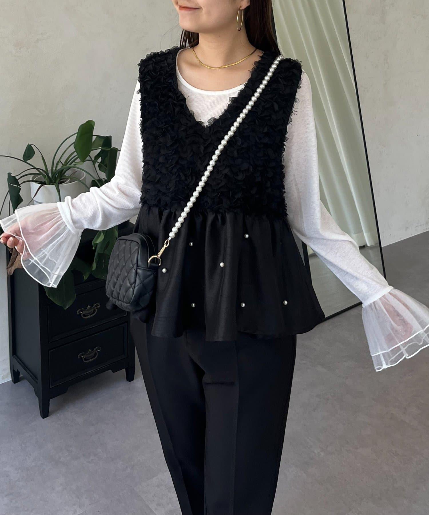 【總選舉參賽單品】花卉圖案珍珠荷葉邊背心