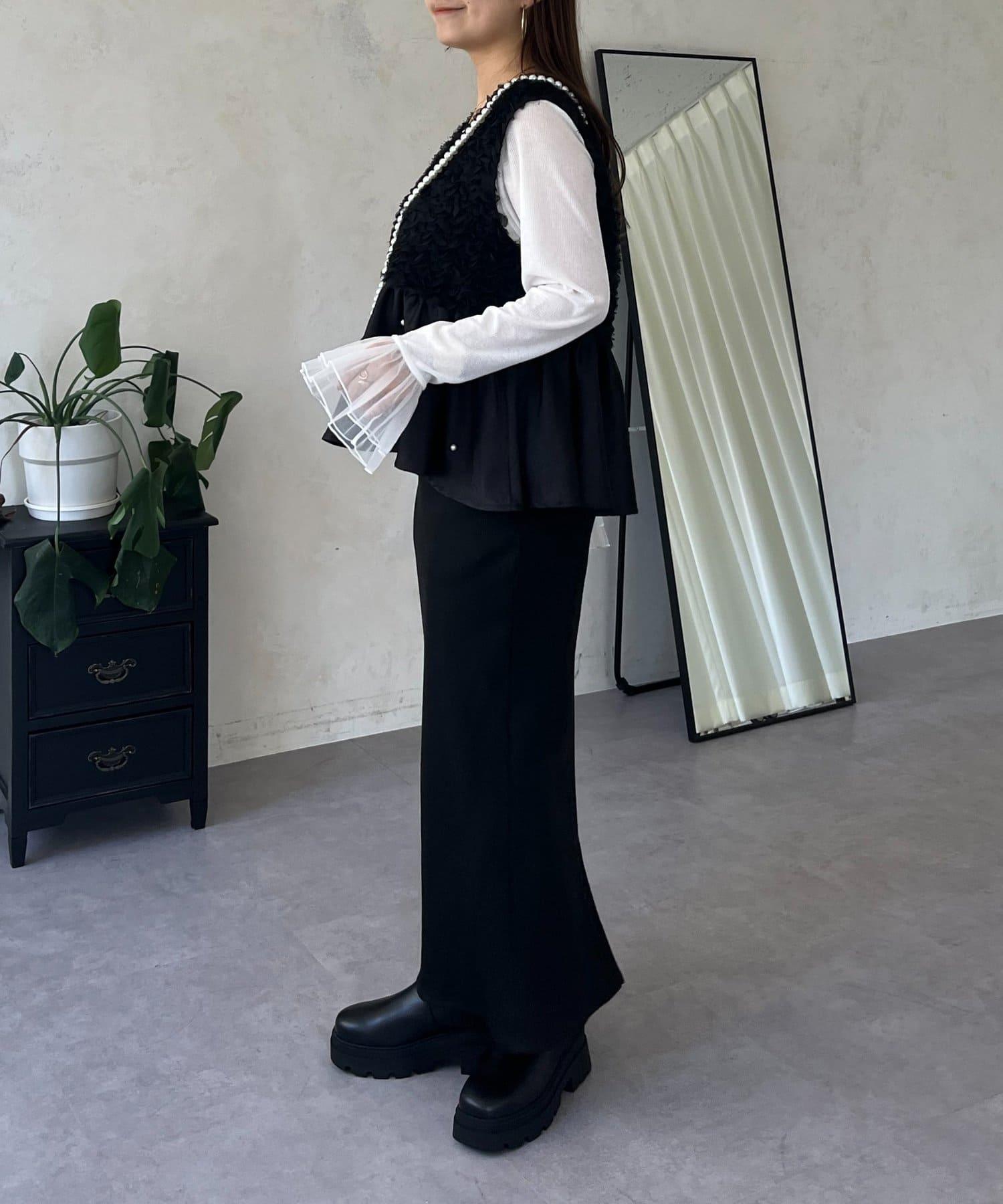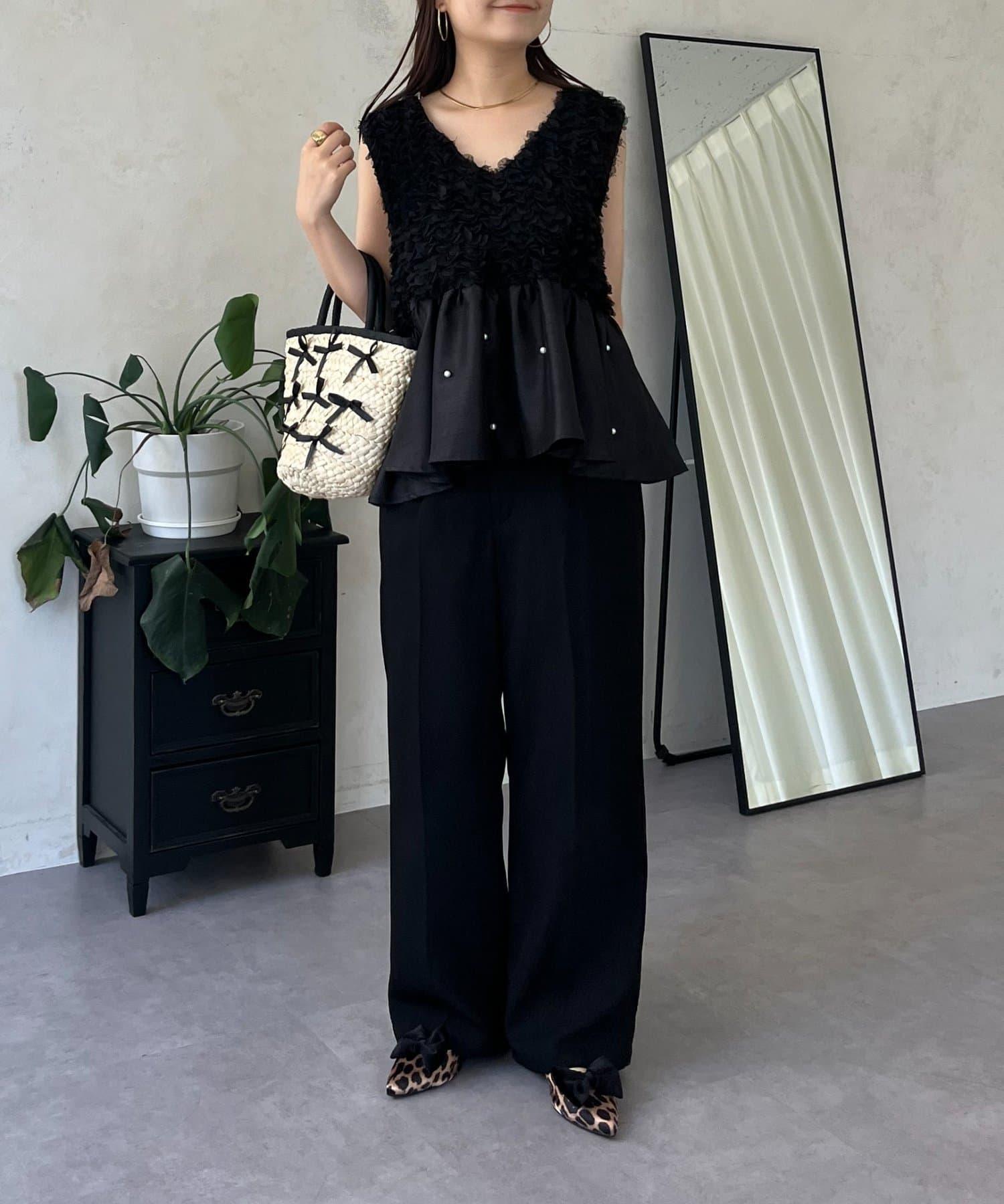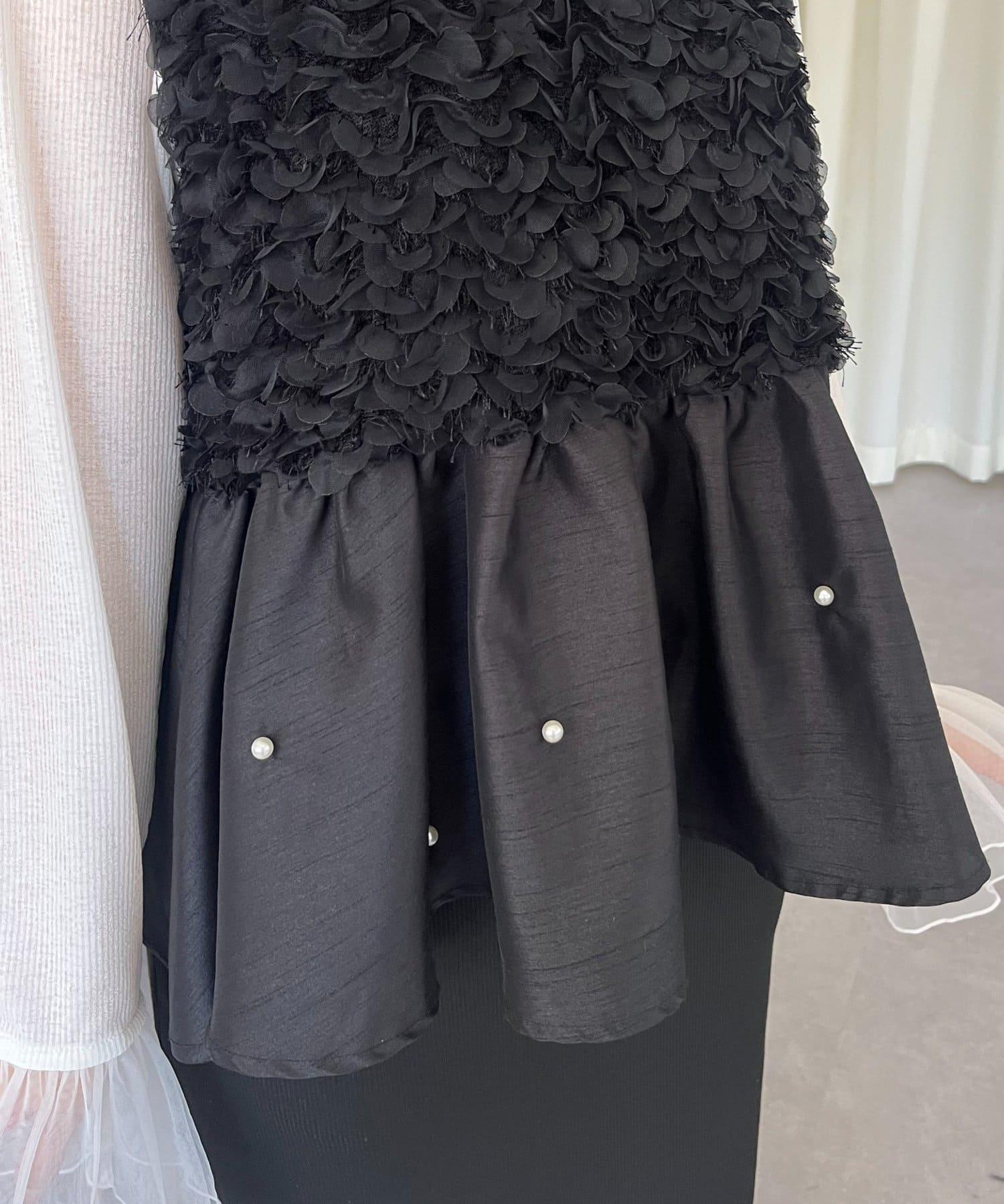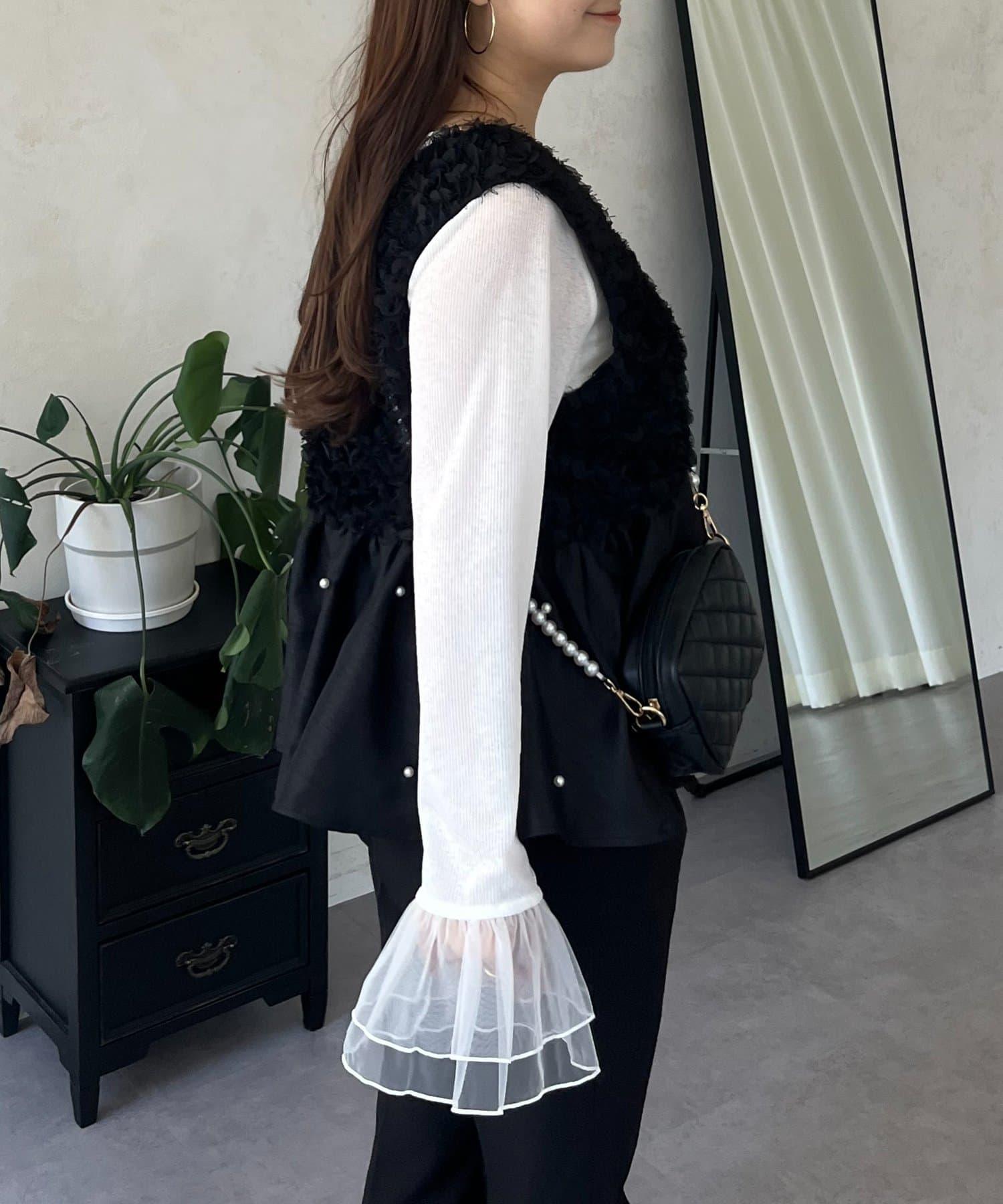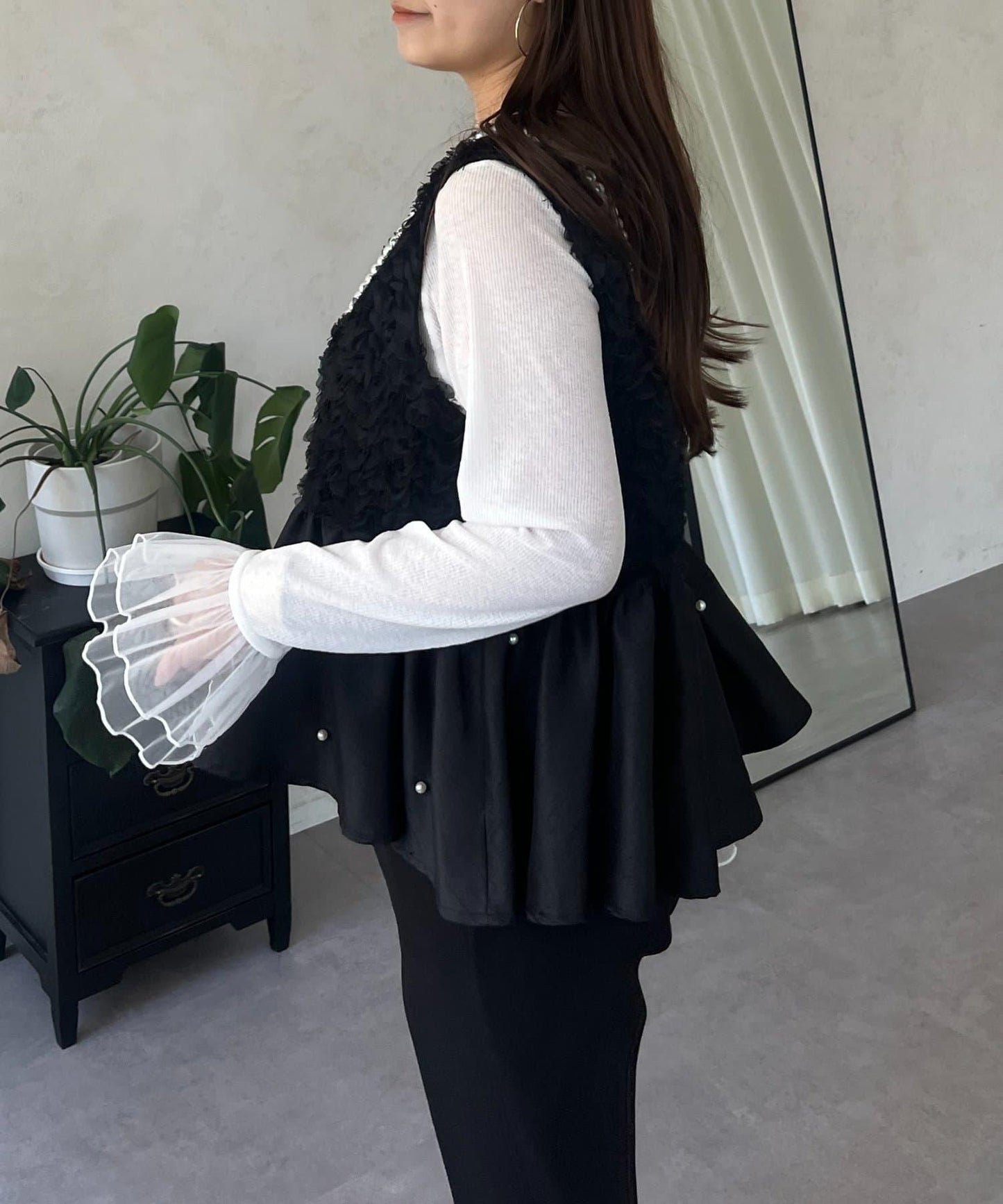 【總選舉參賽單品】花卉圖案珍珠荷葉邊背心