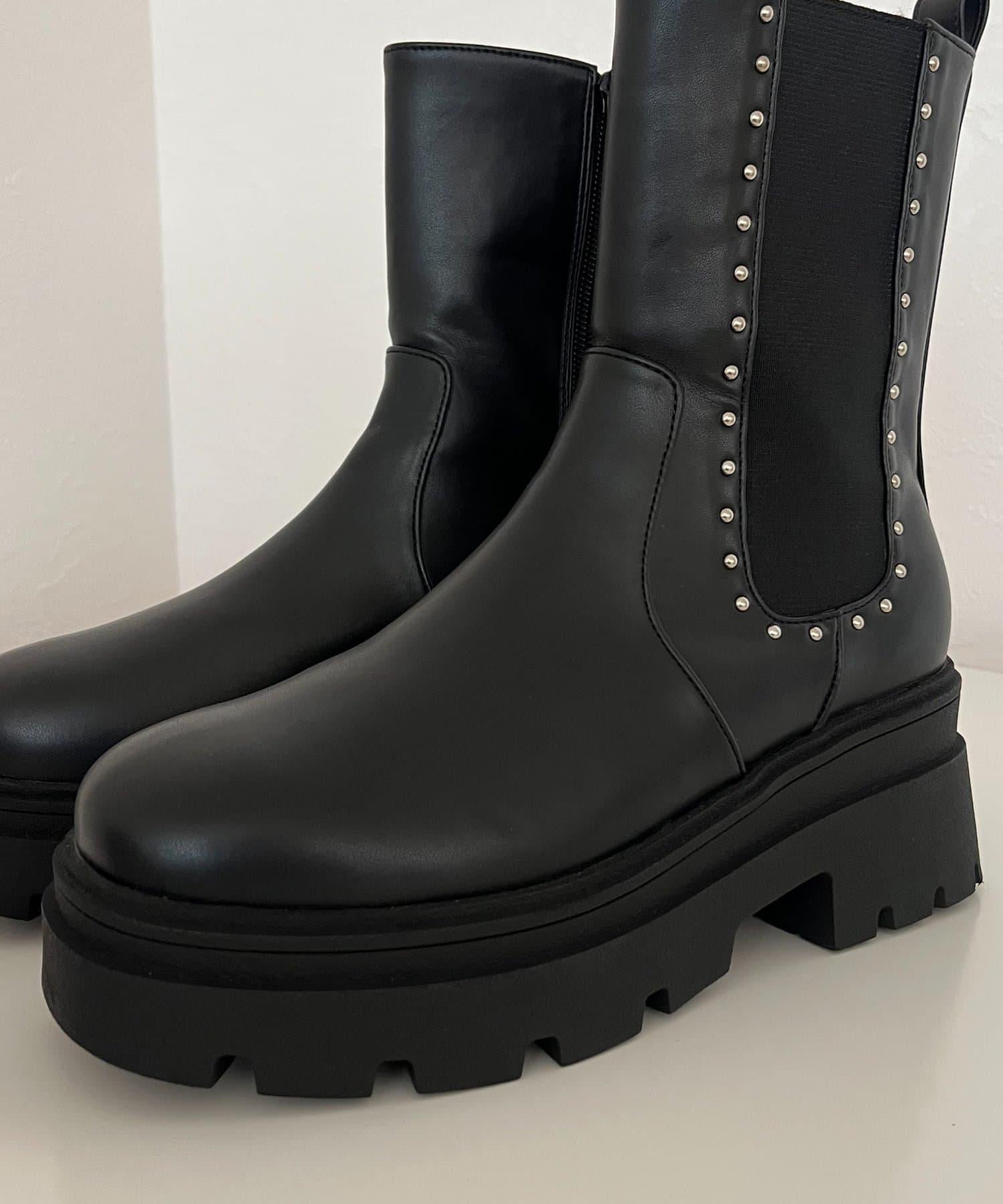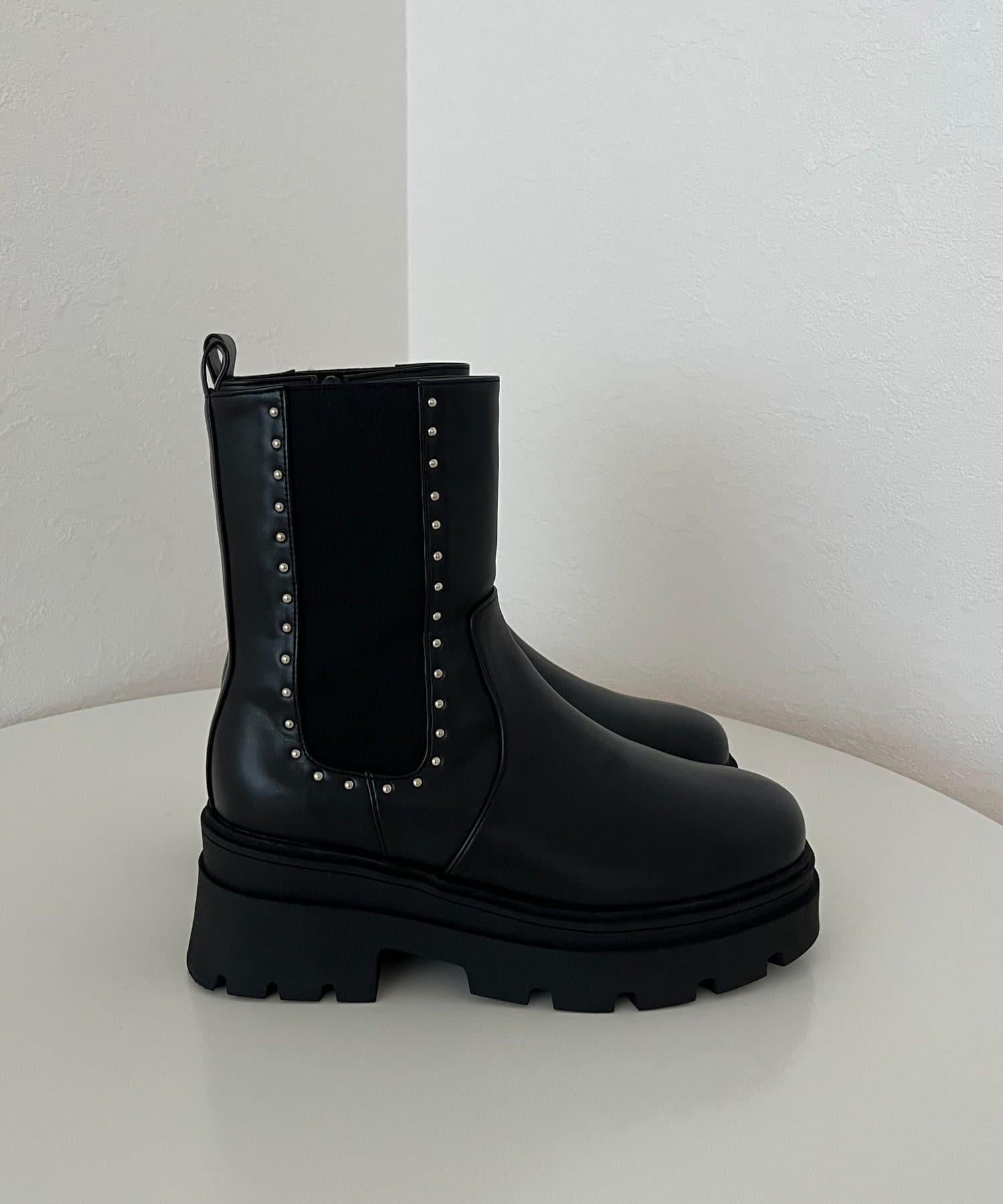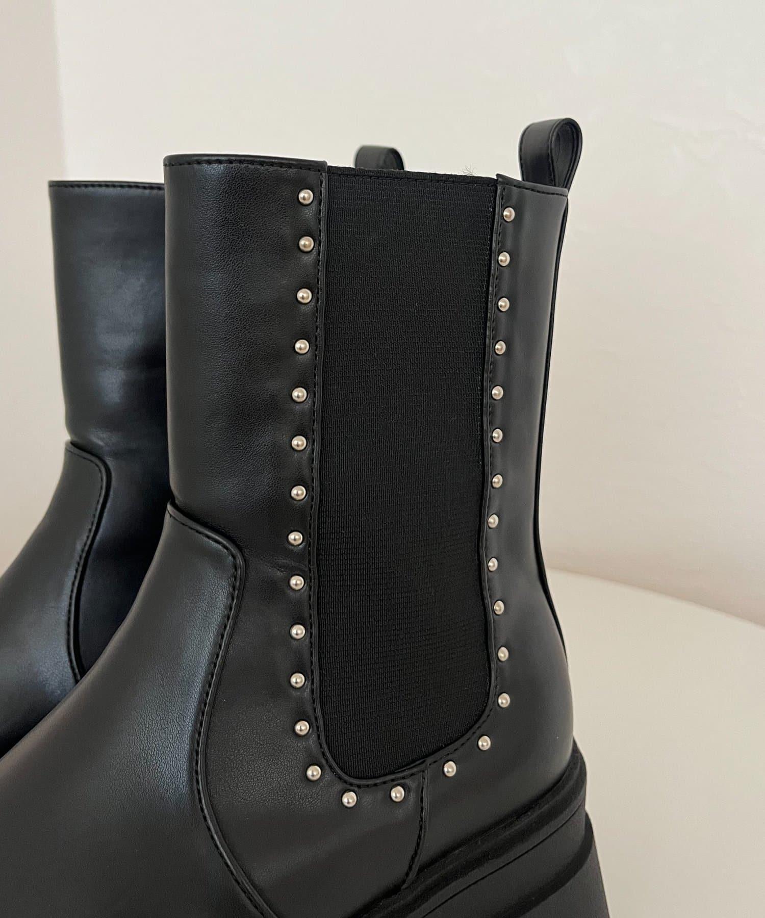 【總選舉參賽單品】鉚釘裝飾側彈力厚底短靴