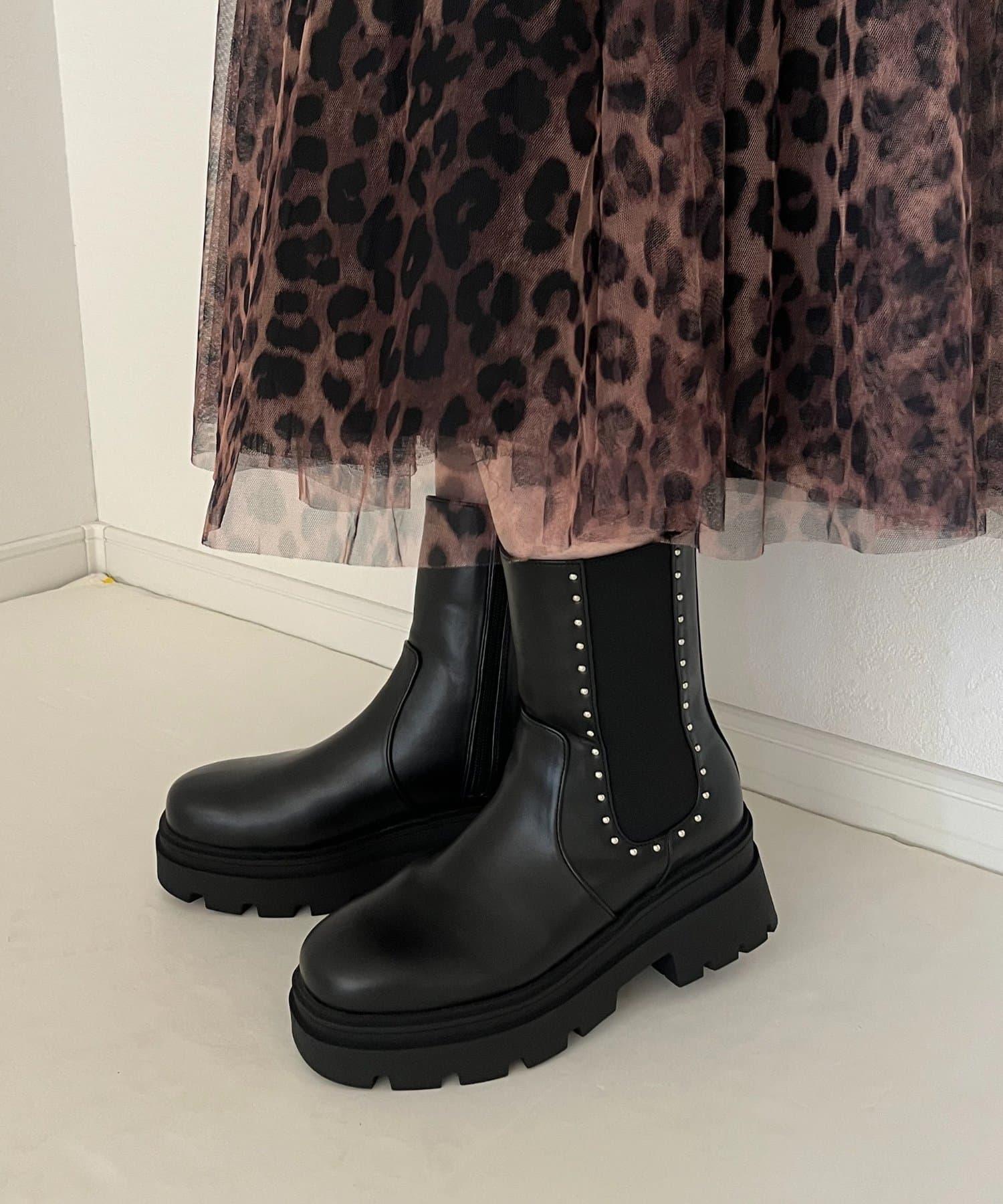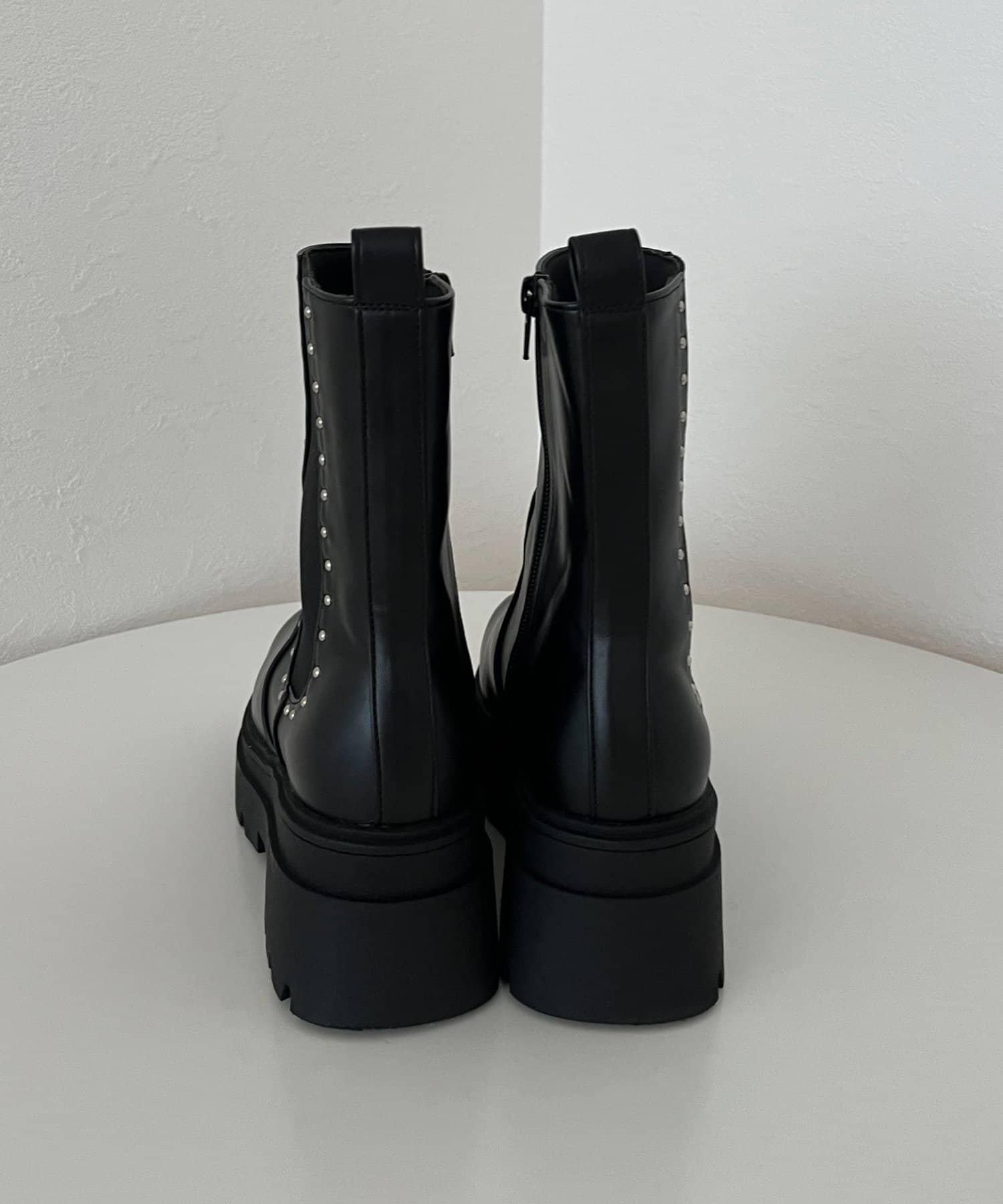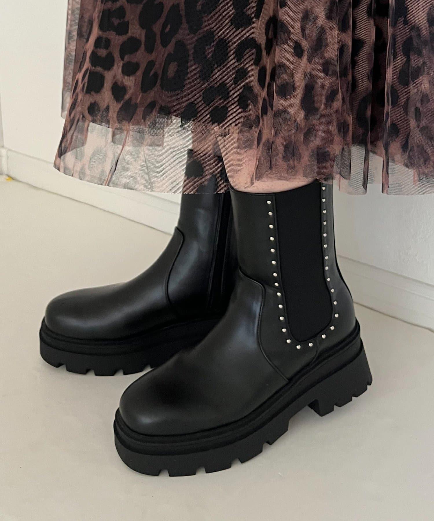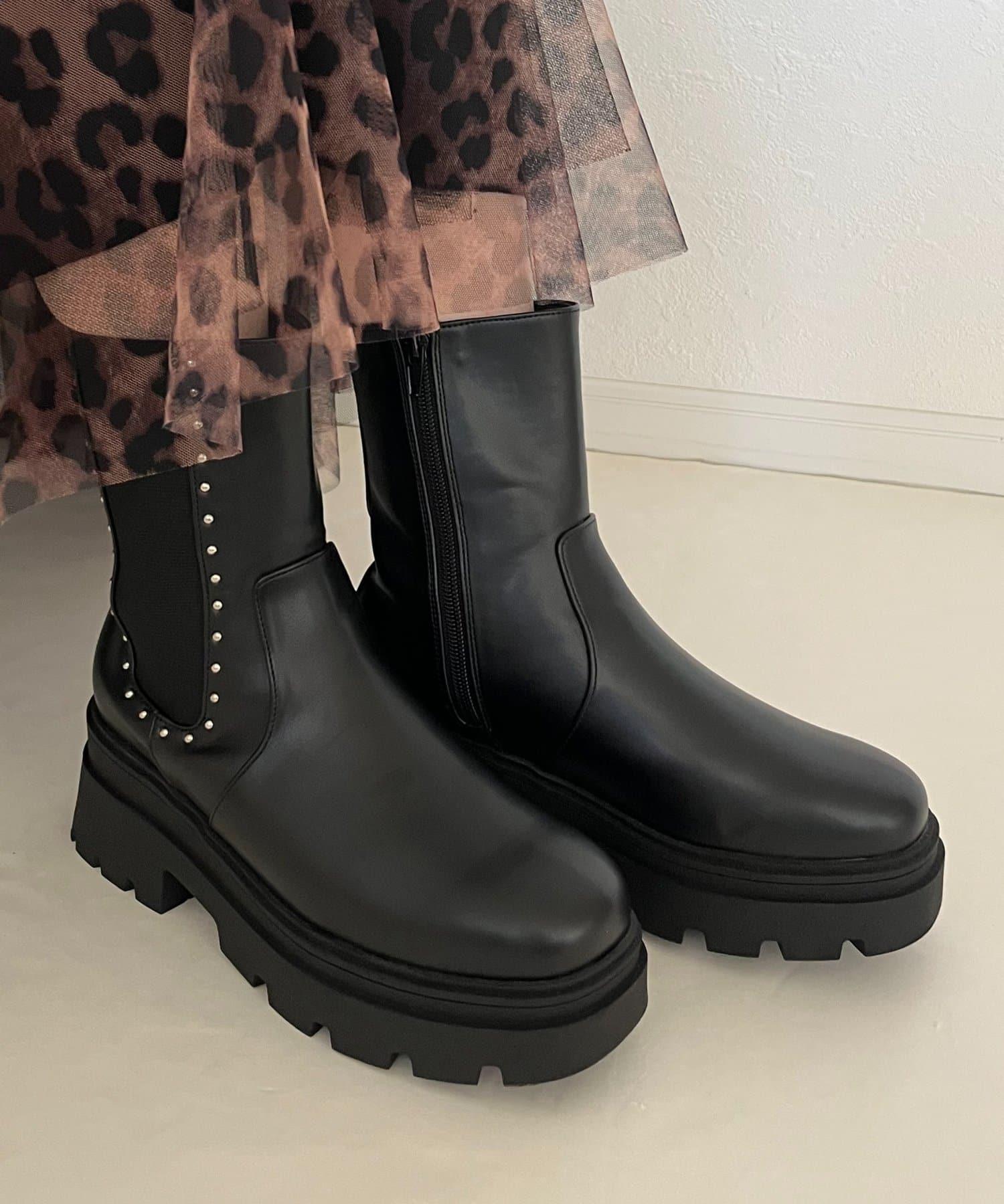 【總選舉參賽單品】鉚釘裝飾側彈力厚底短靴