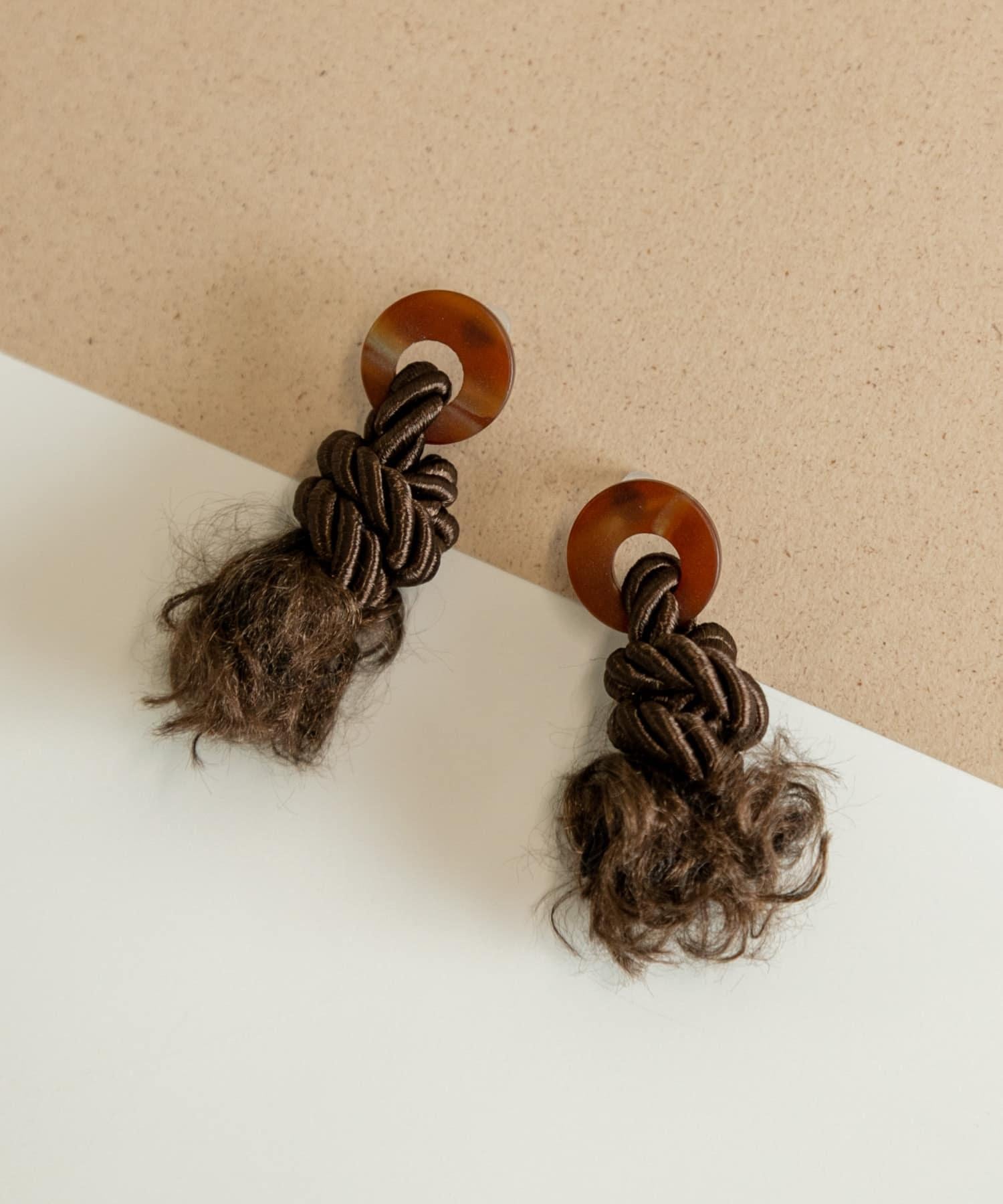 帶有大理石花紋圓形圖案和閃亮繩索的耳環。