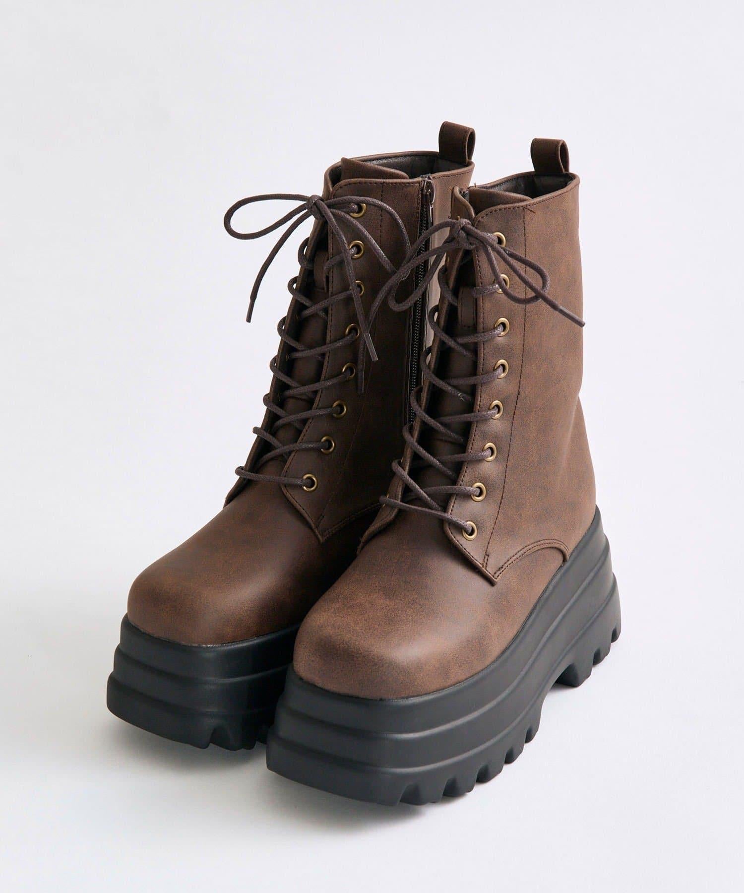 繫帶厚底短靴