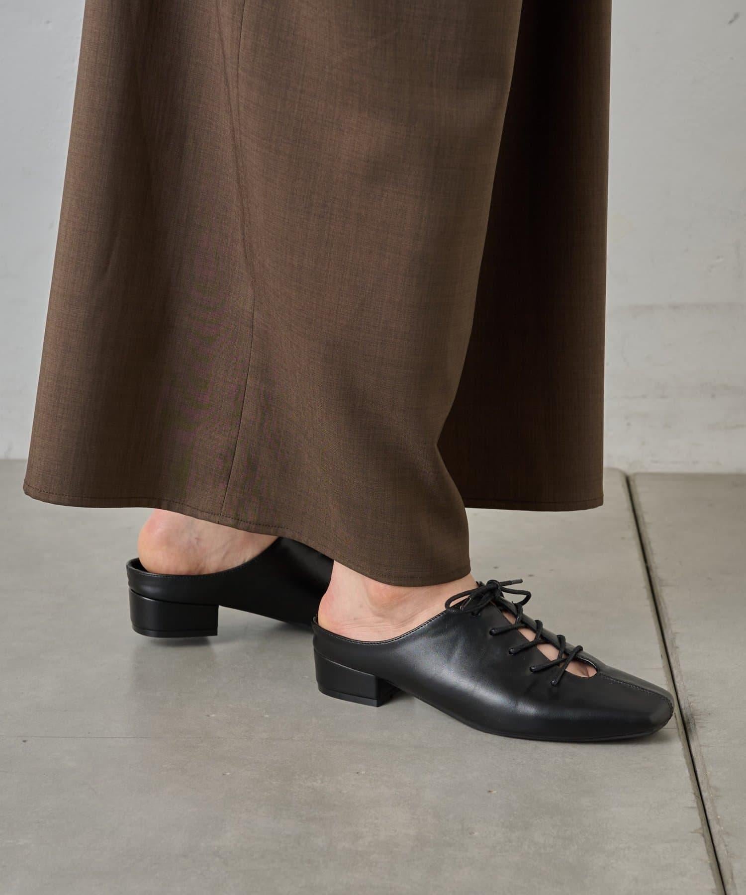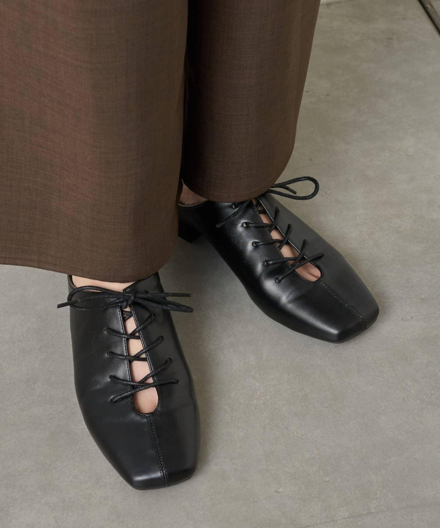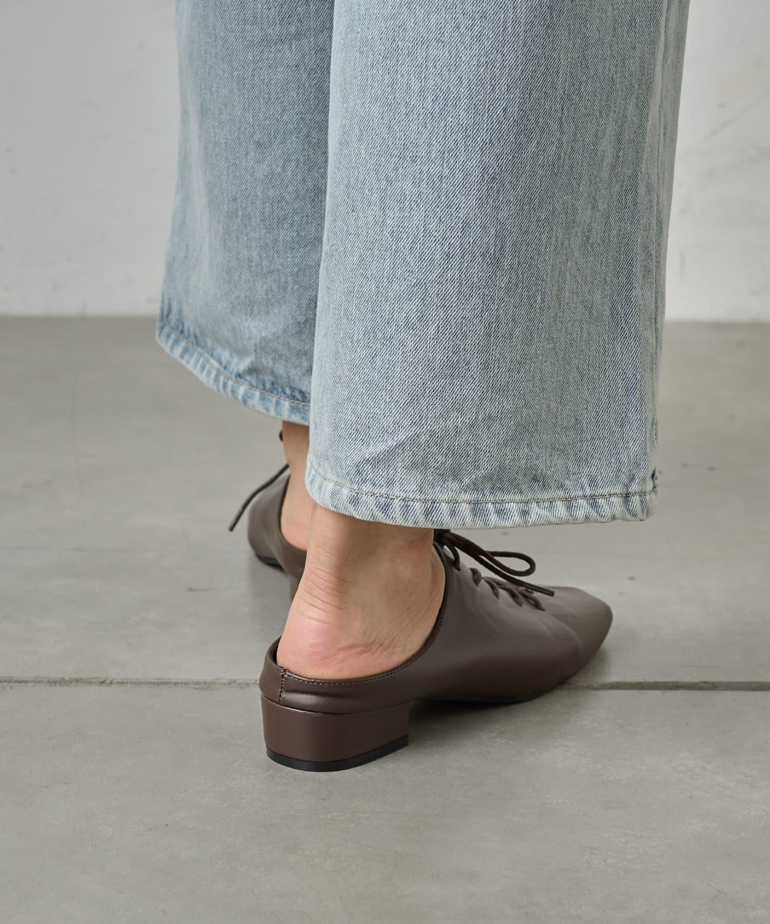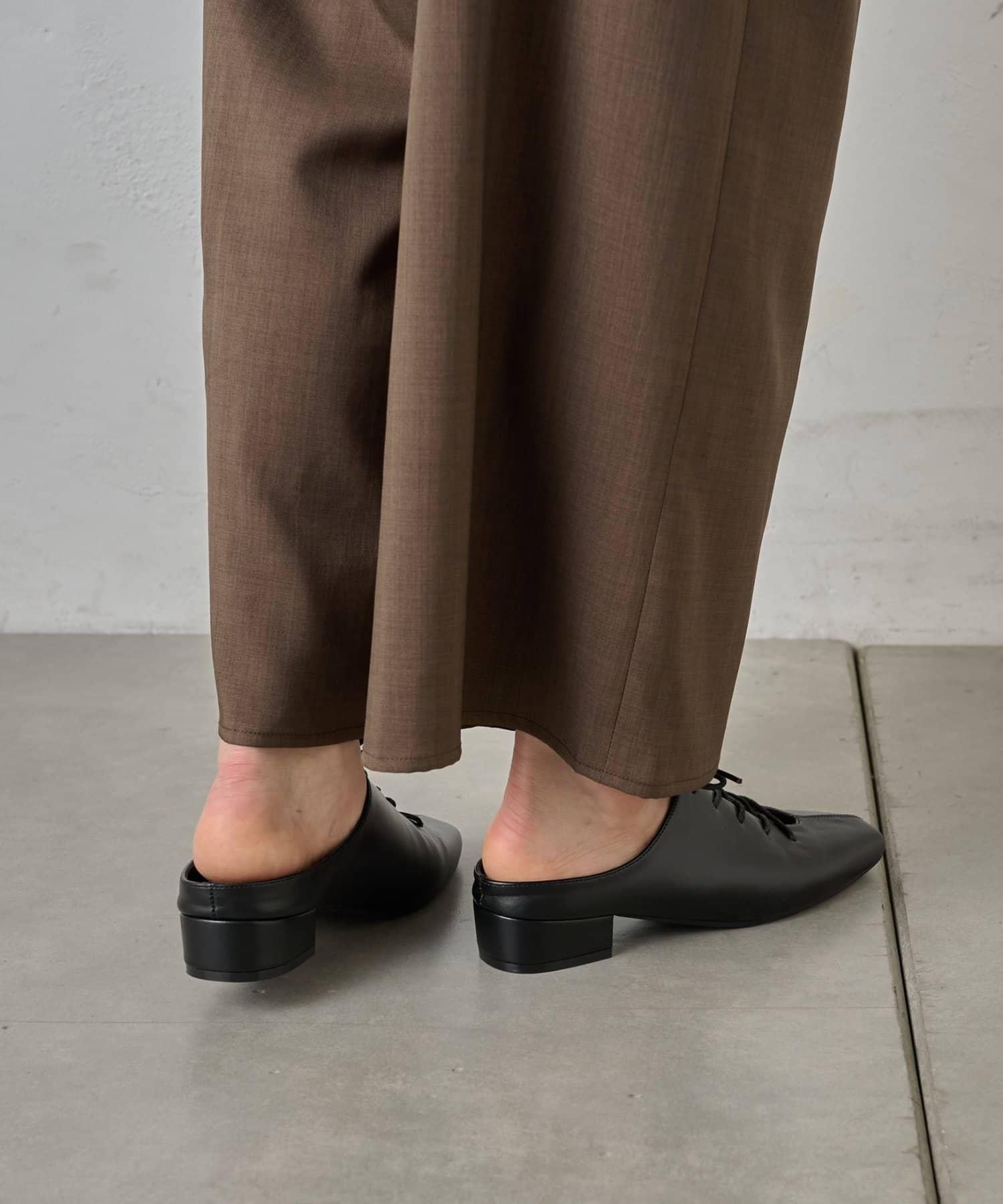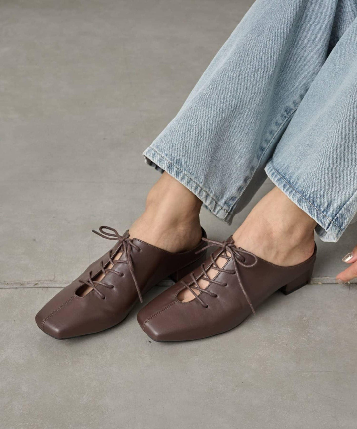 繫帶設計有讓雙腳看起來更修長的效果,而且因為是穆勒鞋,穿脫都很方便。