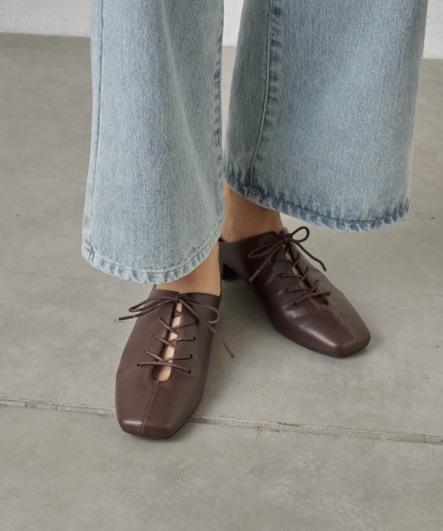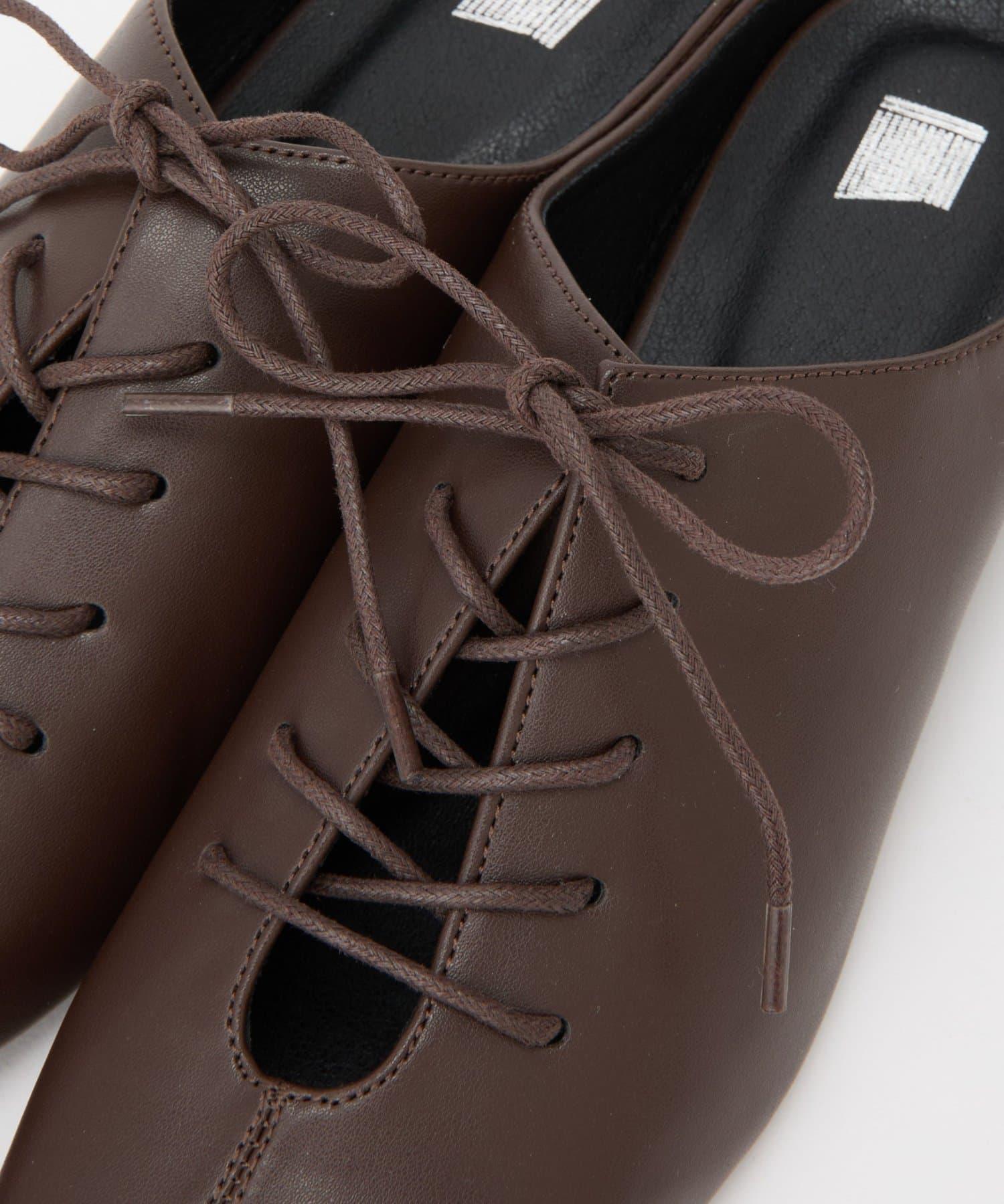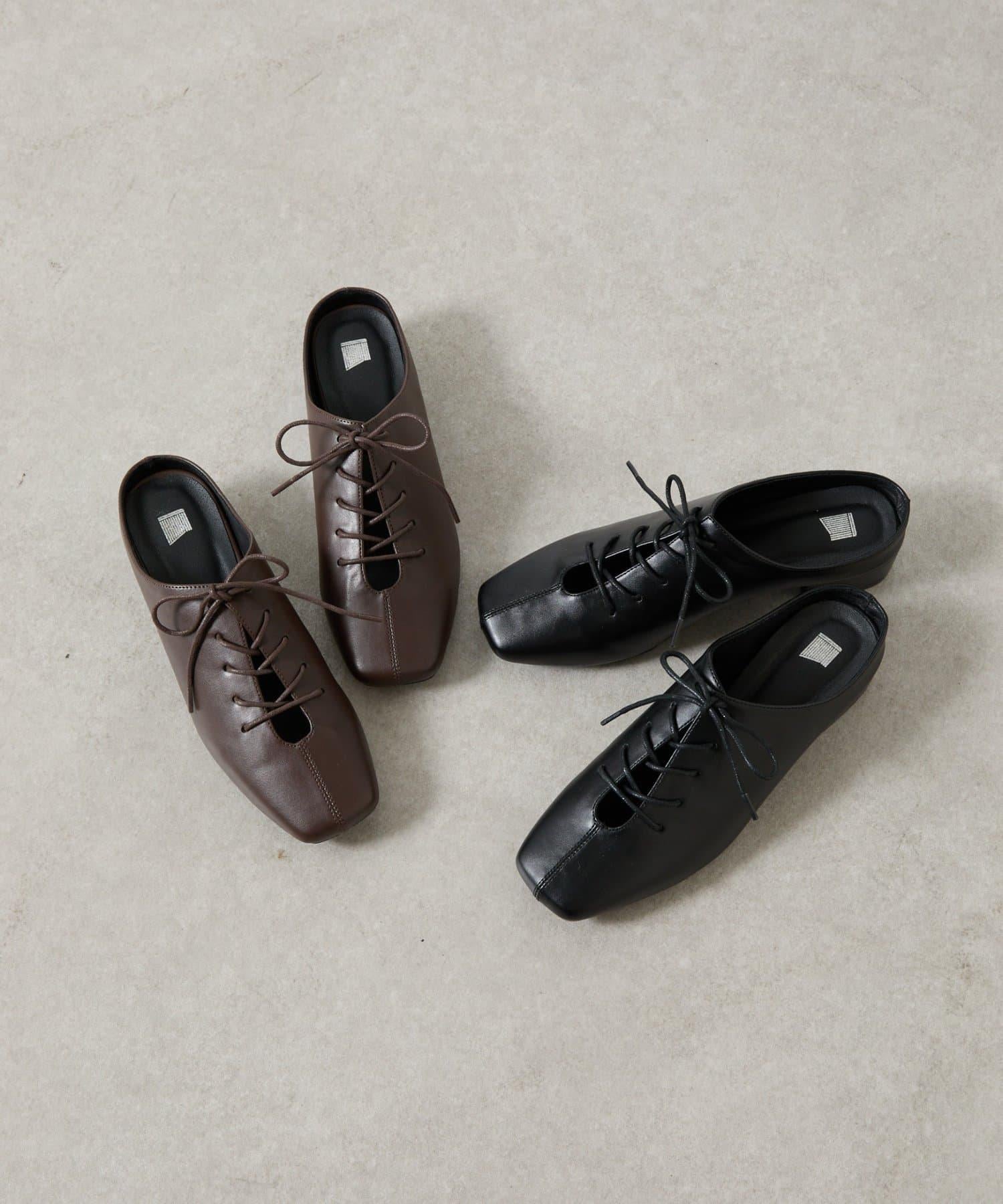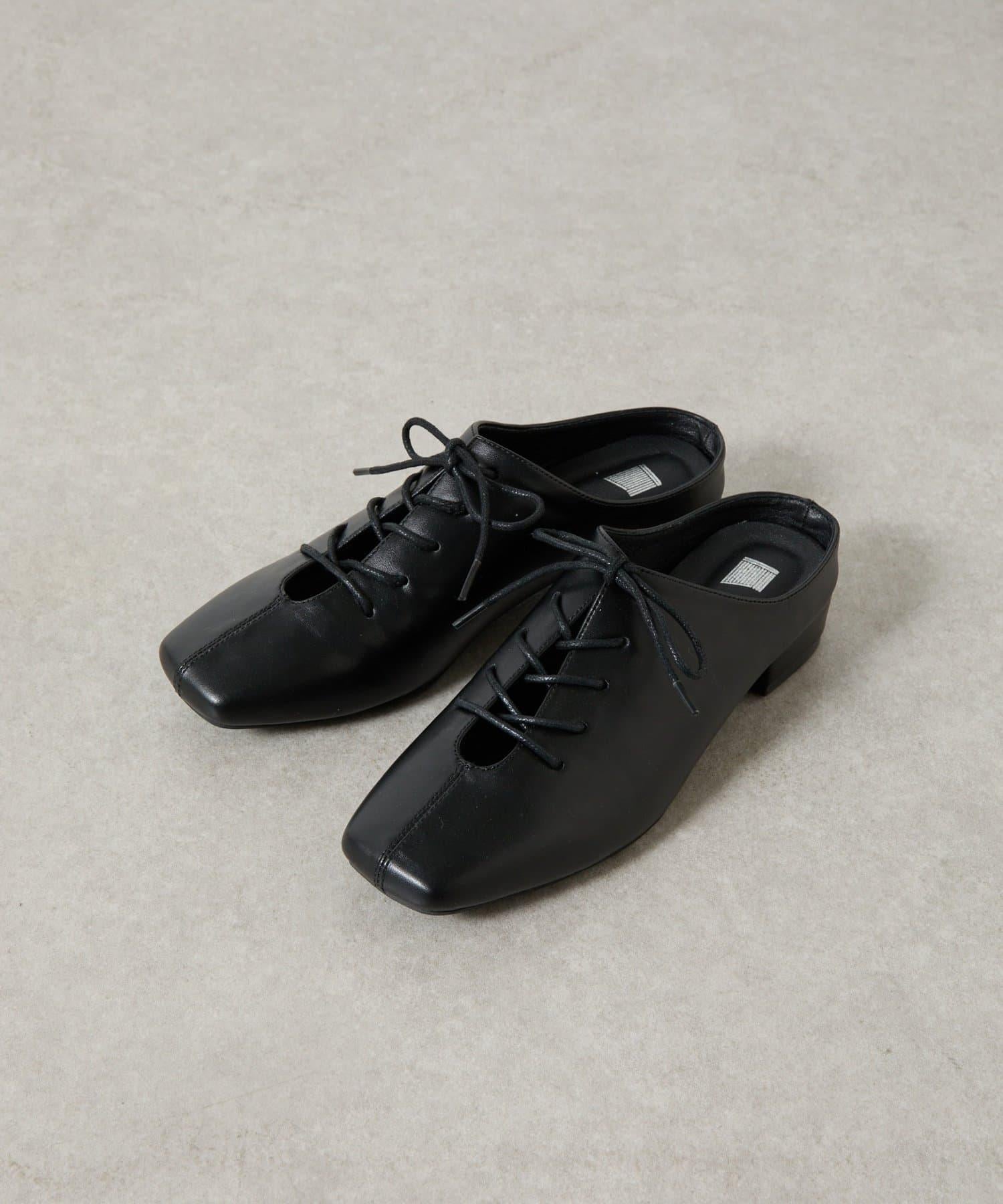 繫帶設計有讓雙腳看起來更修長的效果,而且因為是穆勒鞋,穿脫都很方便。