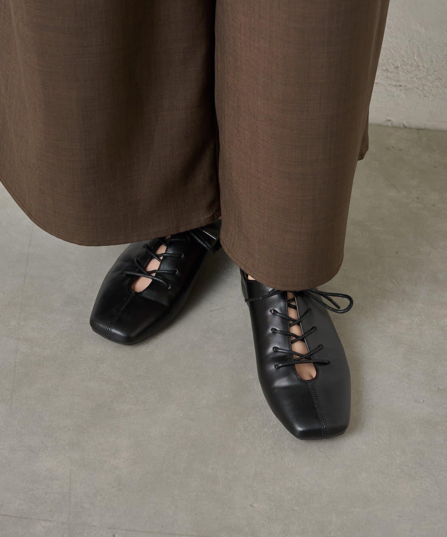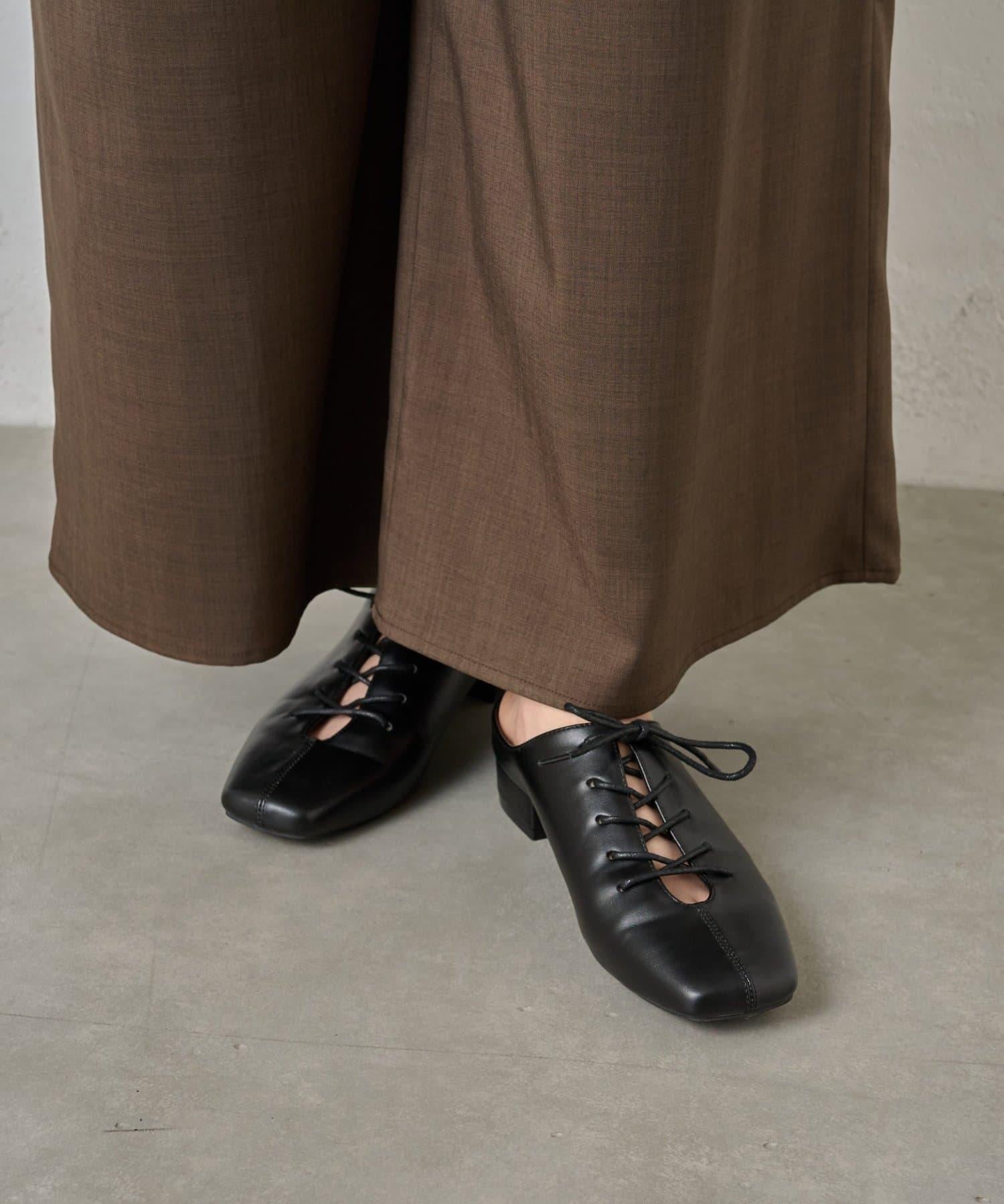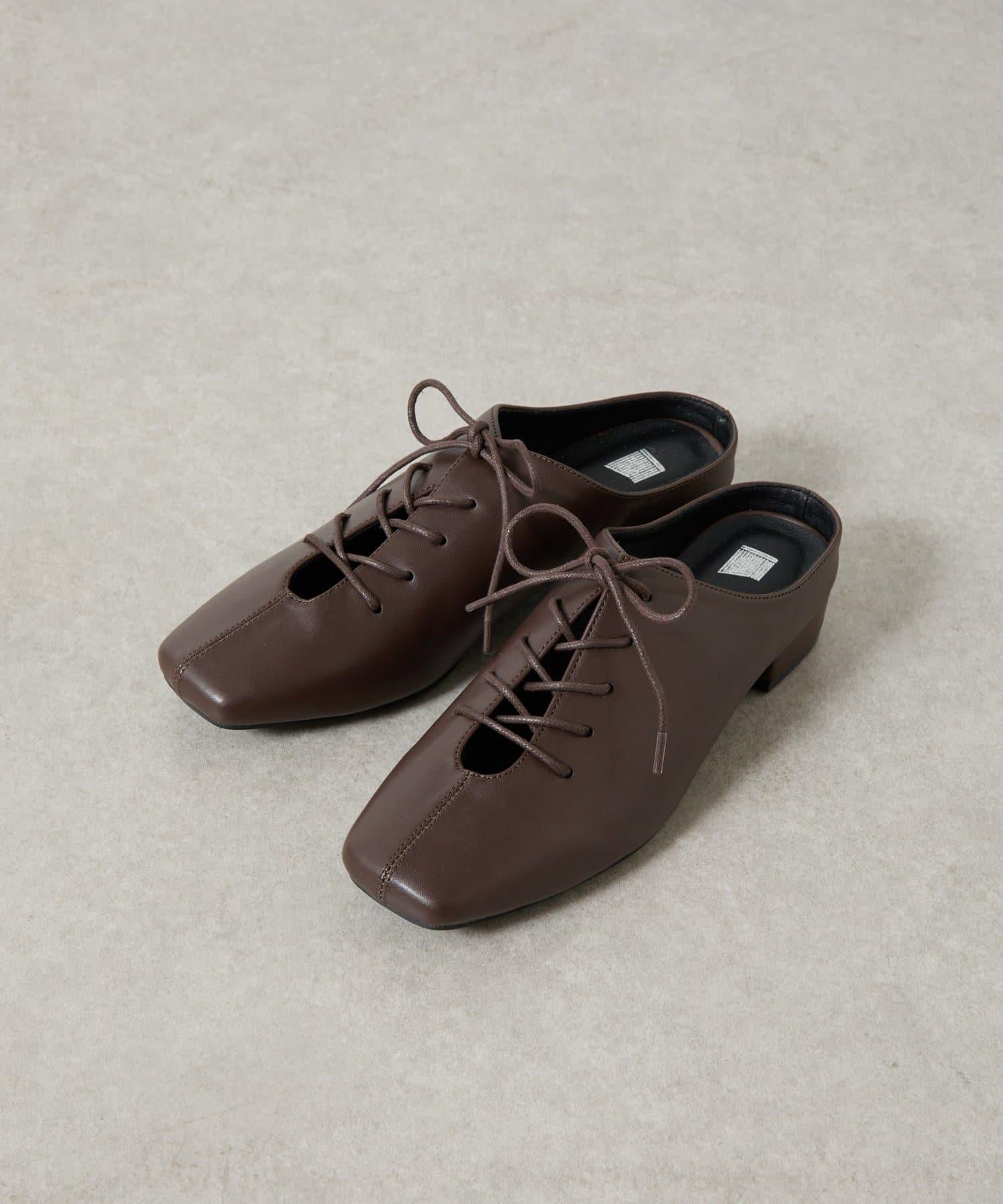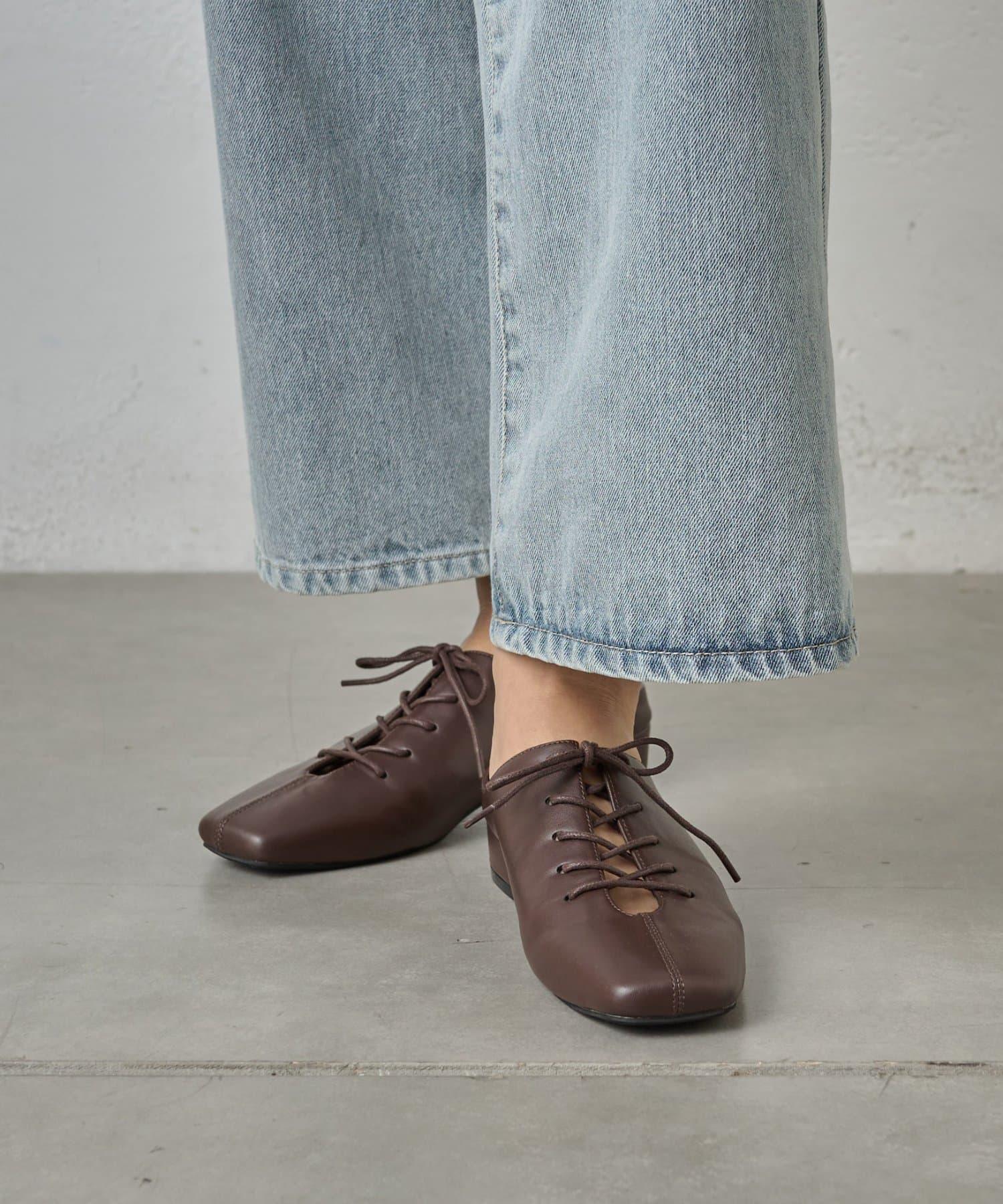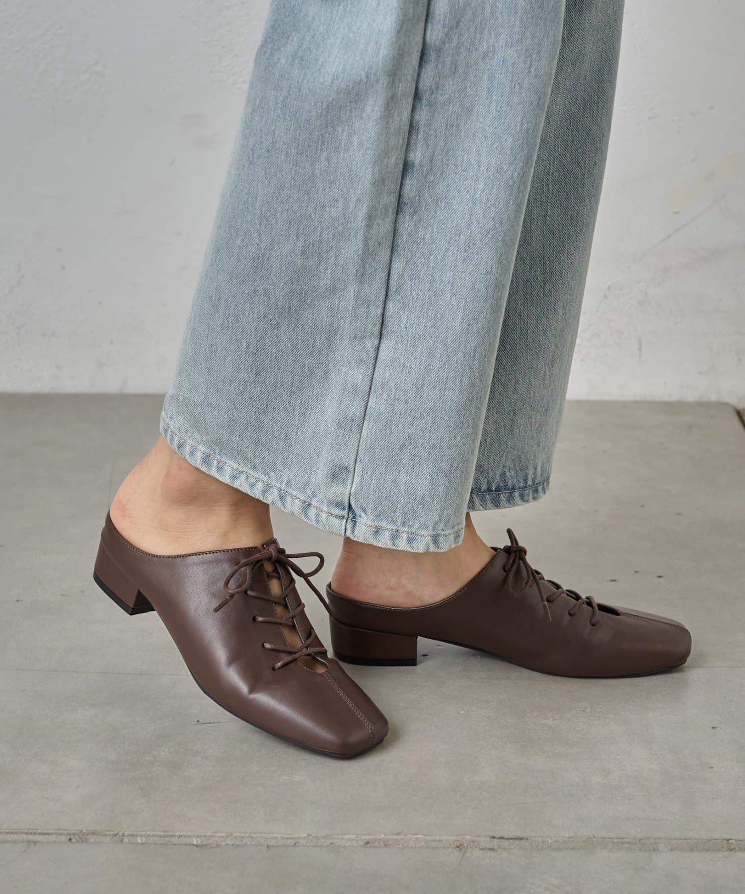 繫帶設計有讓雙腳看起來更修長的效果,而且因為是穆勒鞋,穿脫都很方便。