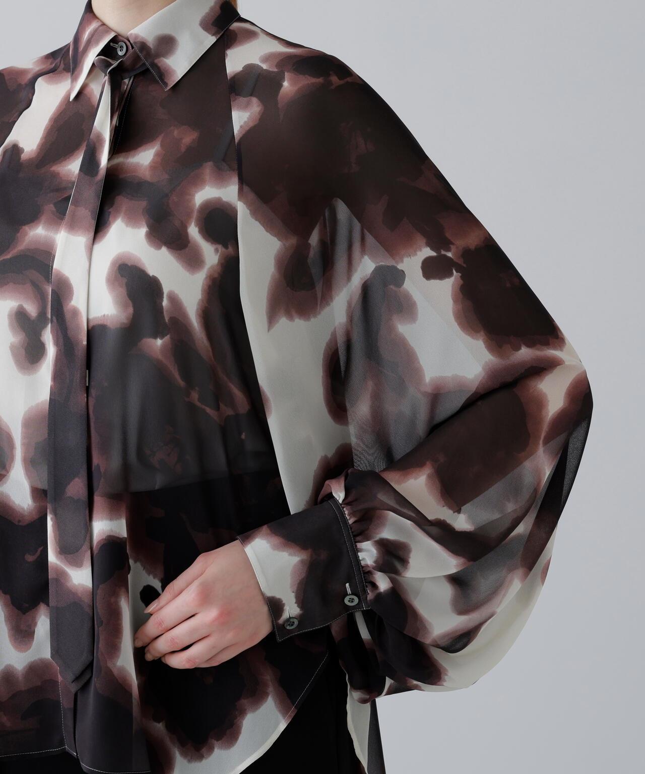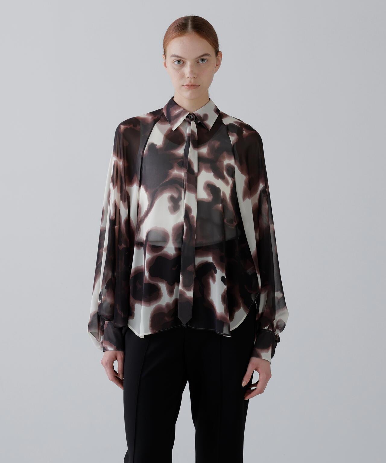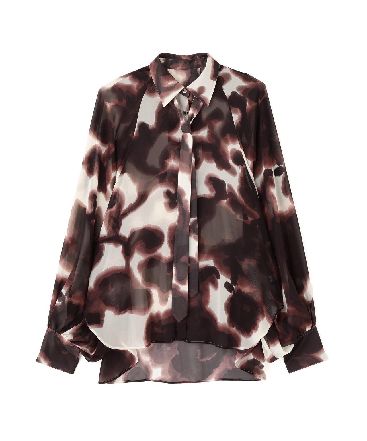 印花襯衫,大膽的藝術風格,現代感十足印花襯衫由人造雪紡製成。這款現代感十足的上衣採用了獨特的模糊藝術印花,配以插肩袖和寬大的袖口。附贈一條同樣材質的領帶。採用非常輕薄精緻的雪紡面料製成,底面印有圖案。