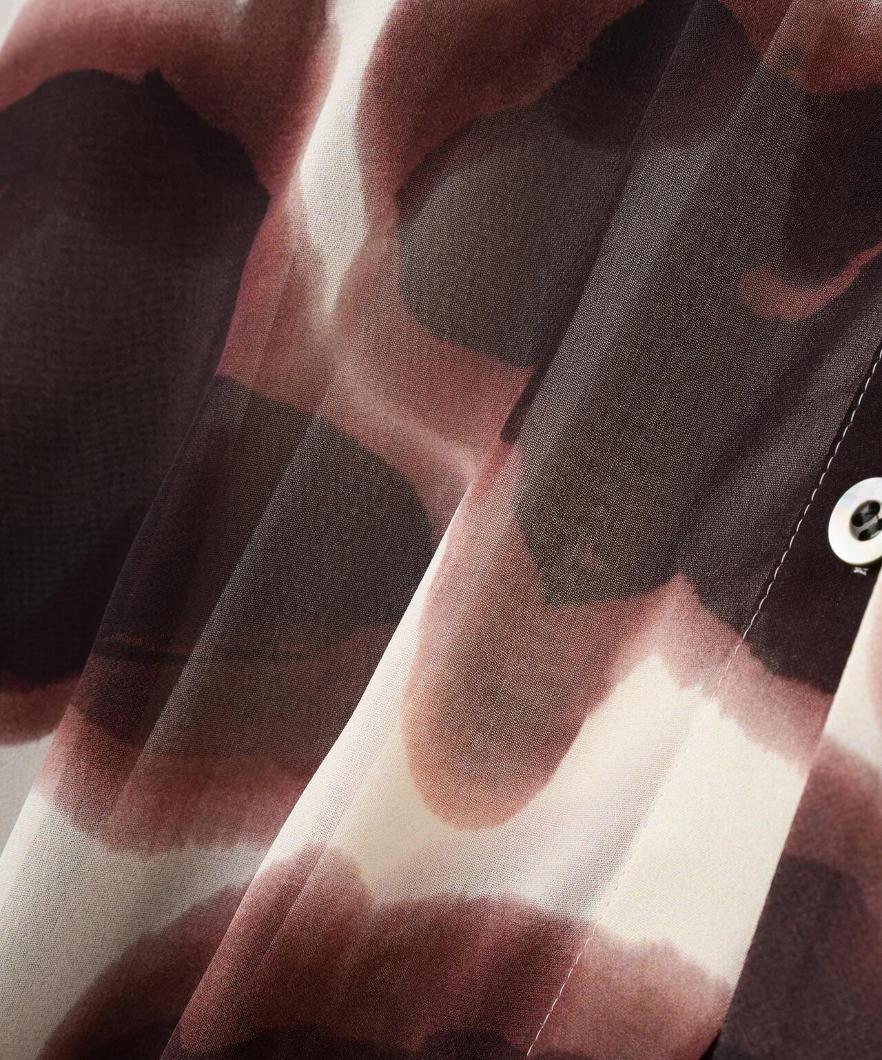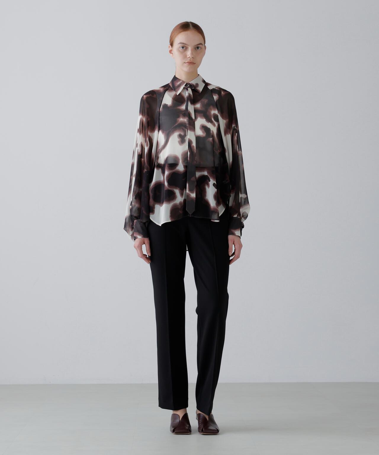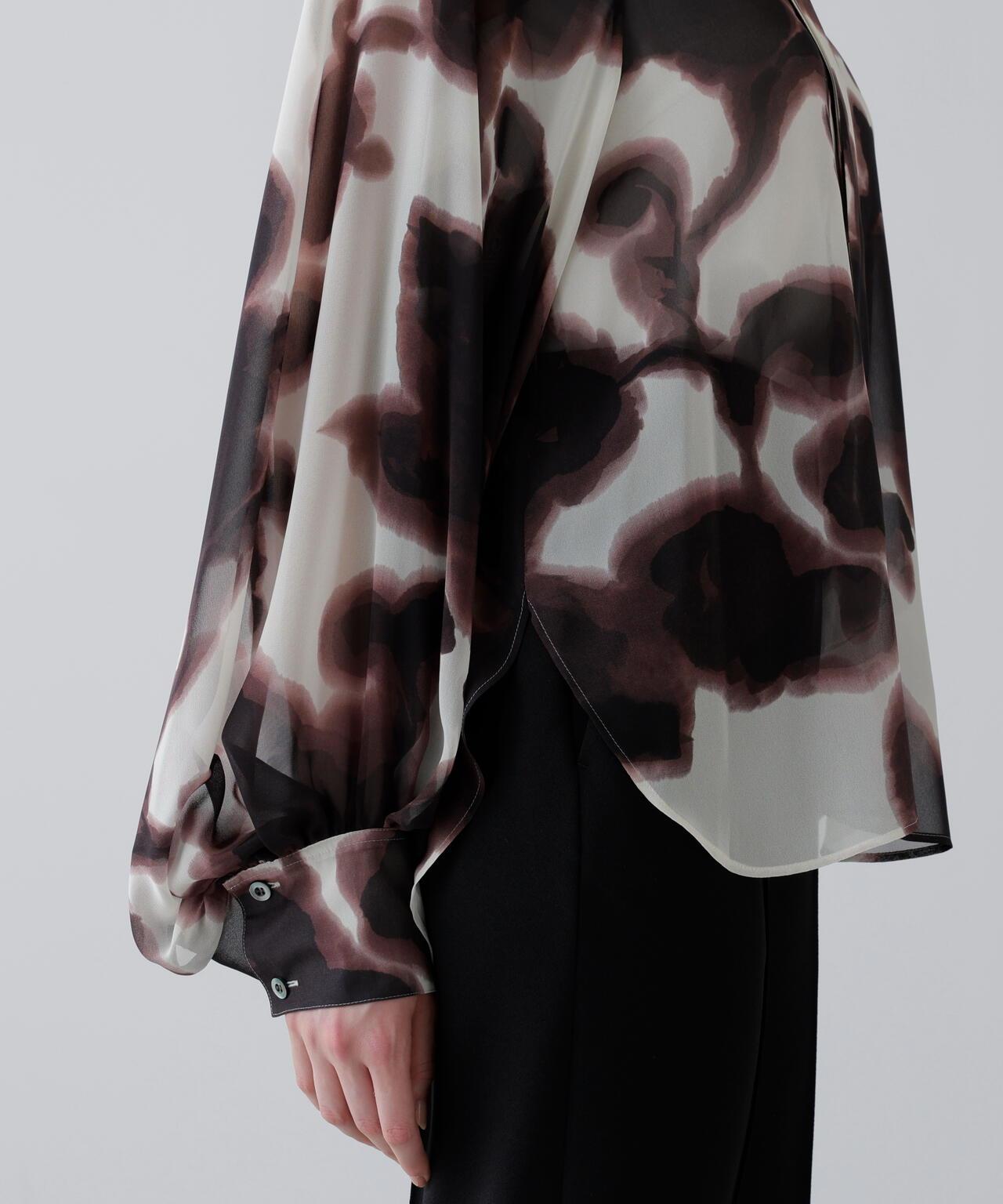 印花襯衫,大膽的藝術風格,現代感十足印花襯衫由人造雪紡製成。這款現代感十足的上衣採用了獨特的模糊藝術印花,配以插肩袖和寬大的袖口。附贈一條同樣材質的領帶。採用非常輕薄精緻的雪紡面料製成,底面印有圖案。