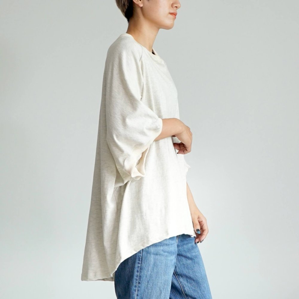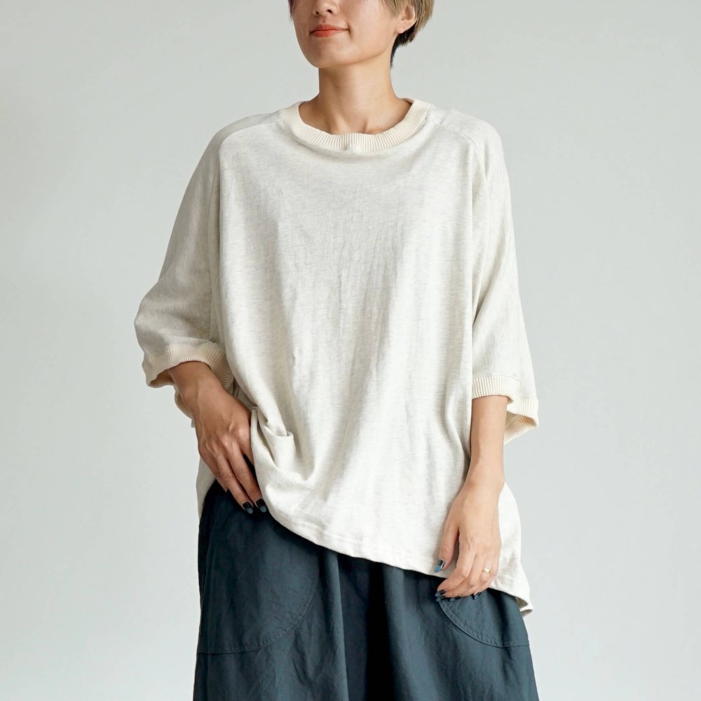 羅曼袖T恤/米白色/愛知縣產針織面料