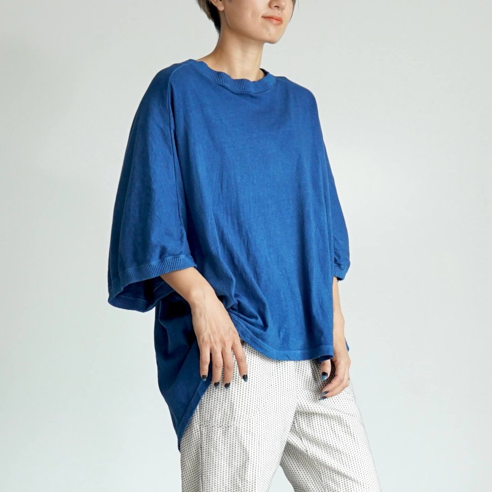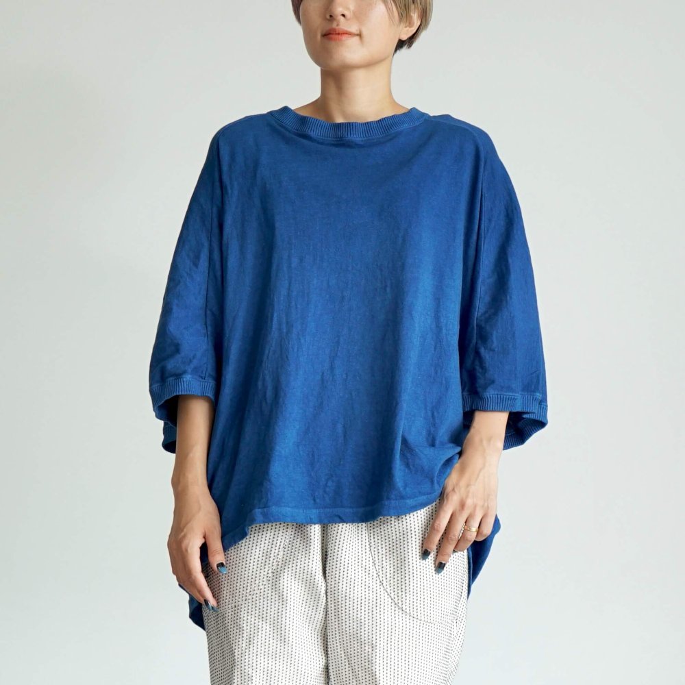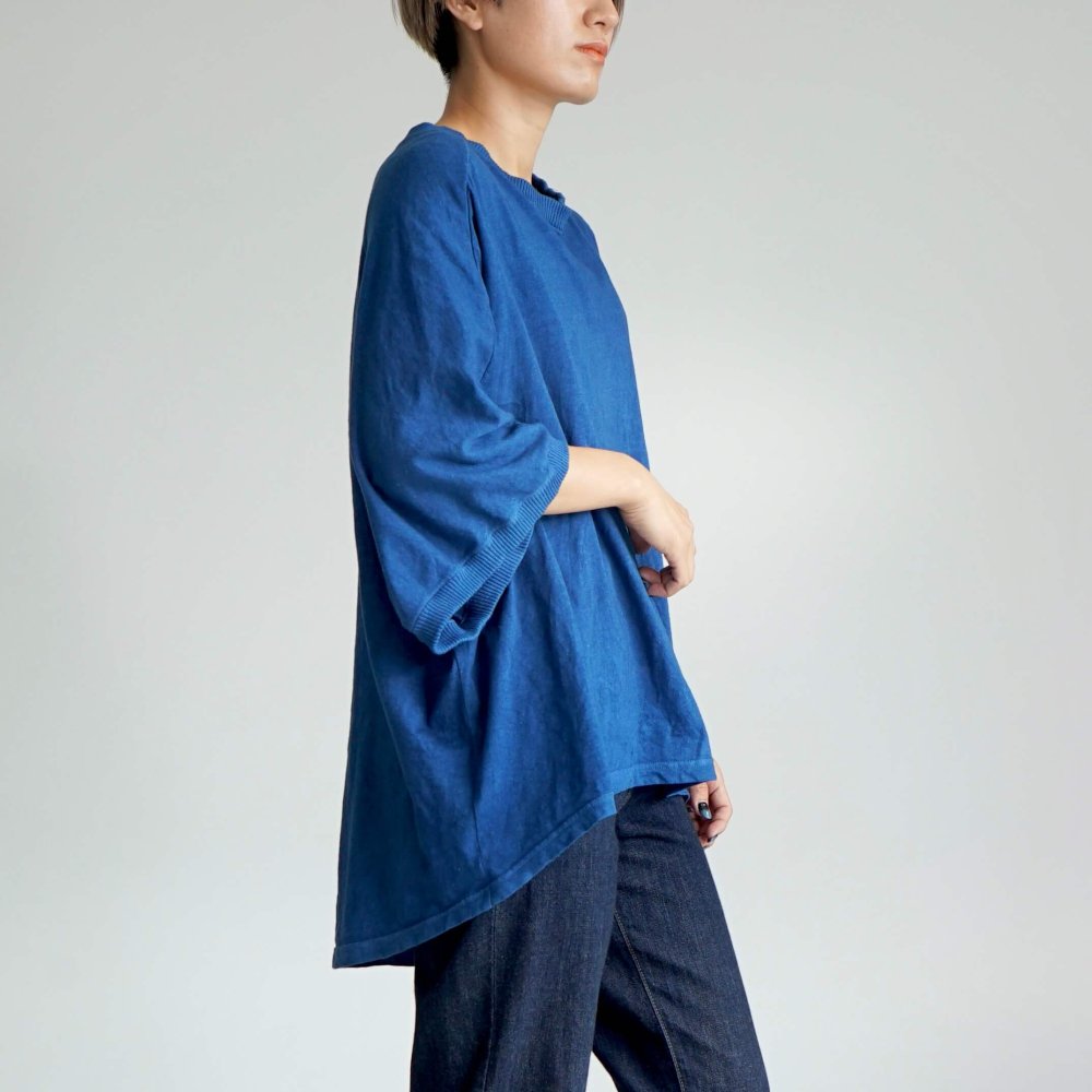 羅曼袖T恤/藍色/愛知縣產針織面料