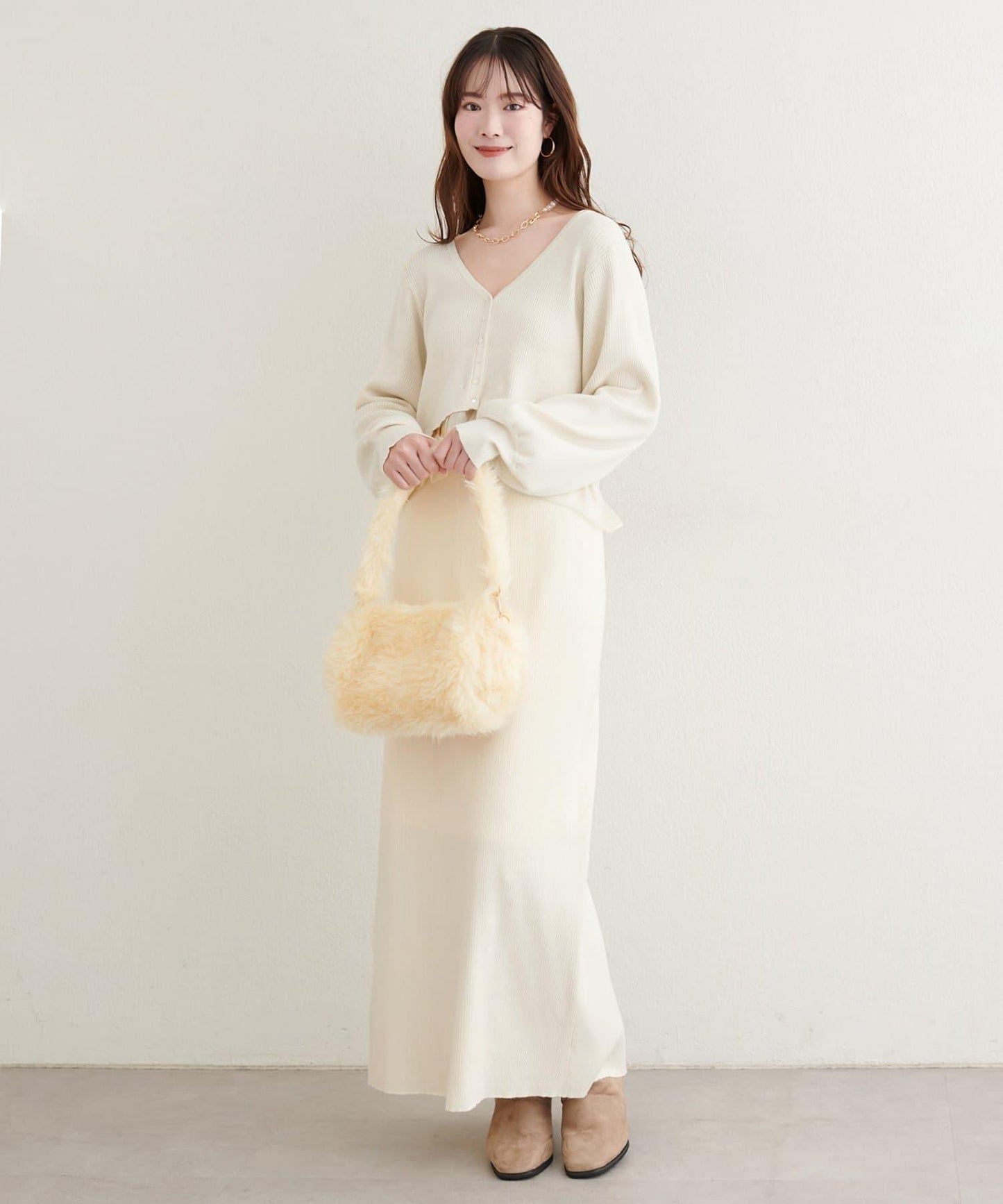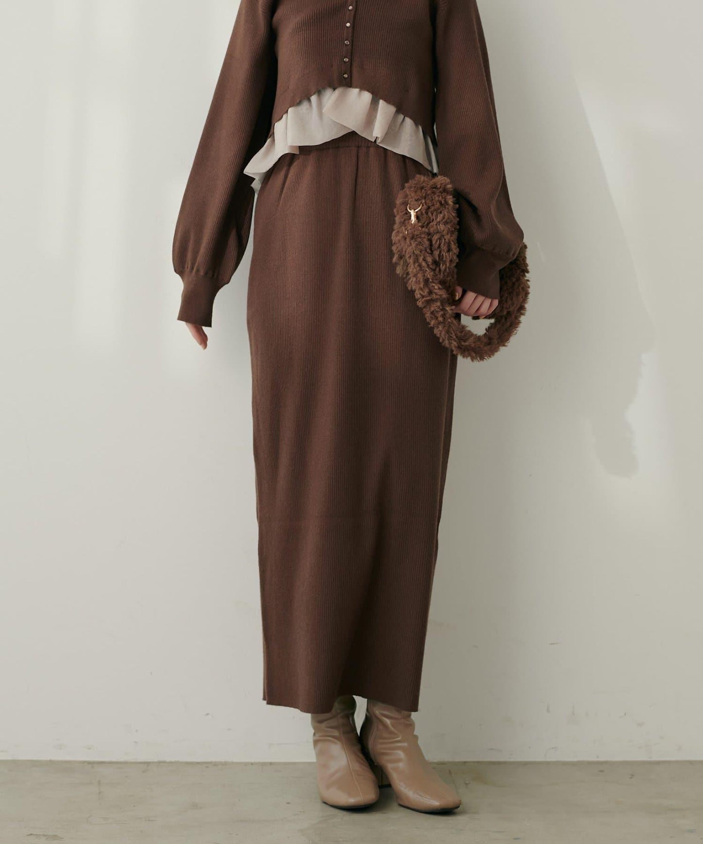 羅紋針織強調垂直線條,美化身體線條,提升氣質。
