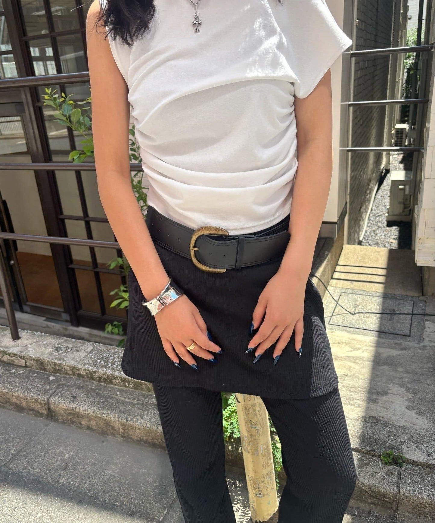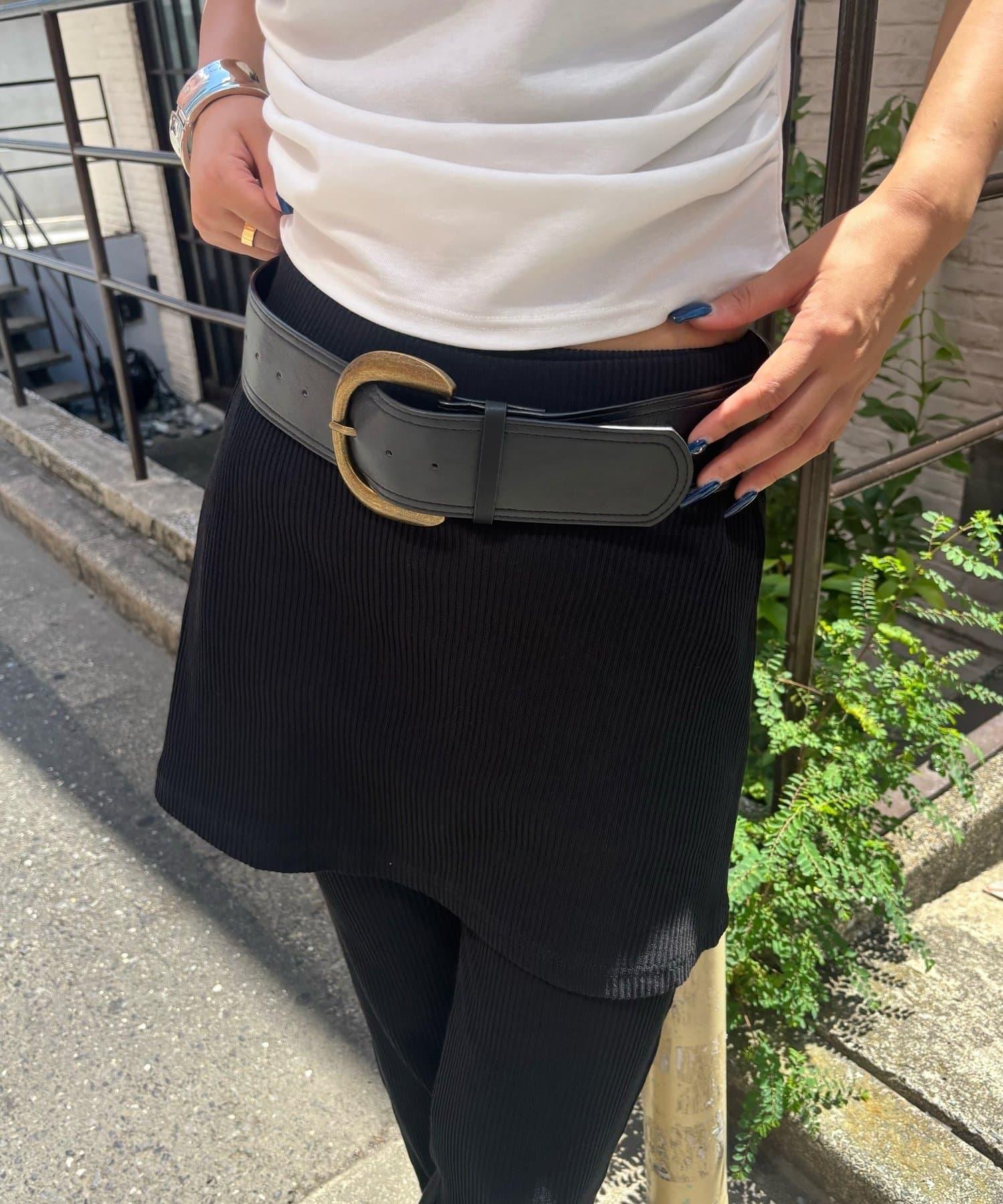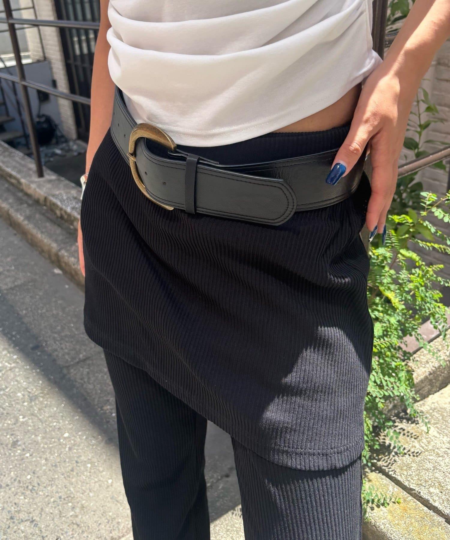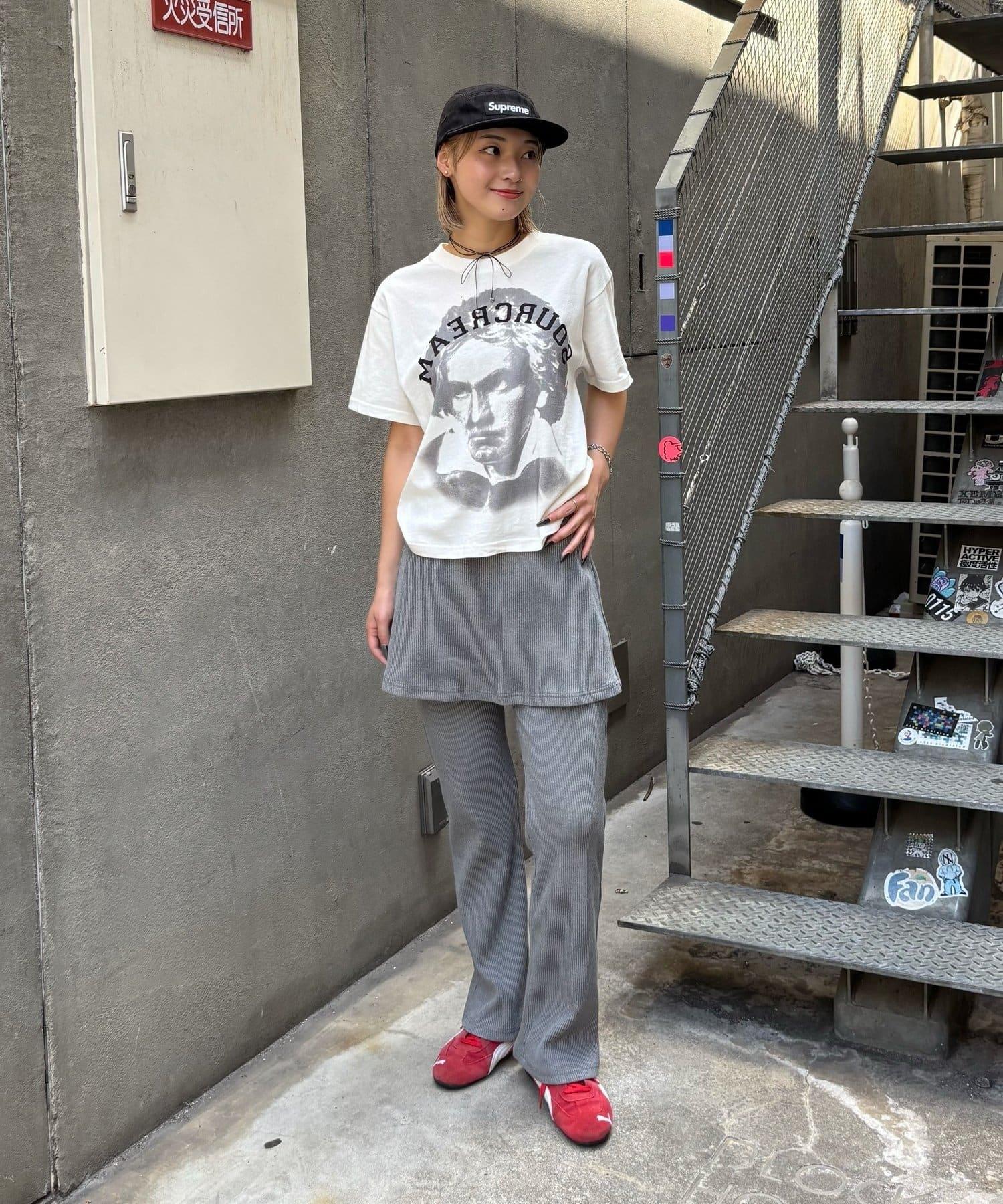 長褲採用喇叭輪廓,可與裙子疊穿,遮蓋臀部。