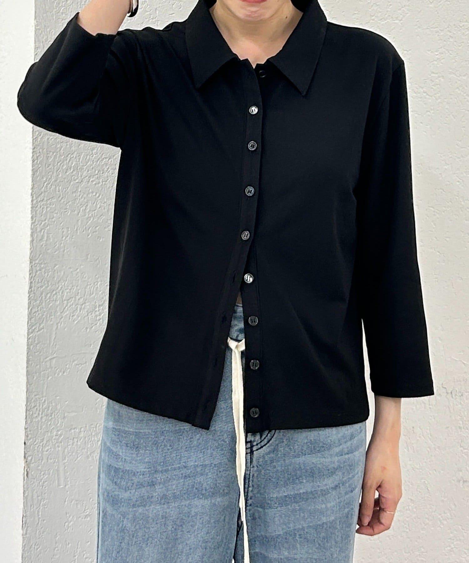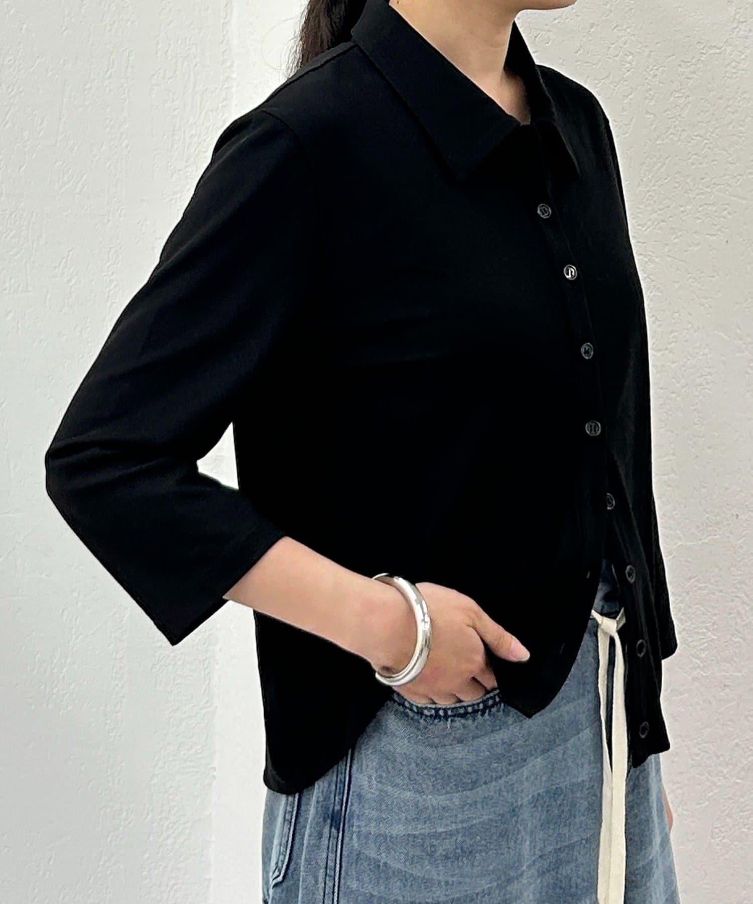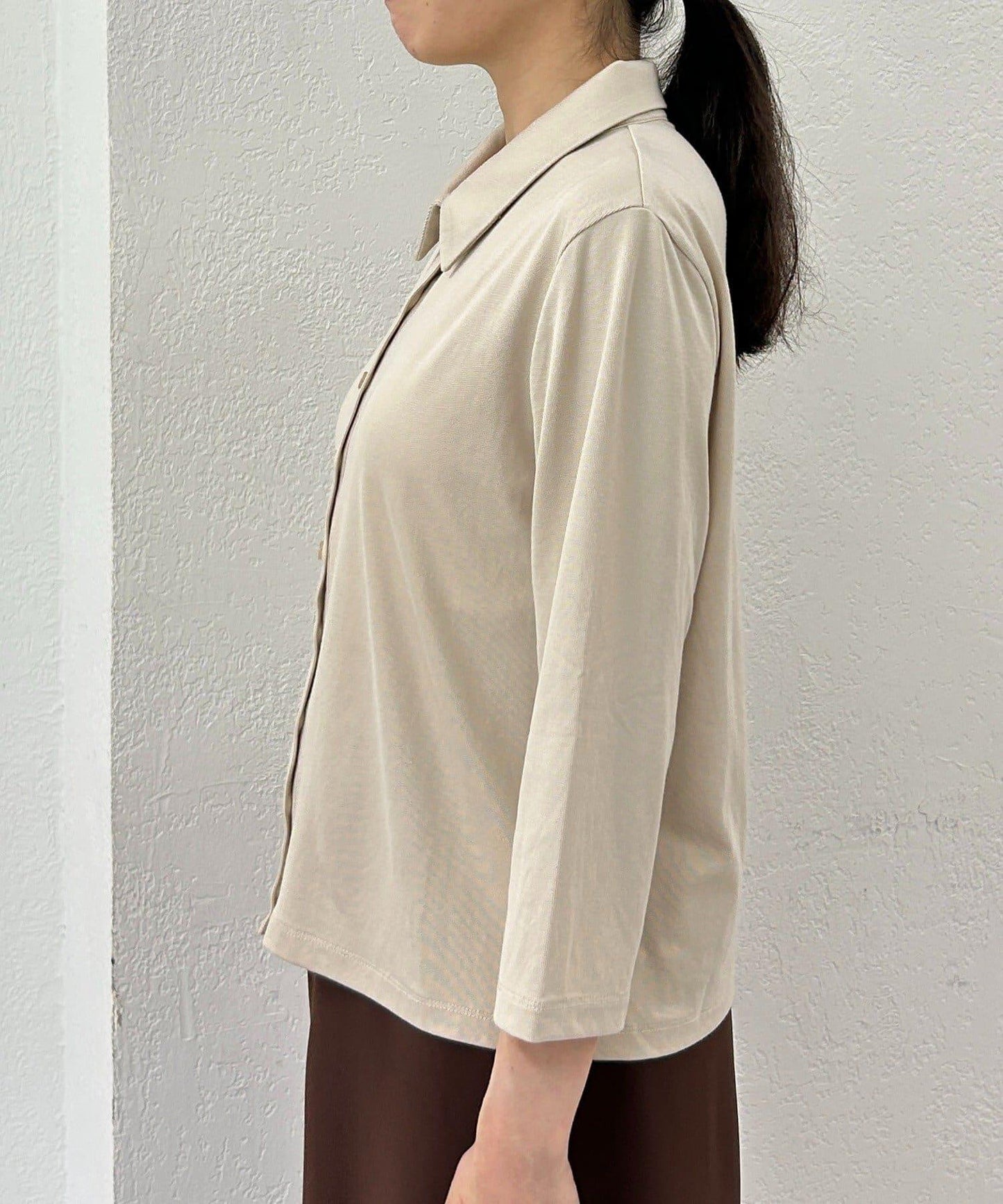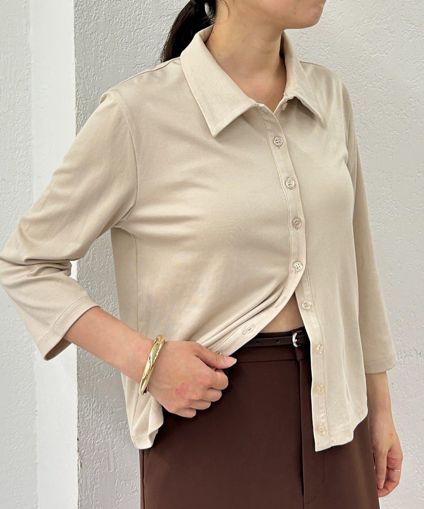 袖長為四分之三,可以隨意露出手腕,增加隨意感。還可以搭配配飾。