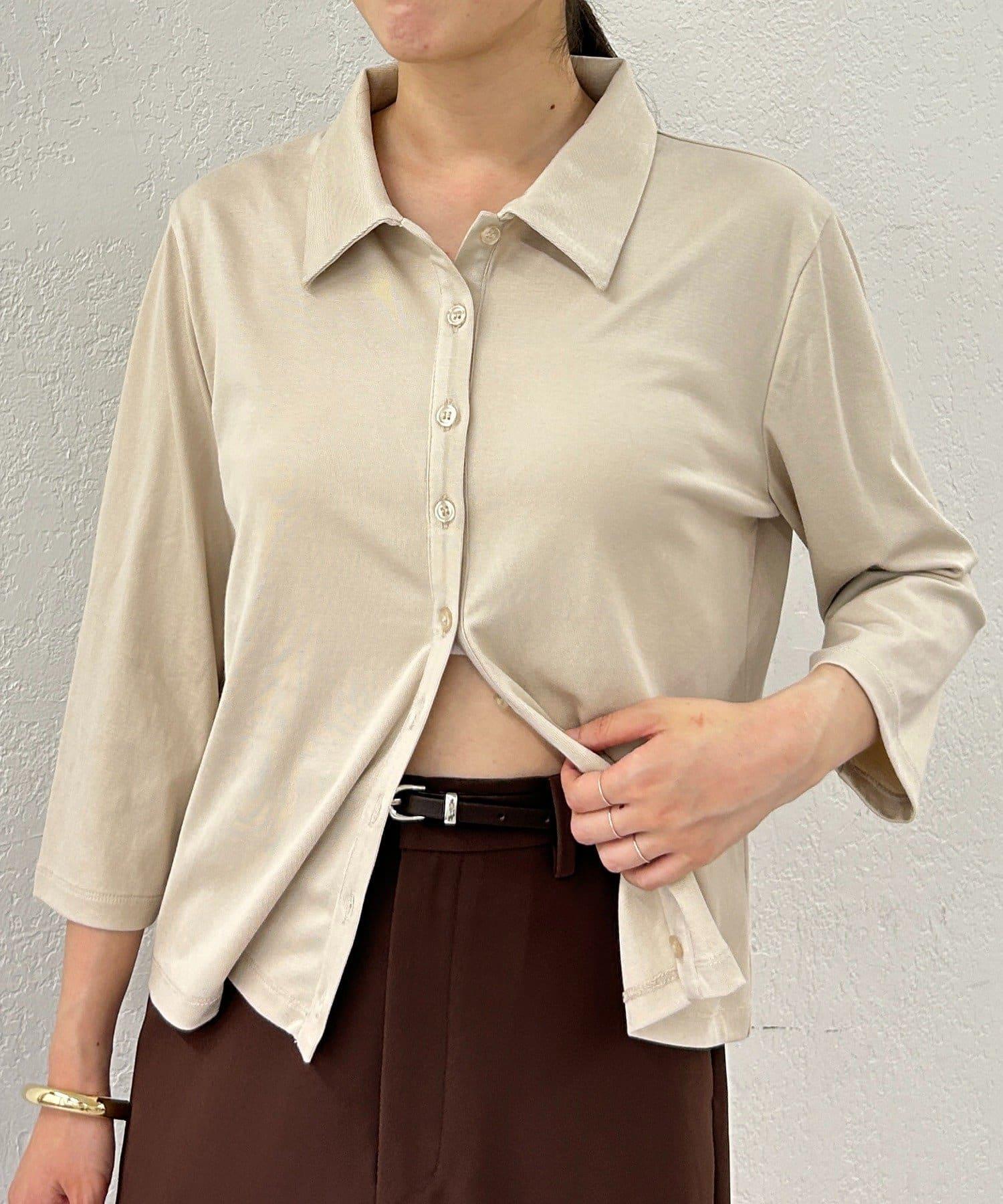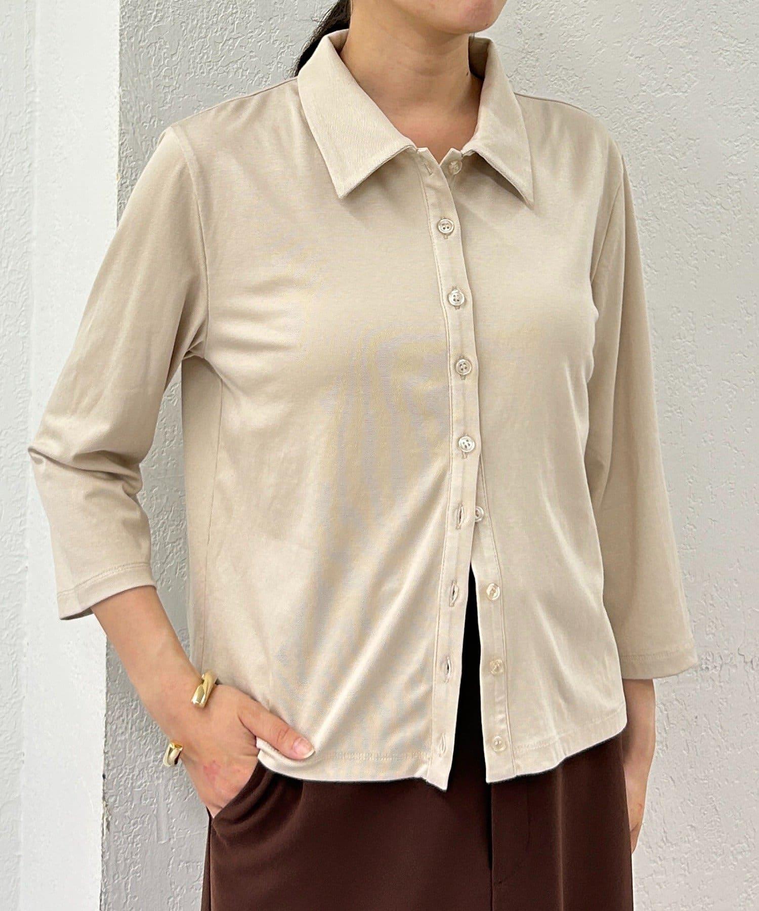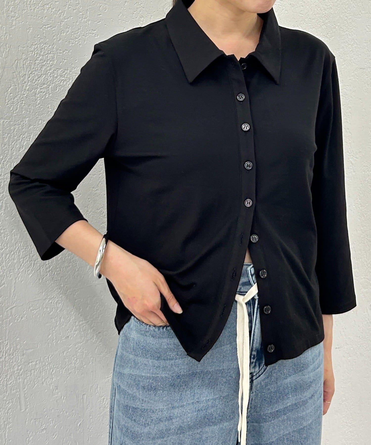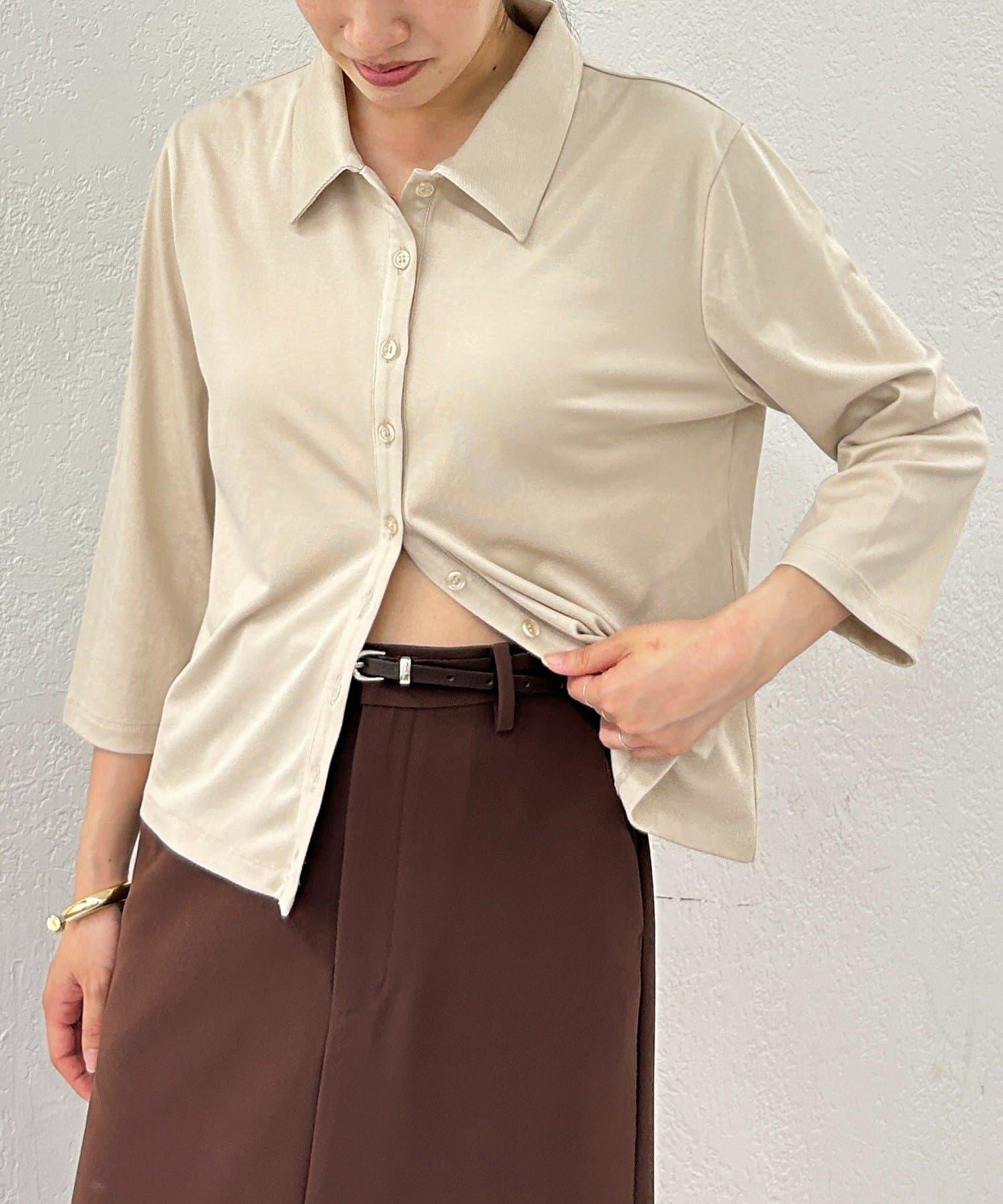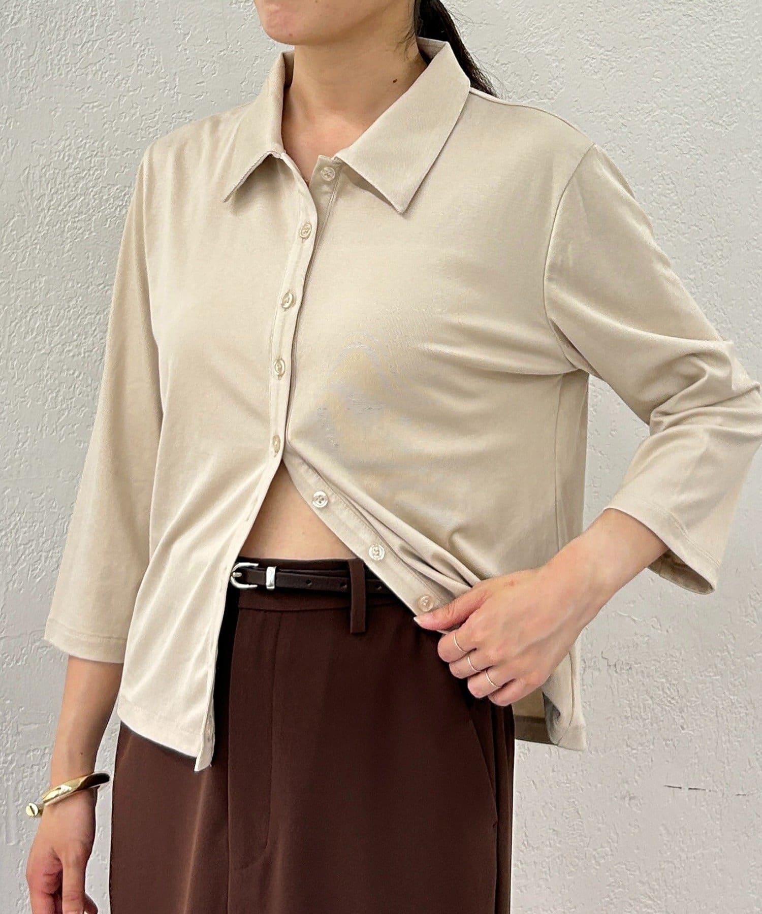 袖長為四分之三,可以隨意露出手腕,增加隨意感。還可以搭配配飾。