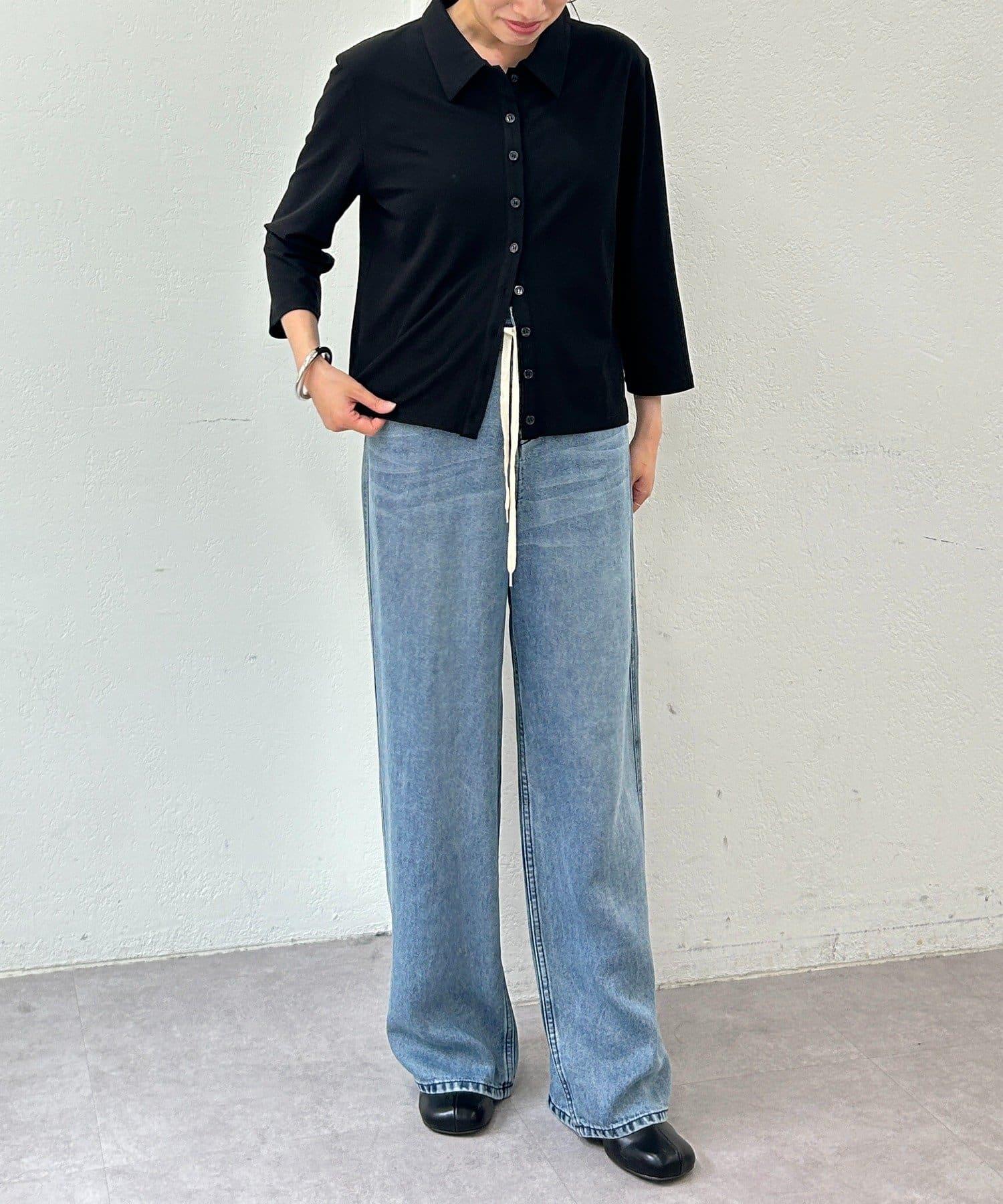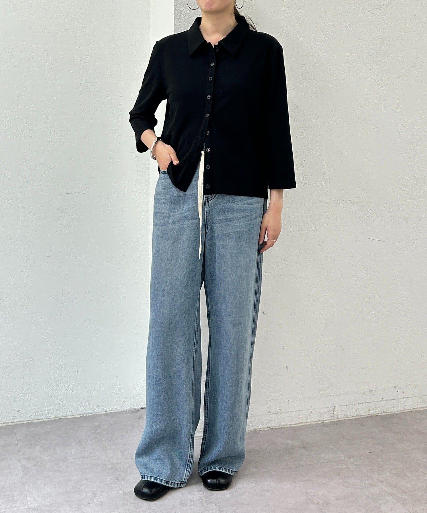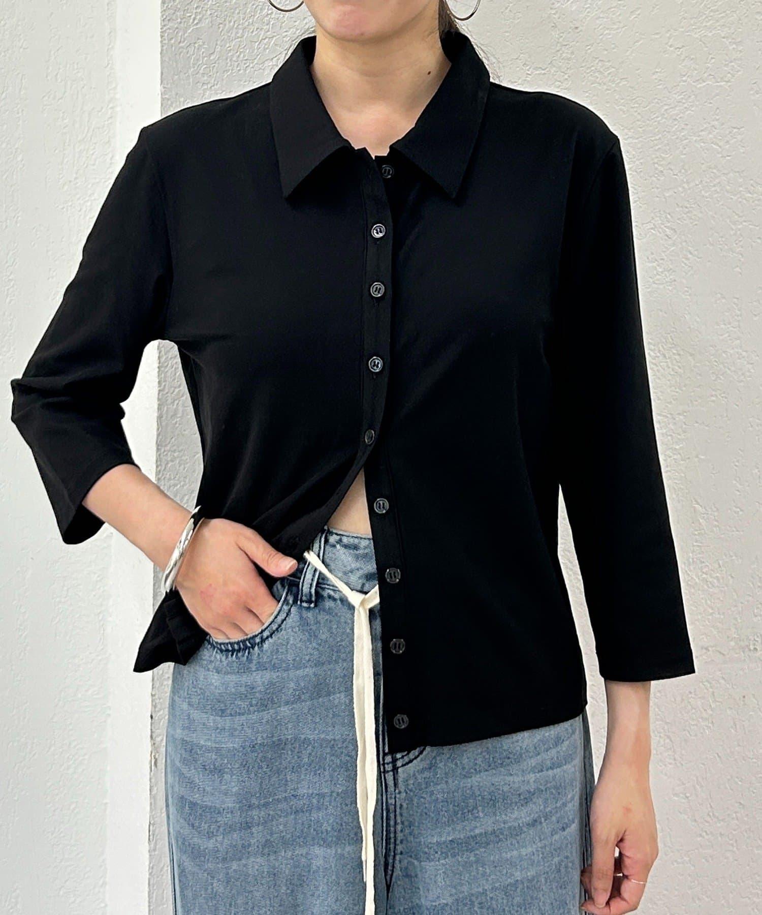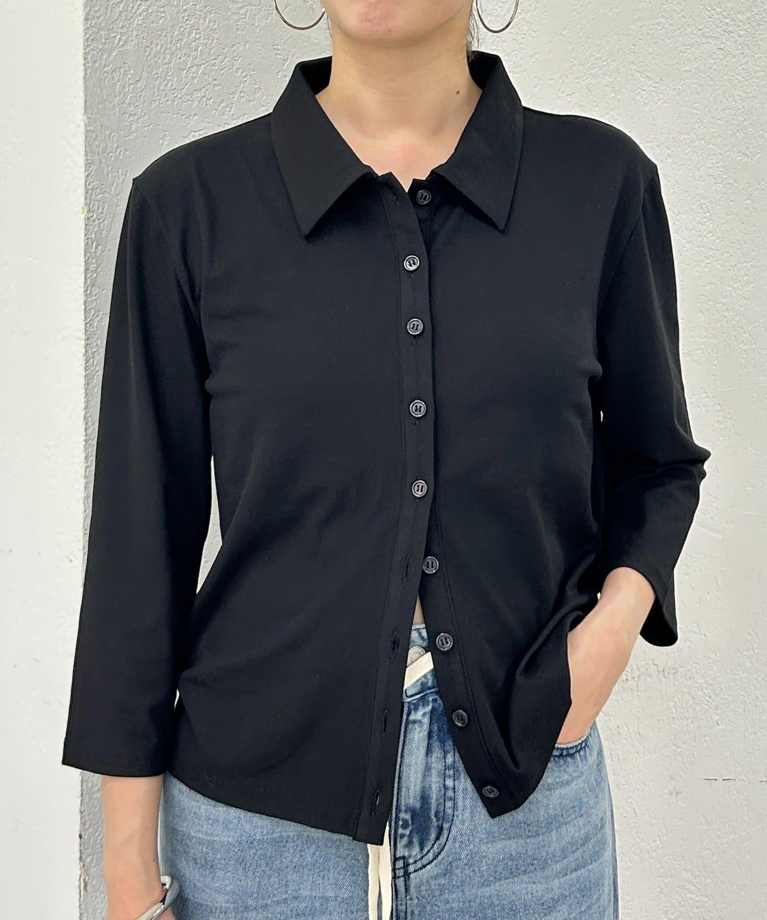 袖長為四分之三,可以隨意露出手腕,增加隨意感。還可以搭配配飾。