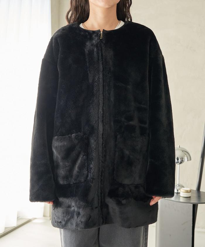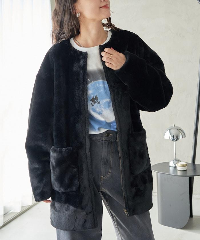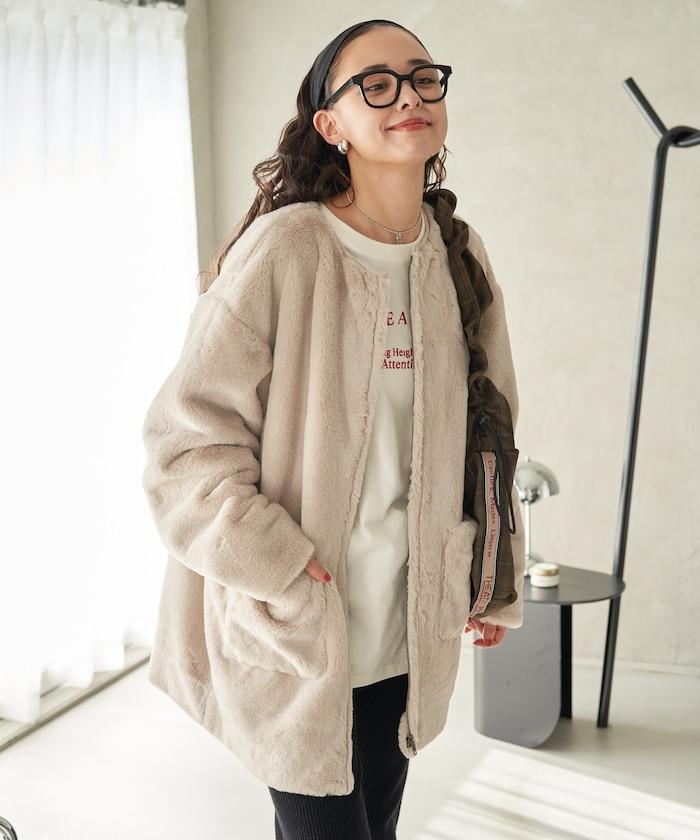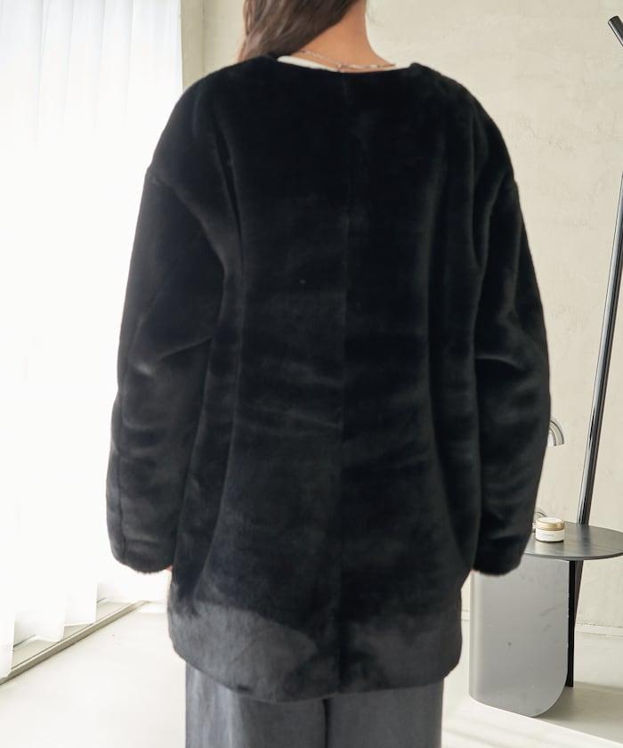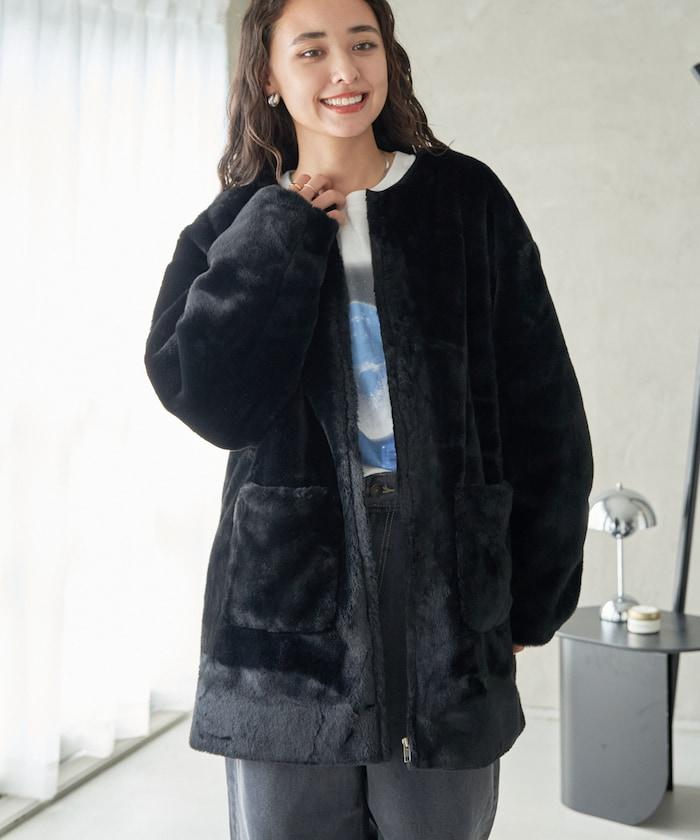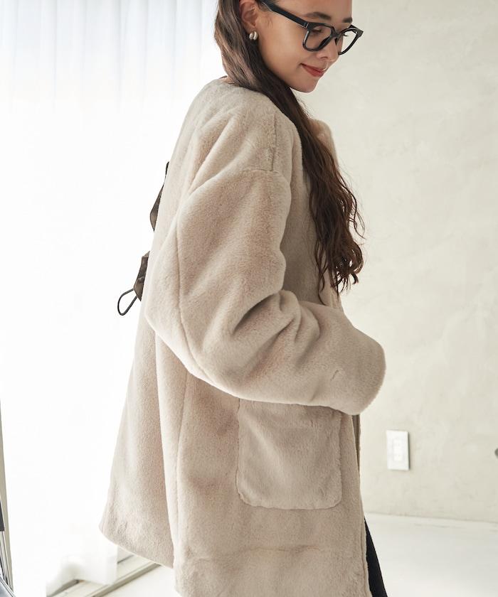 女性化的人造皮草中腰夾克,蓬鬆感適中。