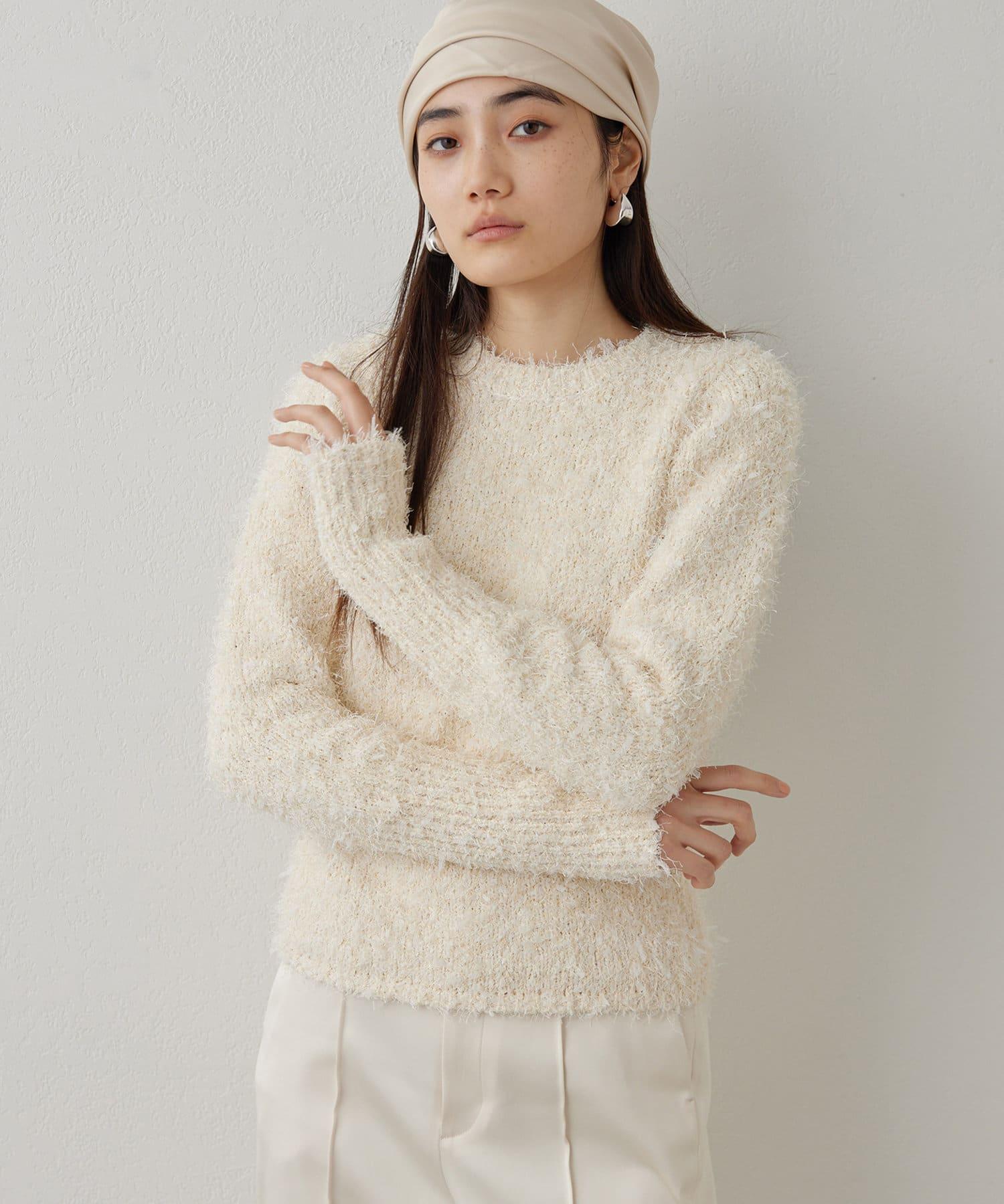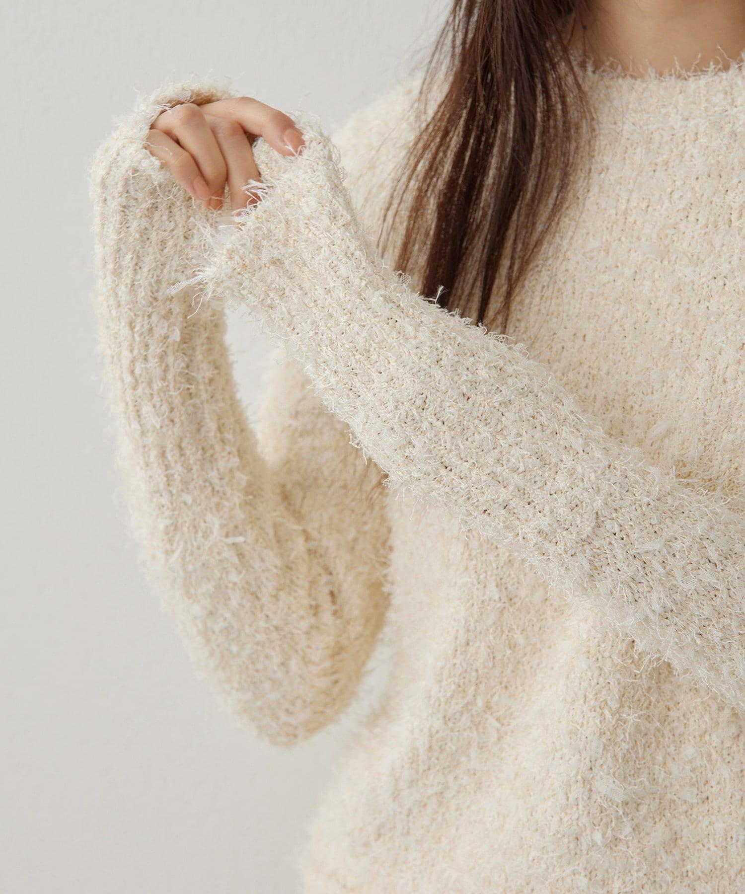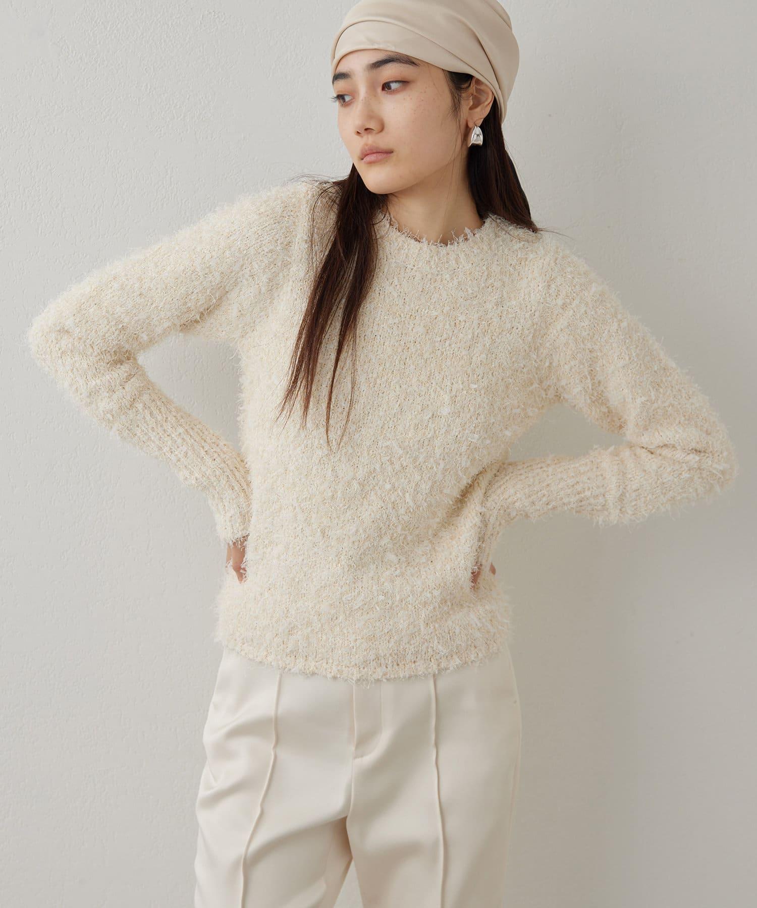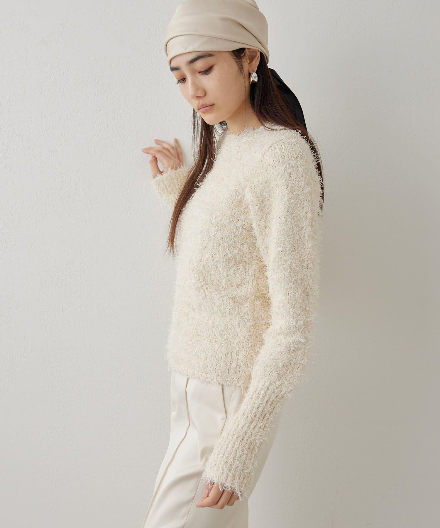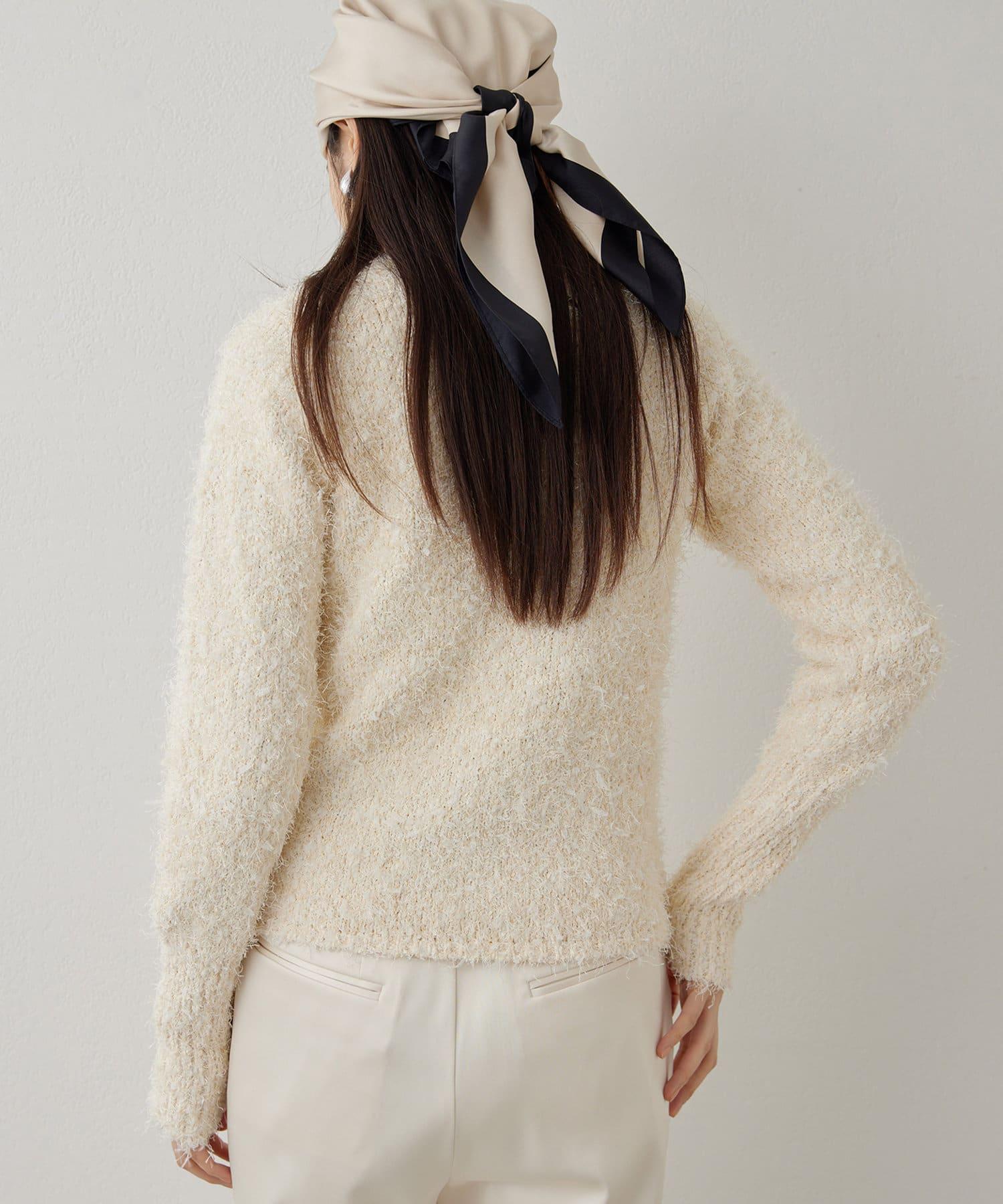 這款針織套頭衫採用仿粗花呢紗線裝飾。