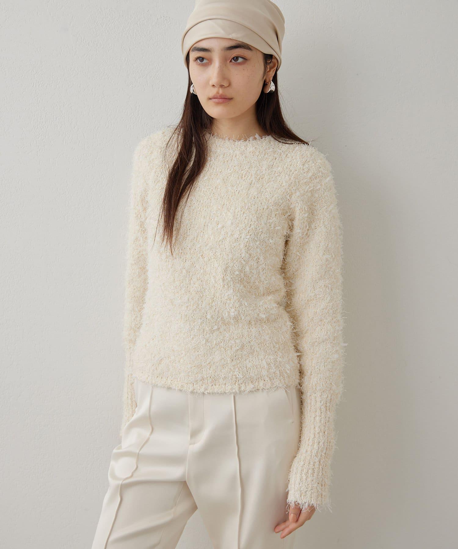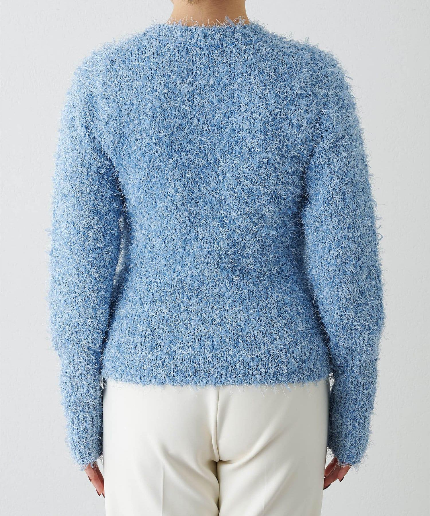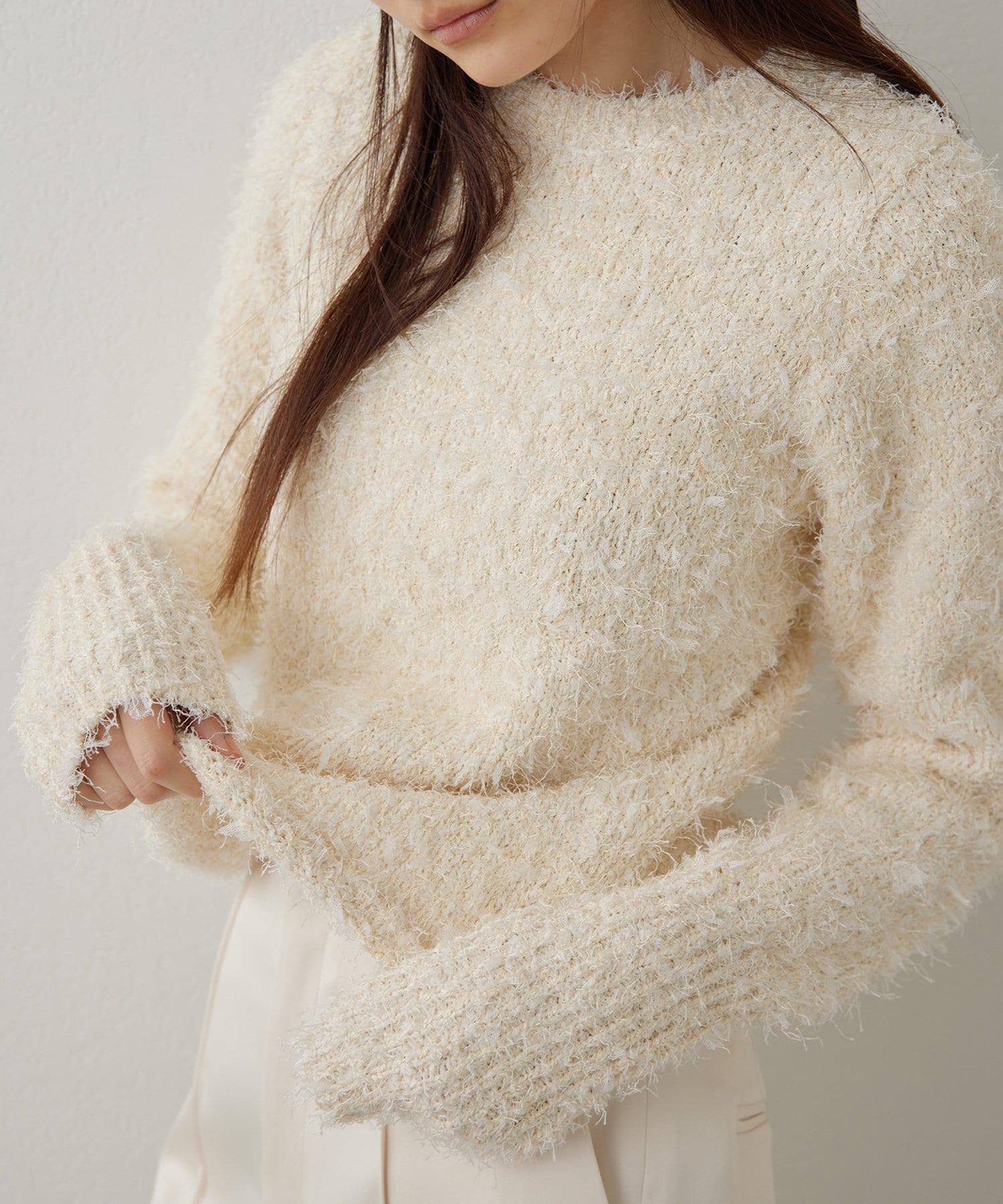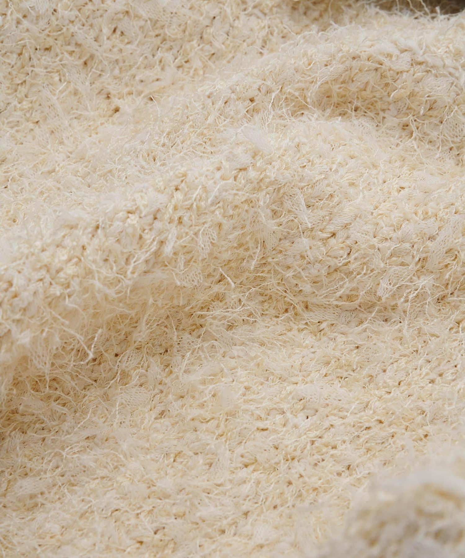 這款針織套頭衫採用仿粗花呢紗線裝飾。