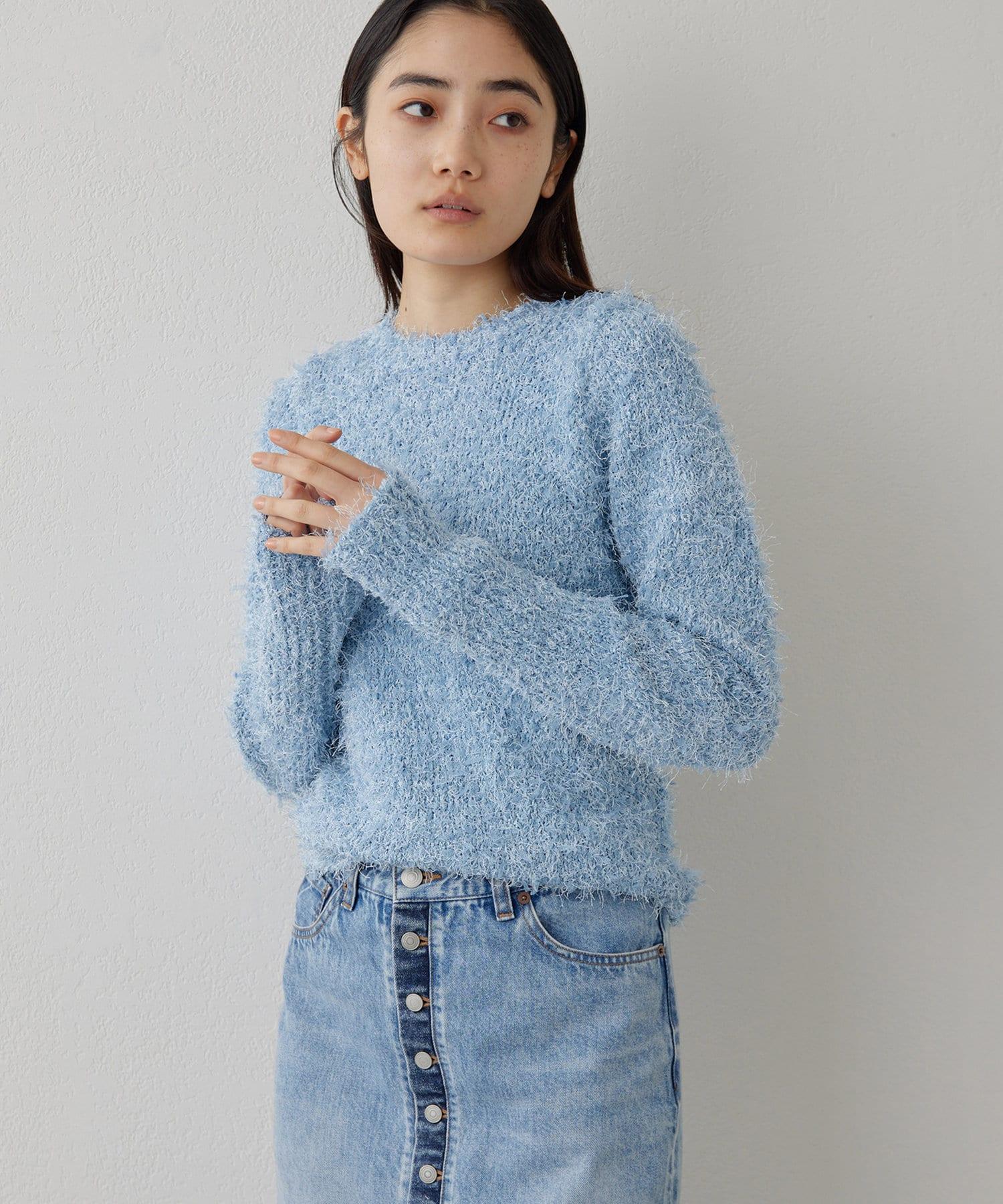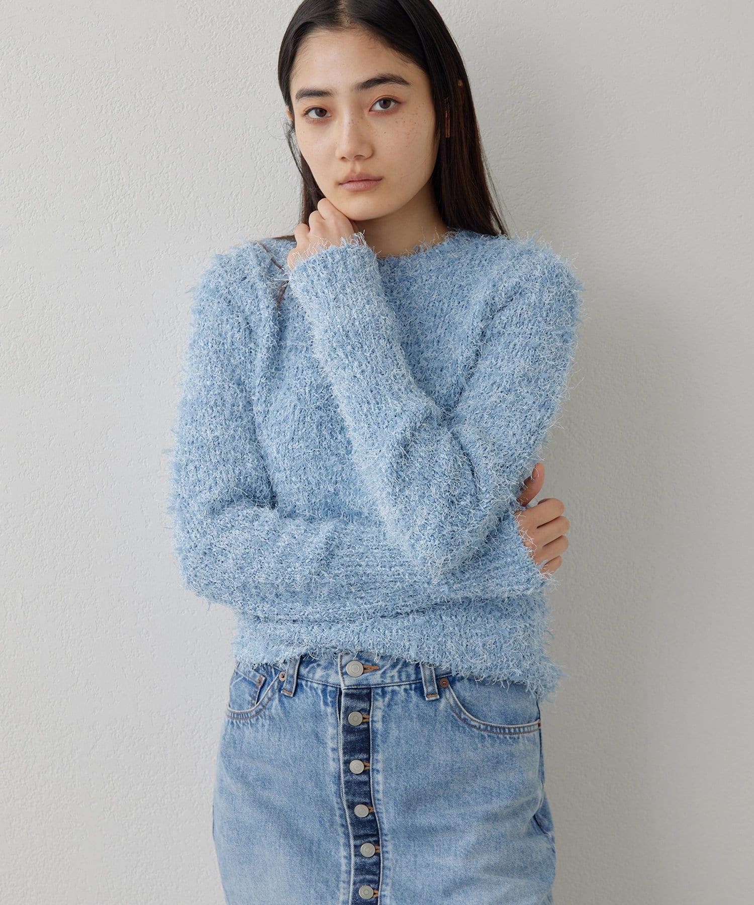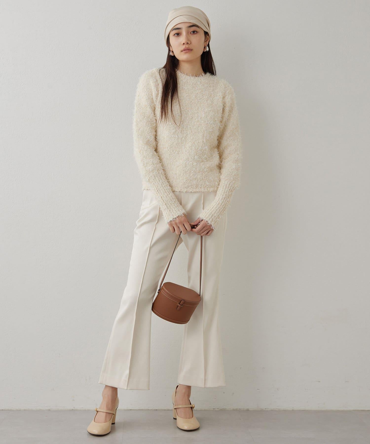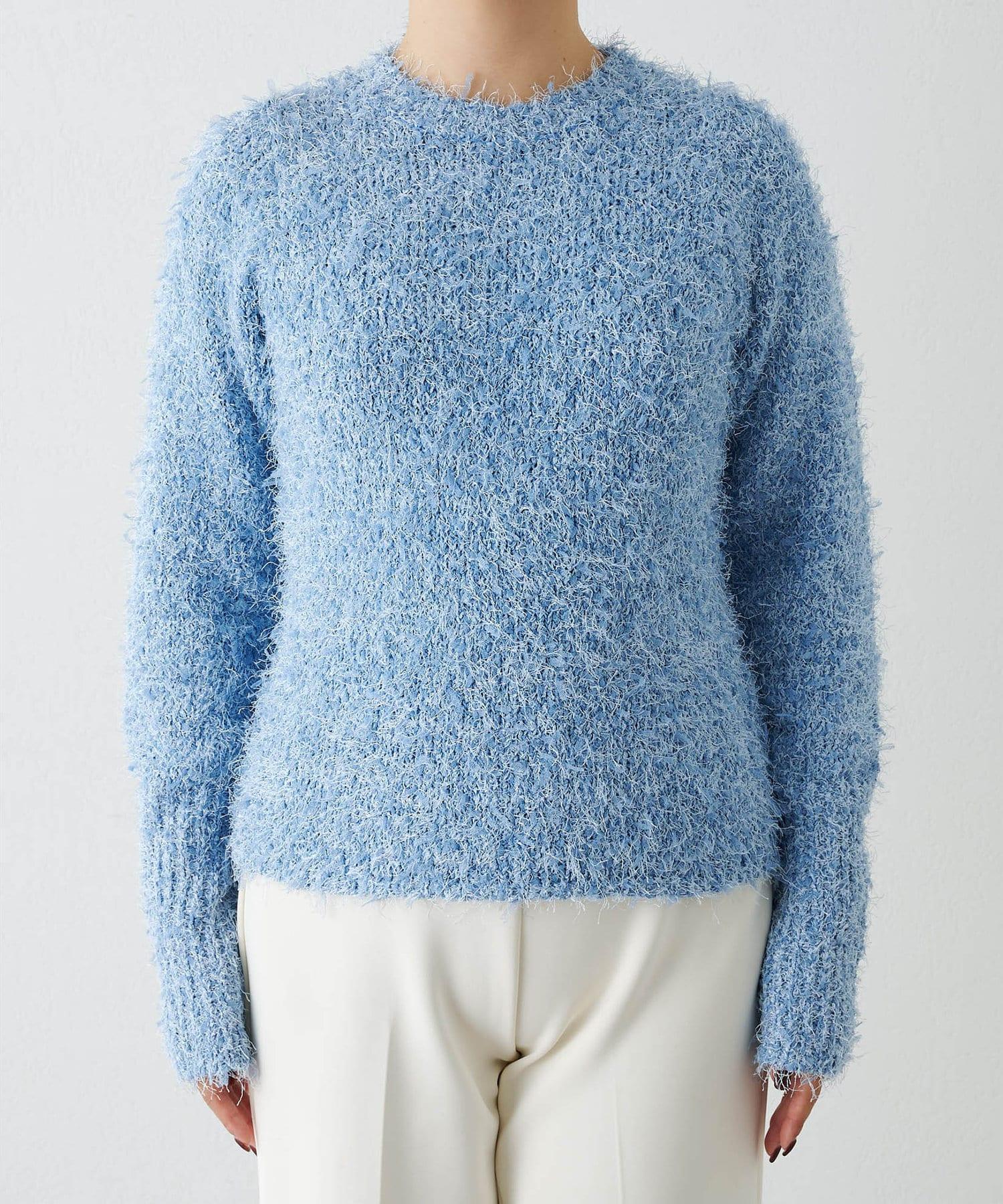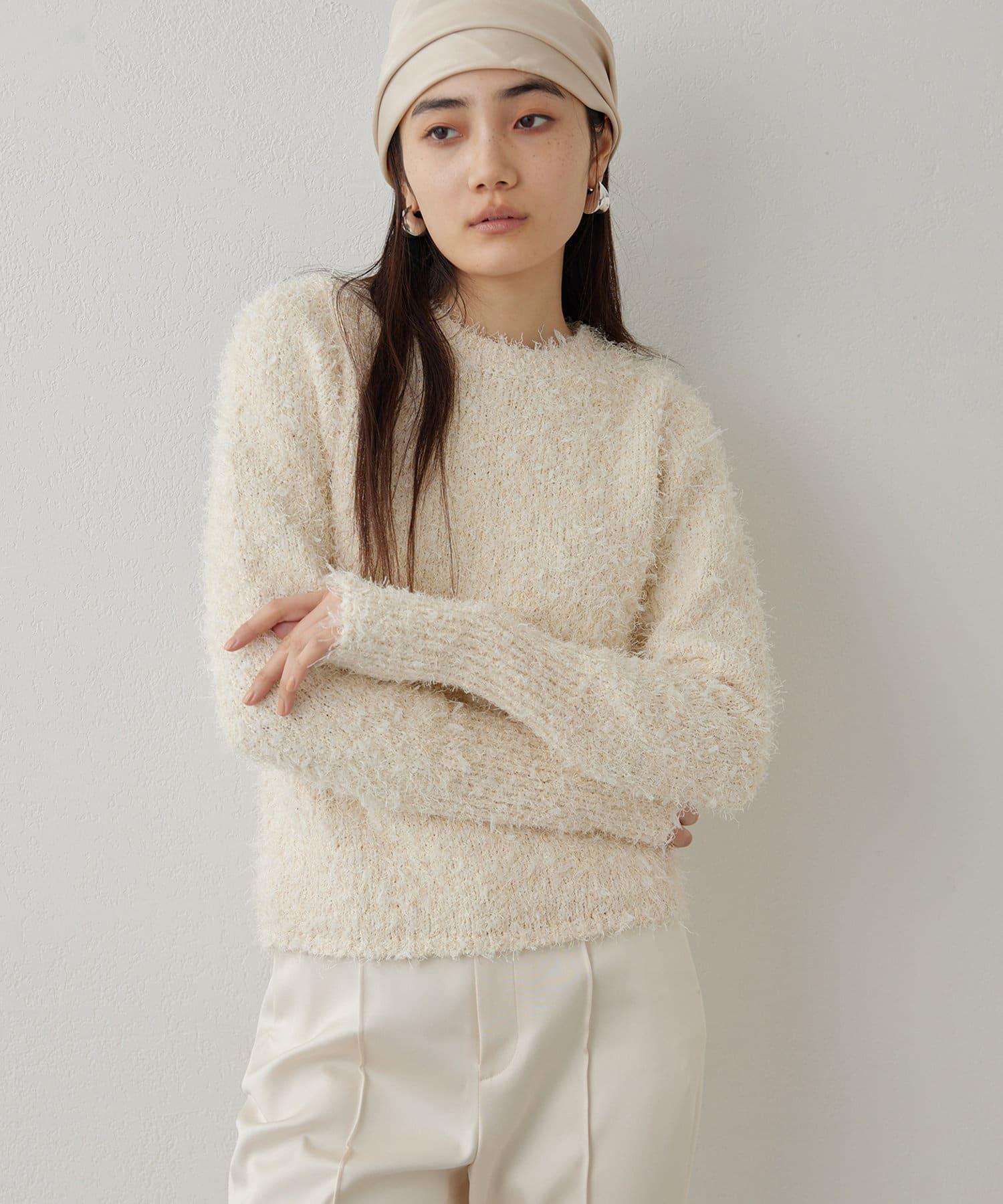 這款針織套頭衫採用仿粗花呢紗線裝飾。