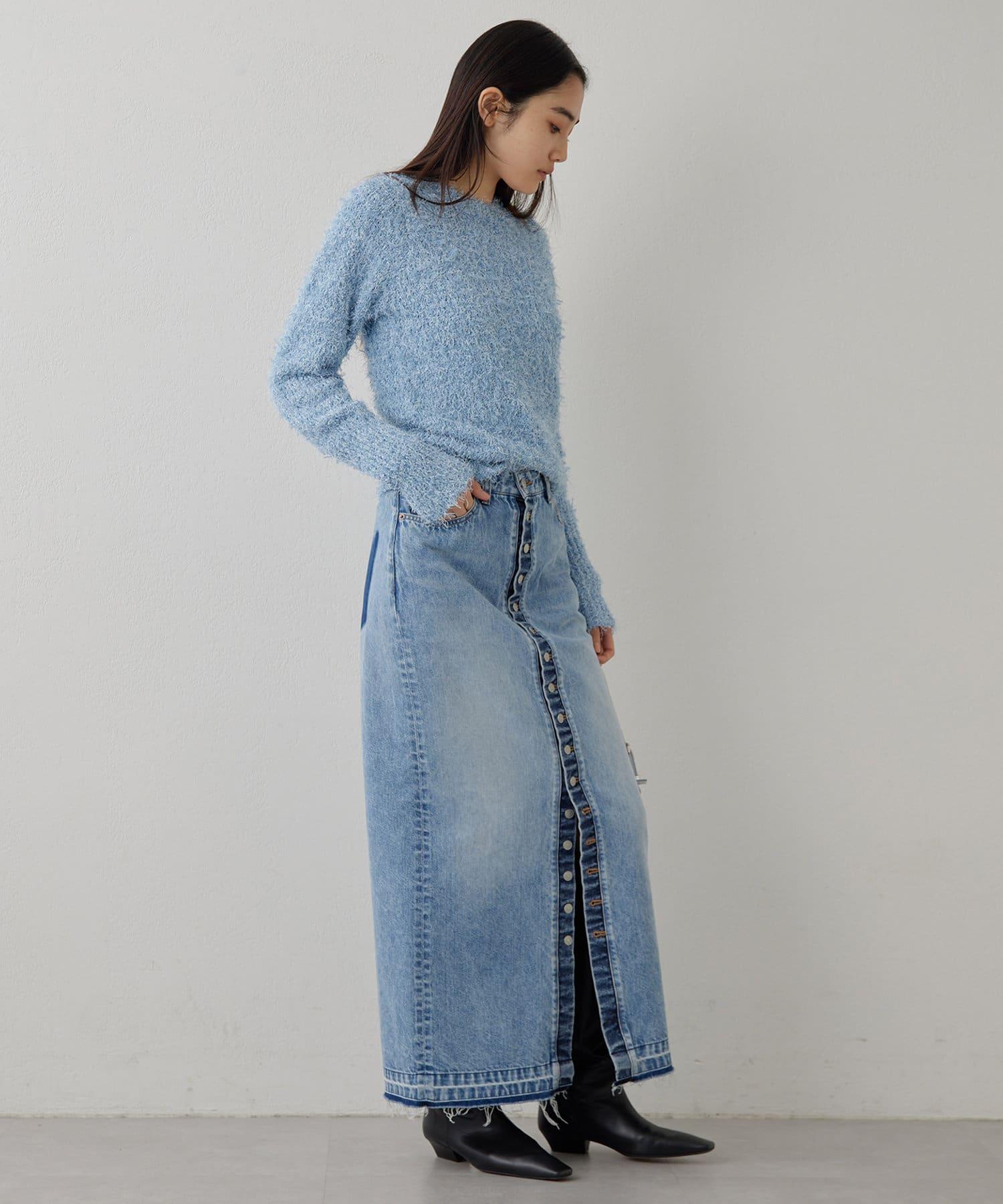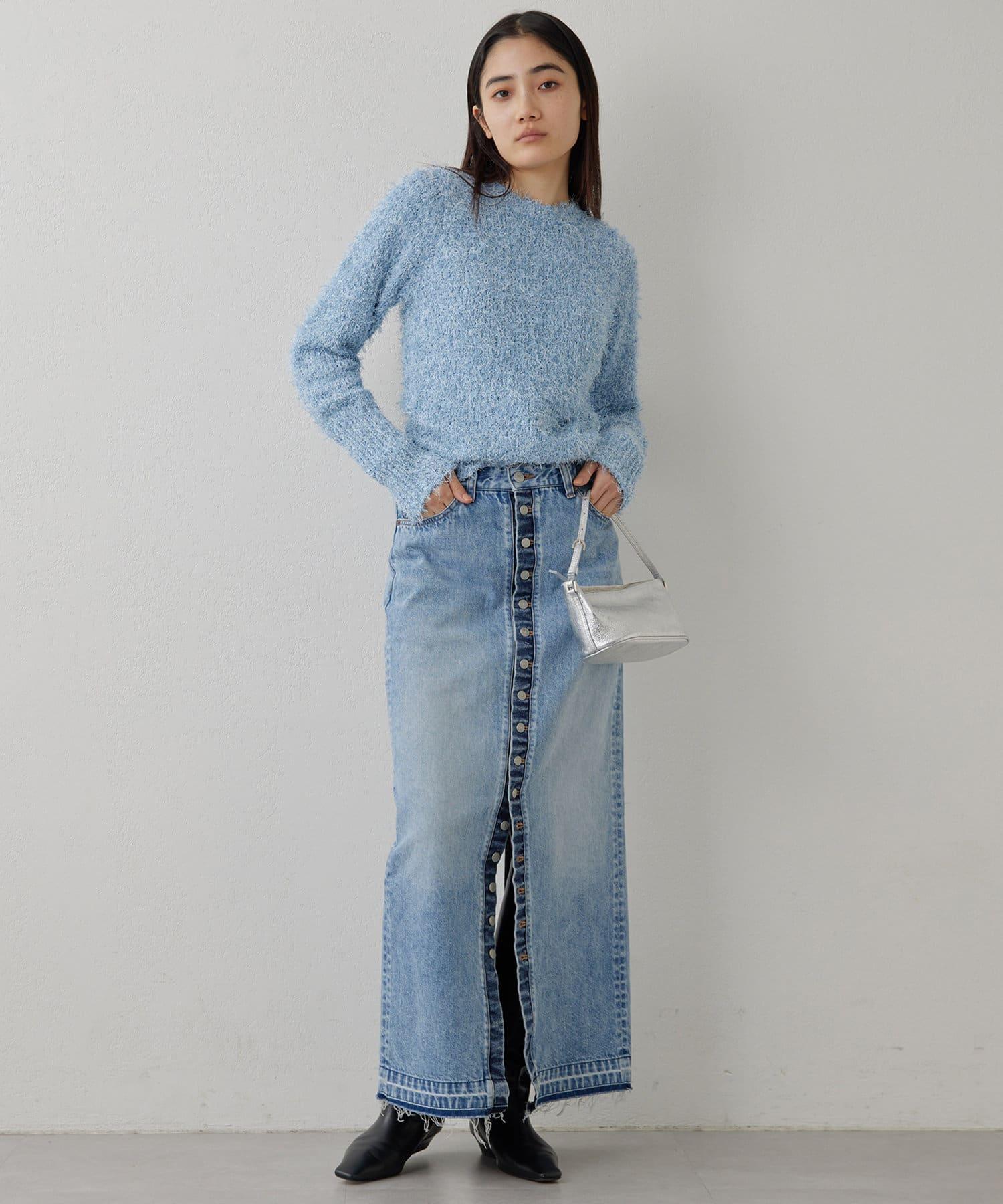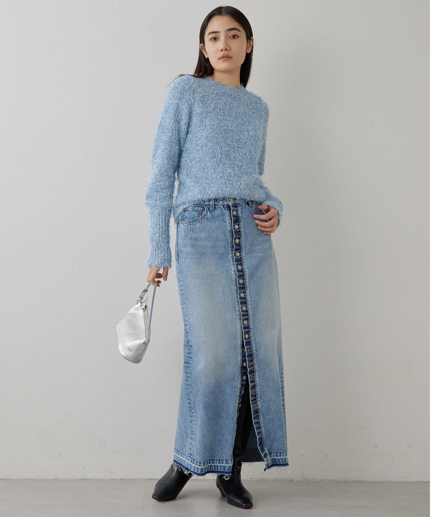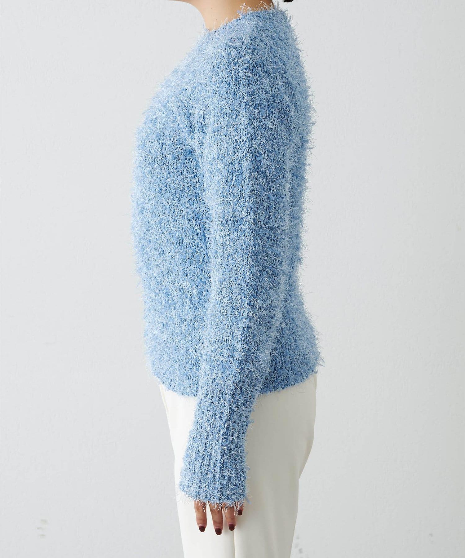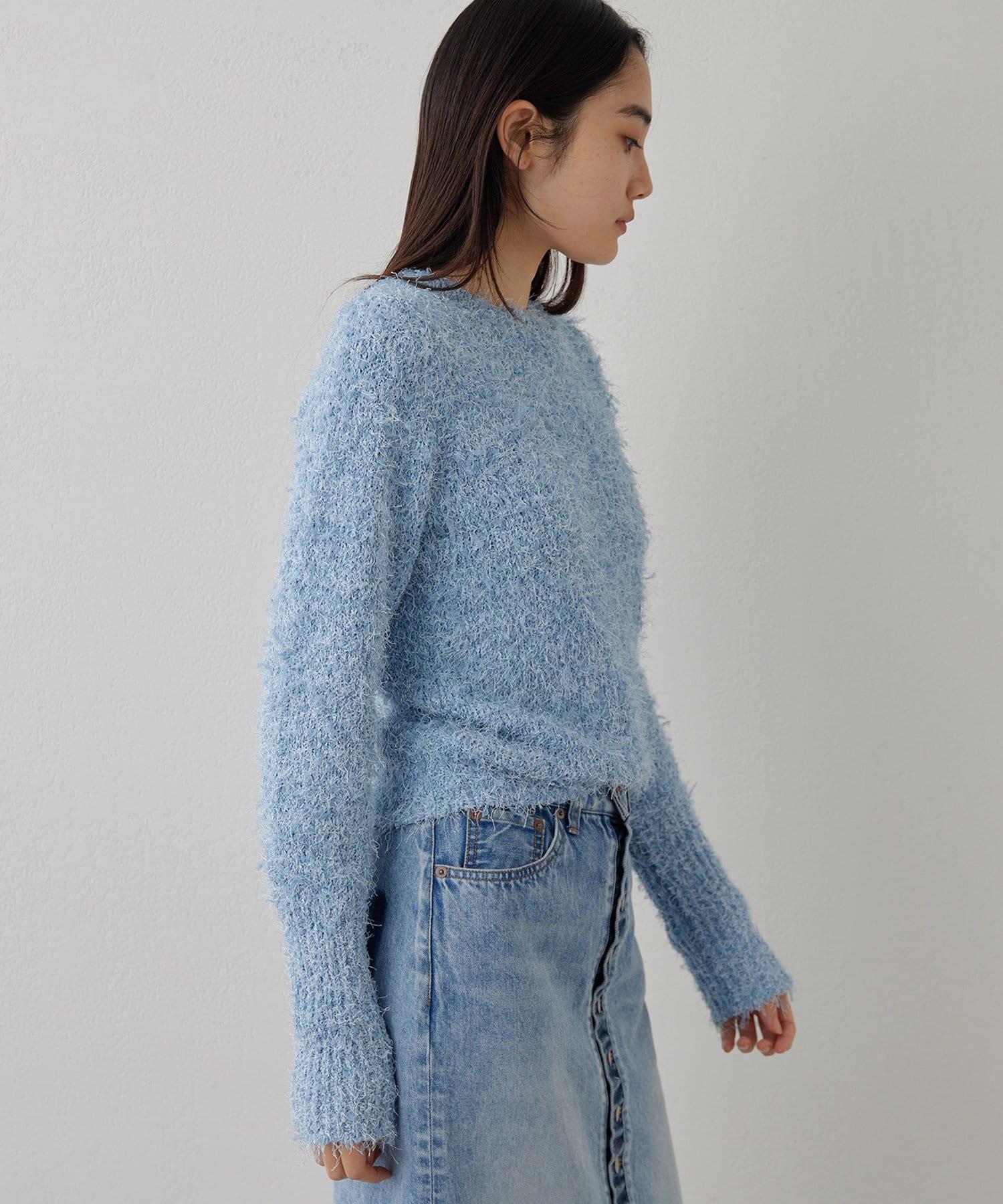 這款針織套頭衫採用仿粗花呢紗線裝飾。