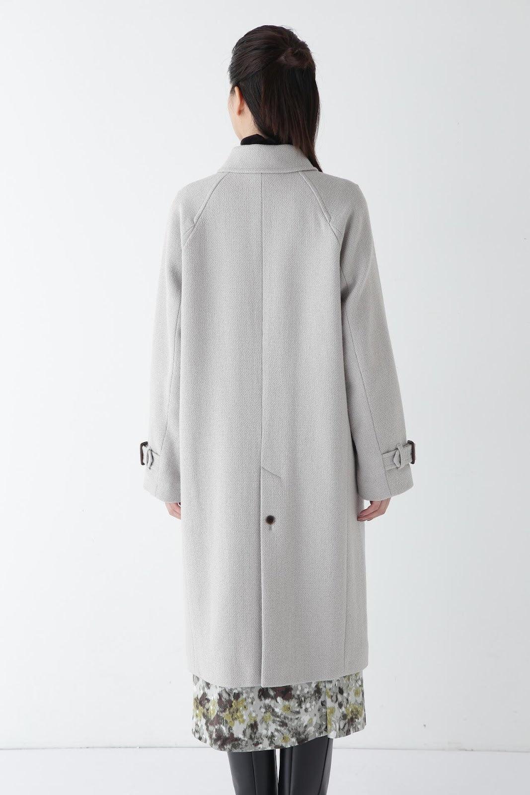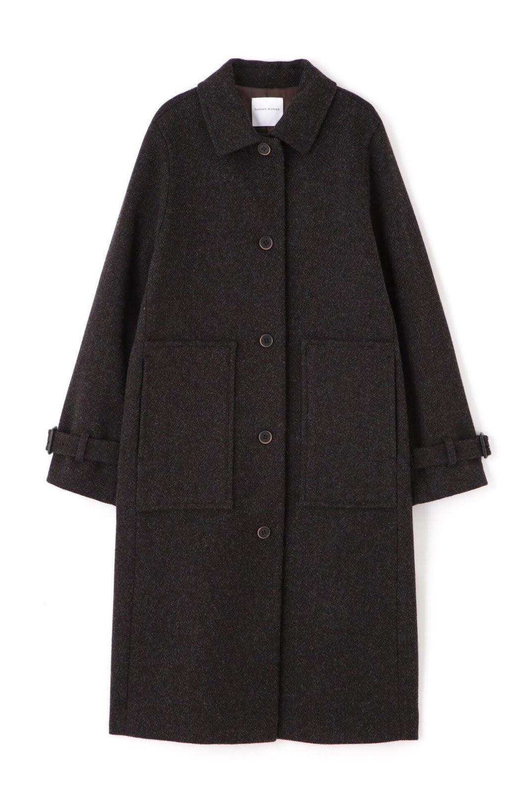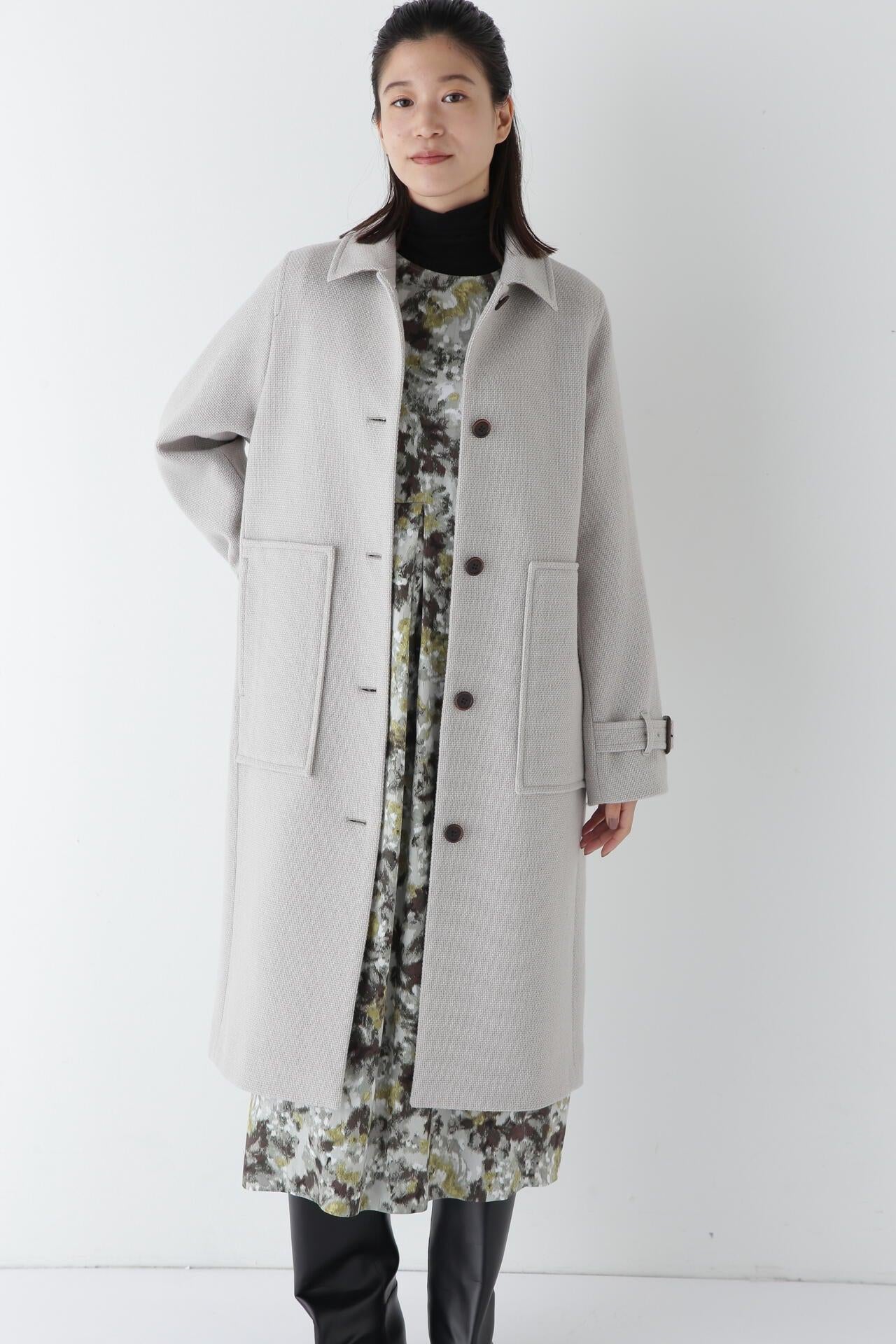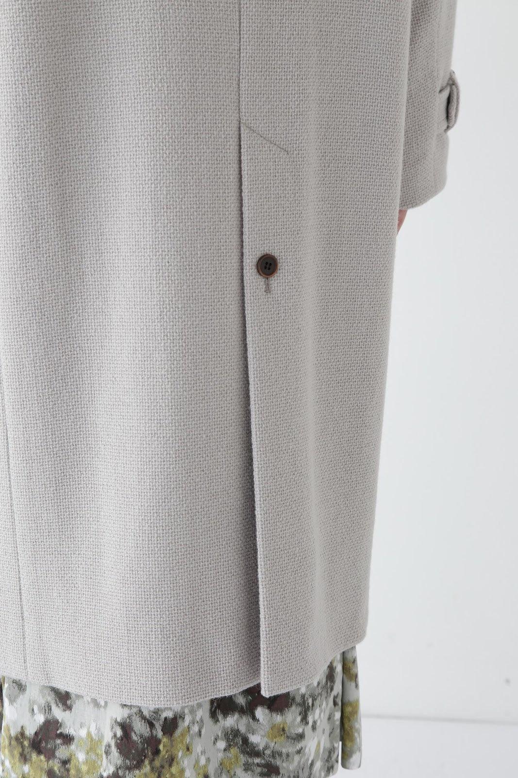 模版色大衣,盡顯優雅氣質 [設計要點] 這款不鏽鋼領大衣採用了傳統的細節設計,如袖口上帶有皮革風格搭扣的迷你腰帶。前袖採用整齊的套袖設計,後袖則是活動性十足的插肩袖。面料是一種類似花呢的羊毛面料,地面花紋是用細微的粗紗織成的牛形結構。面料採用輕質整理,減少了打結數量,以減輕花呢特有的厚重感。這種面料的地面花紋極具表現力,在任何場合都可以長期穿著。即使搭配簡單的服裝,也能營造出優雅的氛圍。