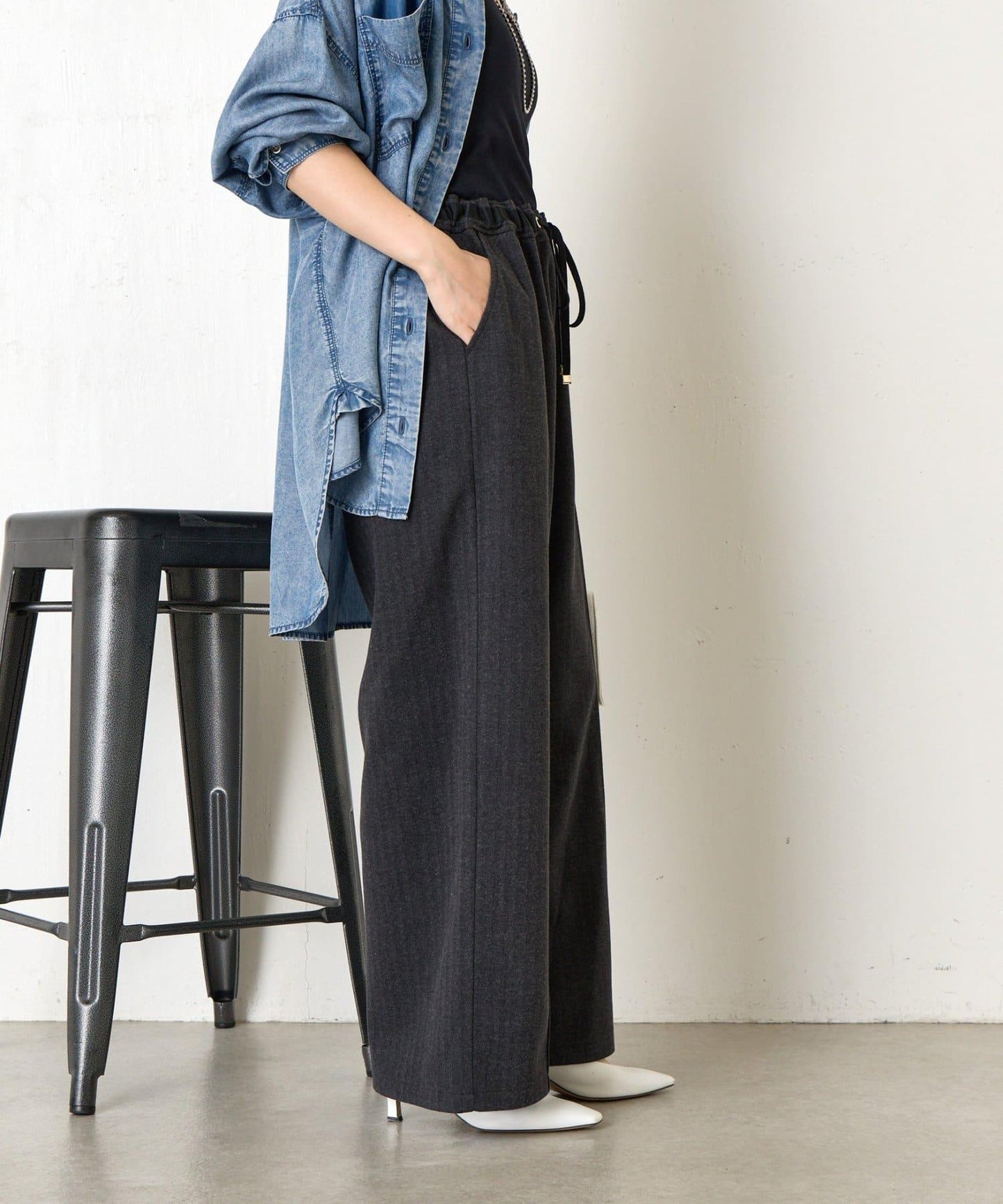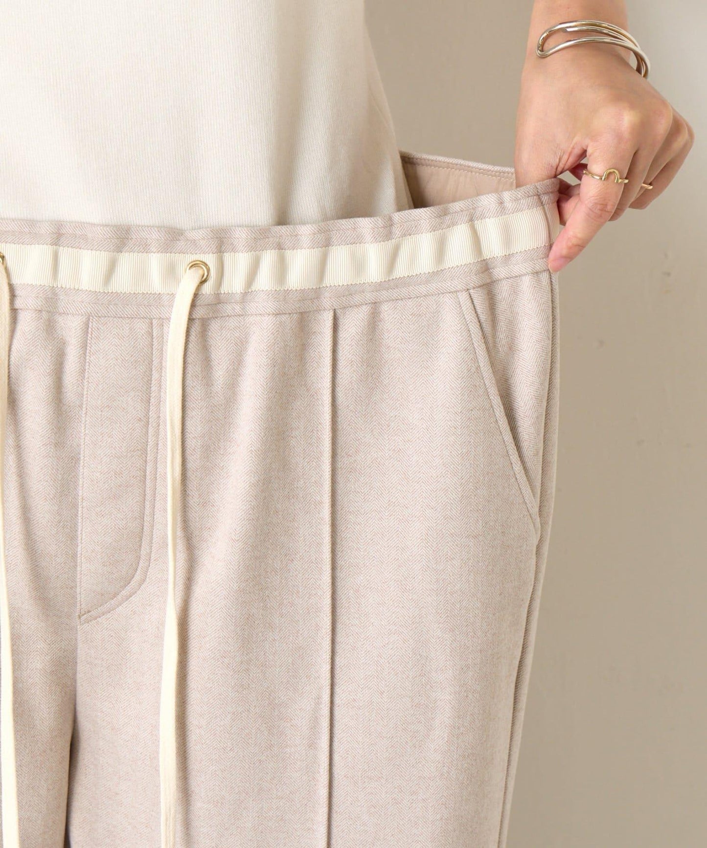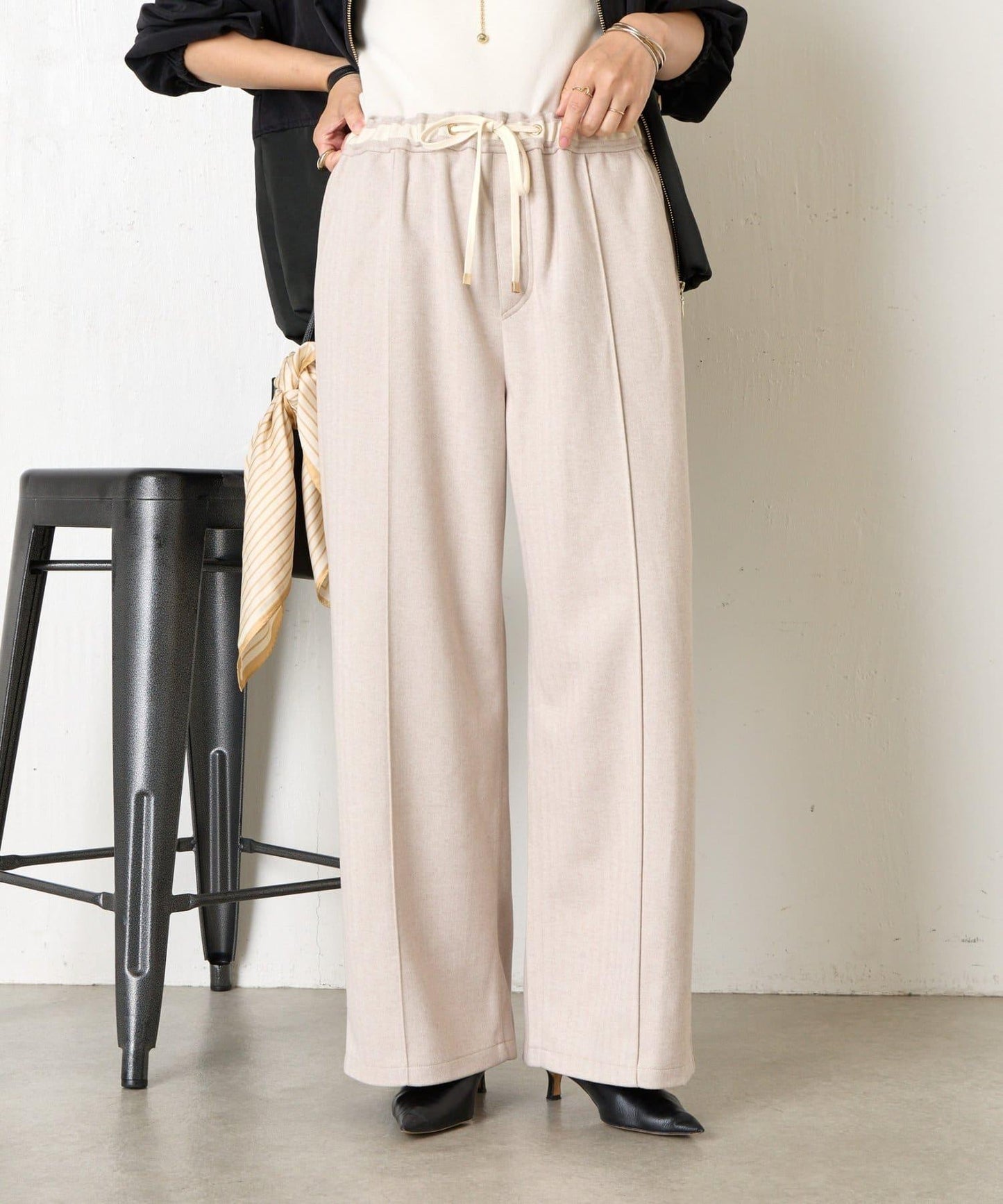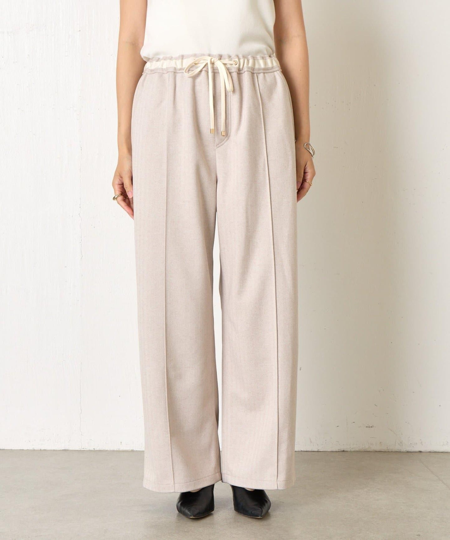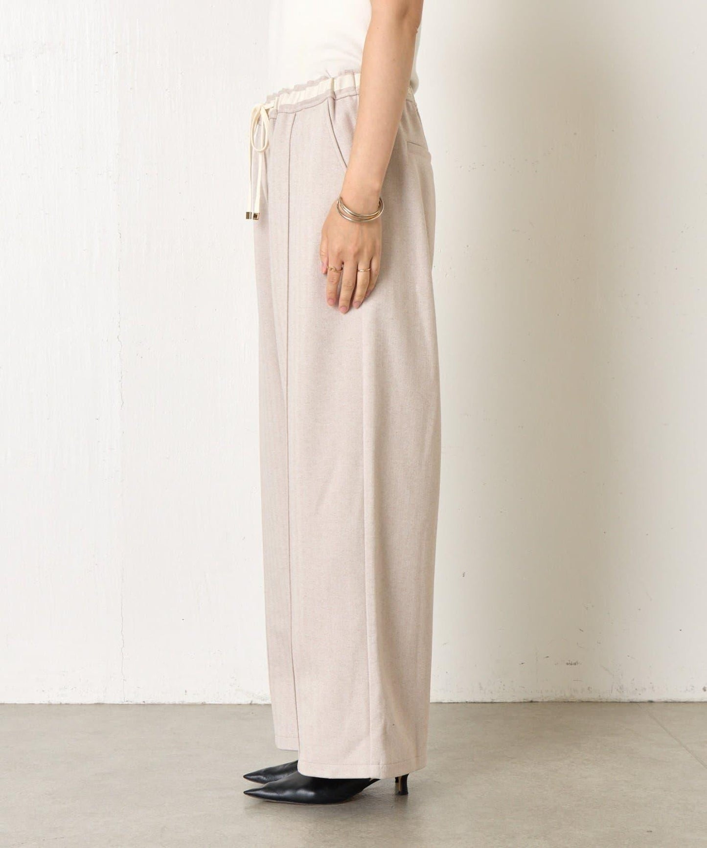 這款簡易長褲採用奢華的仿羊毛面料,給人一種優雅的感覺。