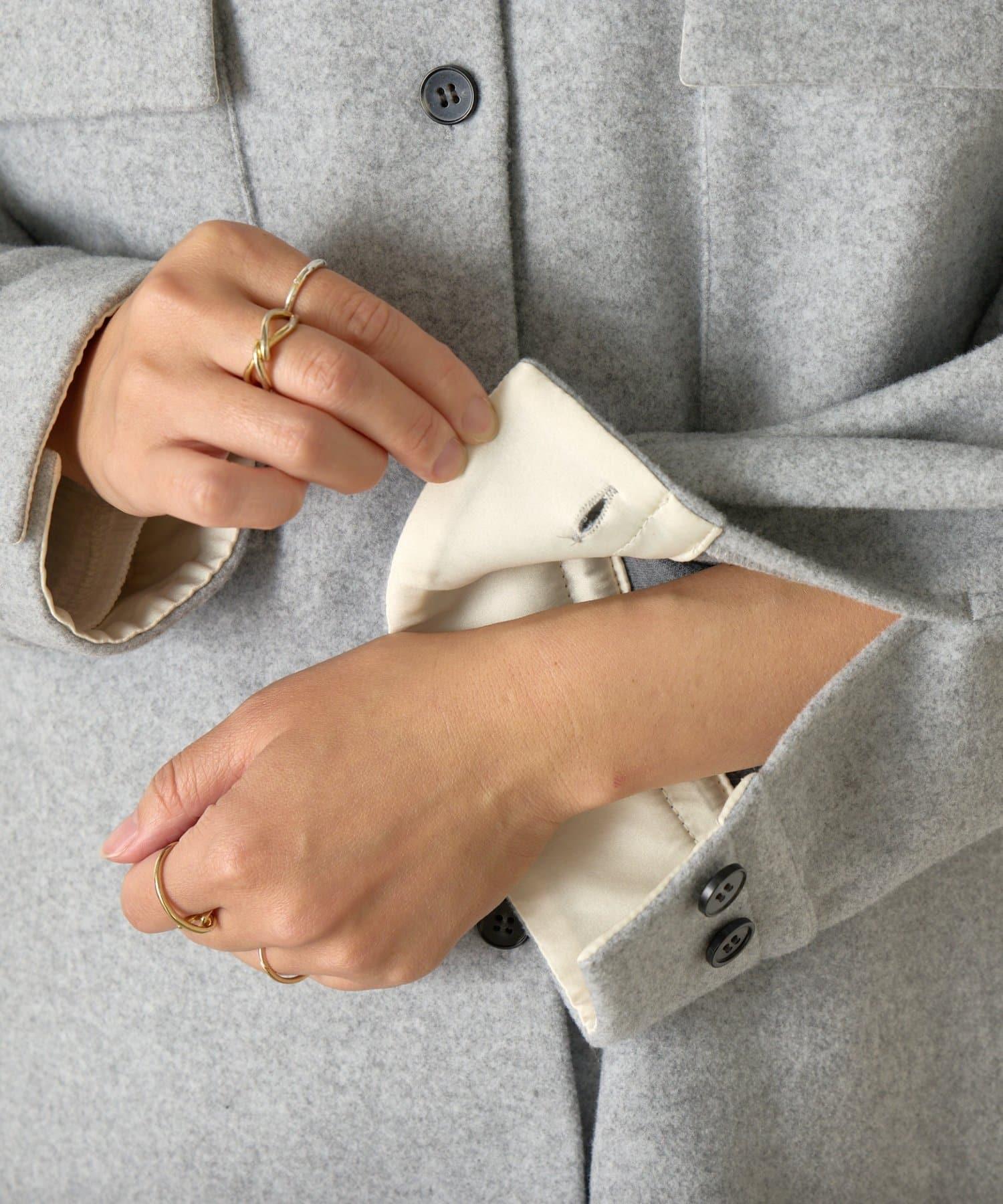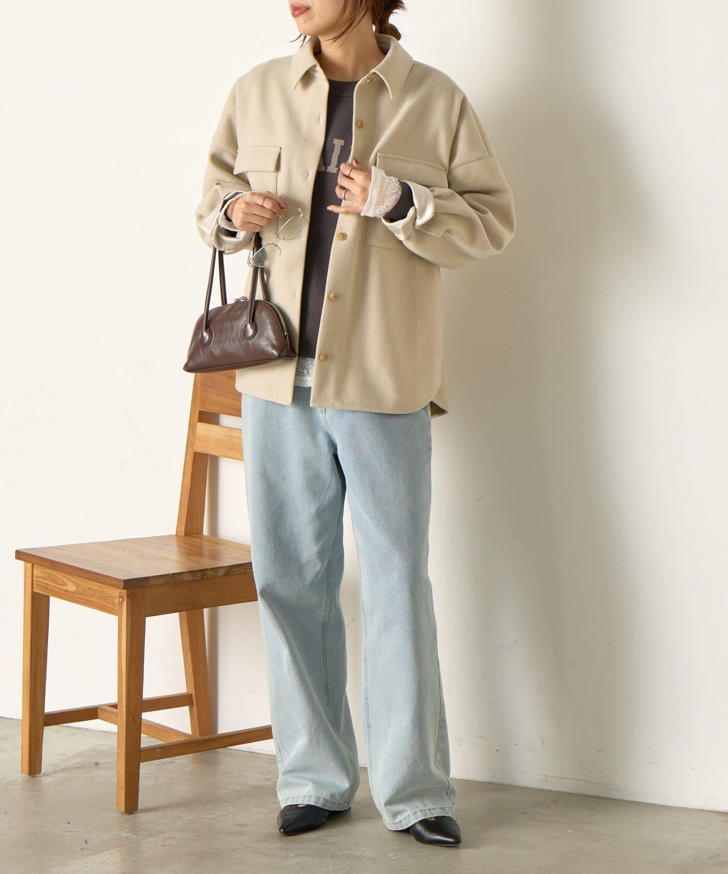 外套版型寬鬆,便於在裡面疊穿運動衫和針織衫。