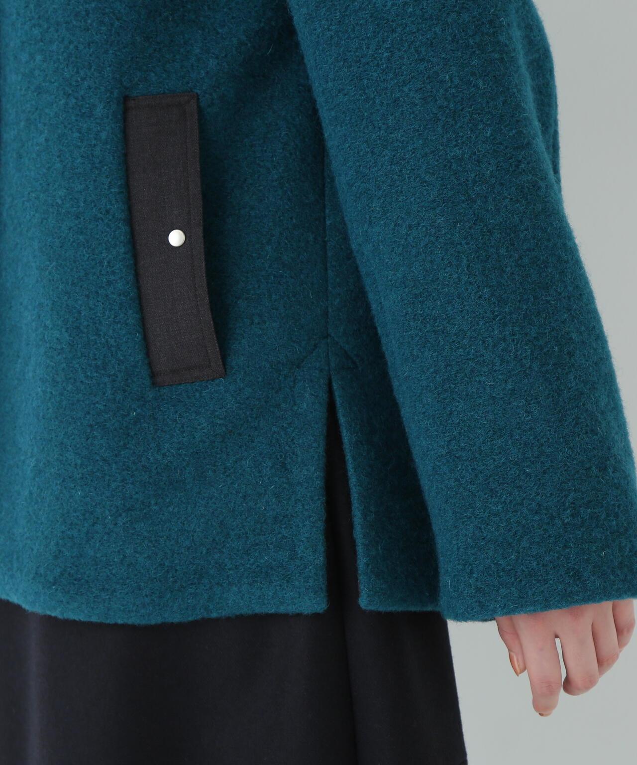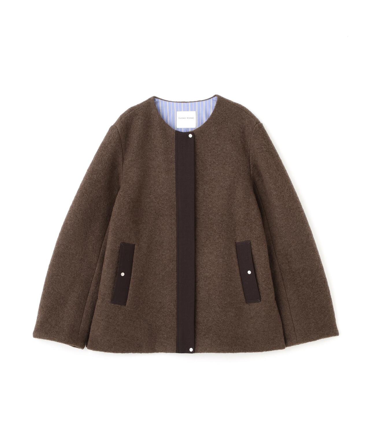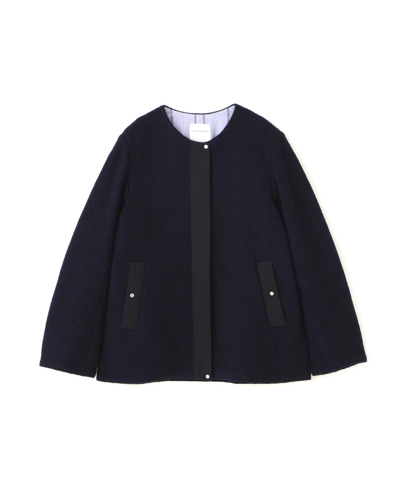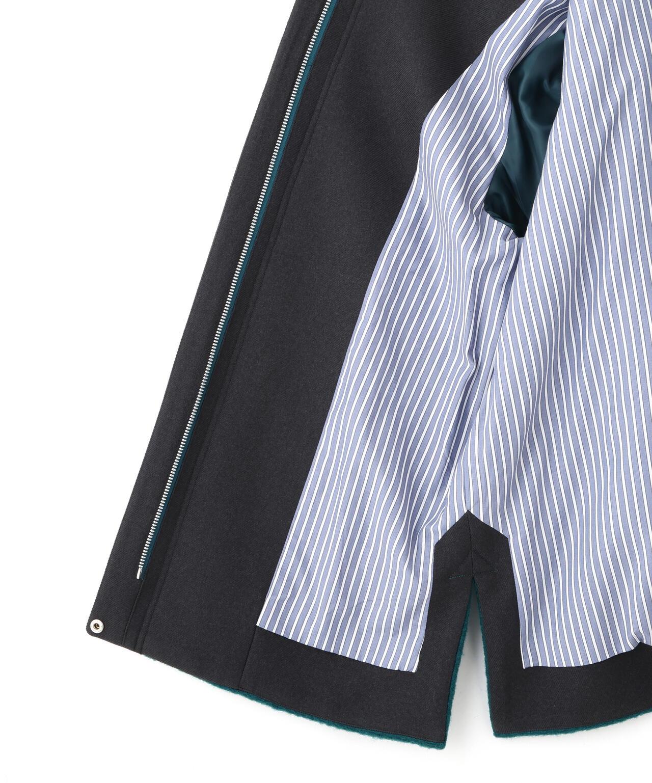 設計要點] 這款銀色夾克採用圓領設計。本季採用了前開式拉鍊設計。在前緣和口袋處使用獨立面料也是一大亮點。這種面料採用意大利開發的一種特殊製造方法,將纖維直接編織到面料中,而不是先製成紗線再進行編織。這種面料的另一個特點是輕盈,但又不失大氣和蓬鬆感。獨立面料由奢華的滌綸混紡羊毛紗布製成。外衣長度流暢,易於搭配各種廓形的下裝。
