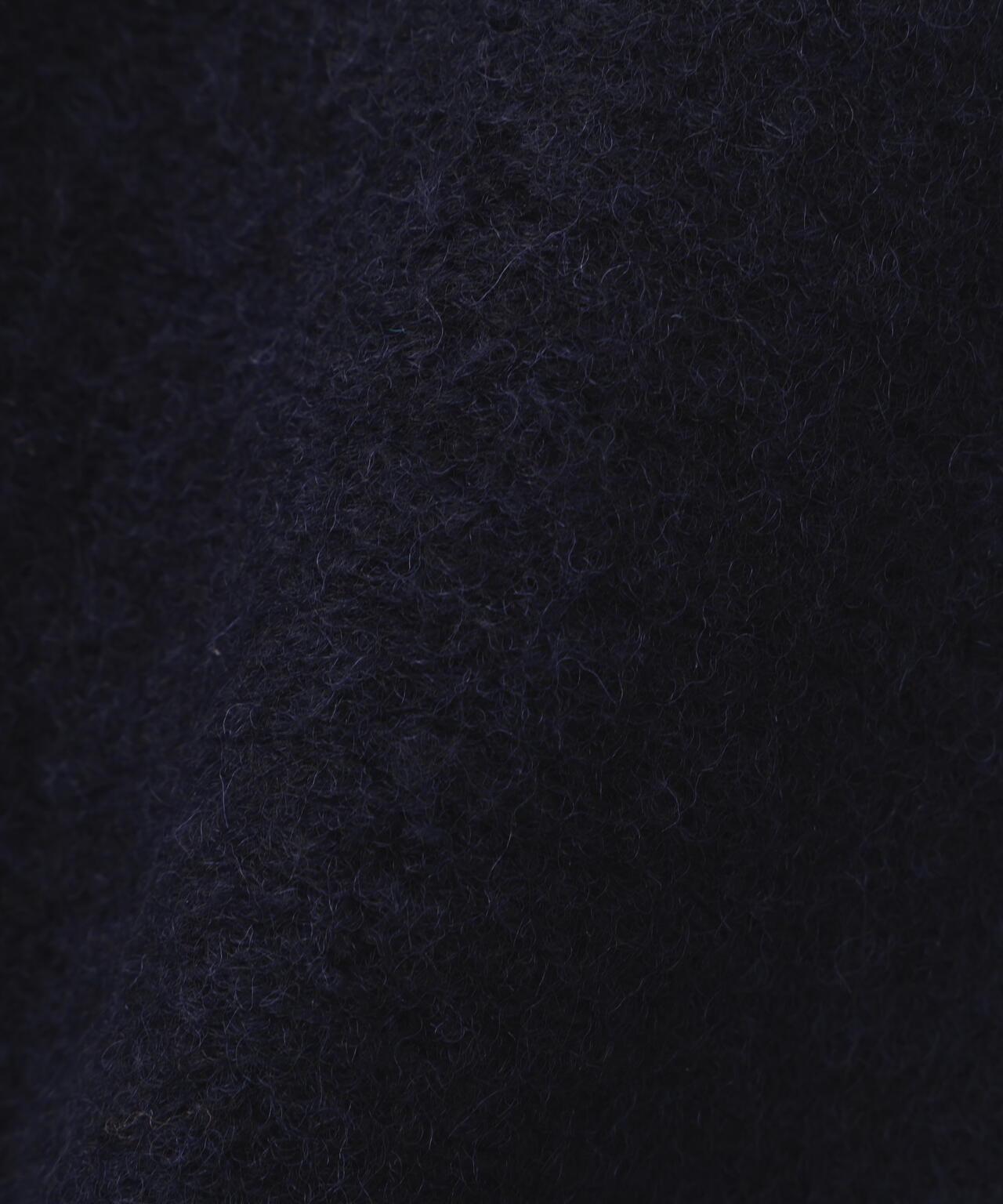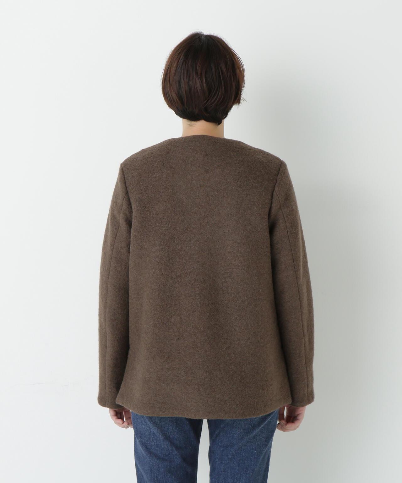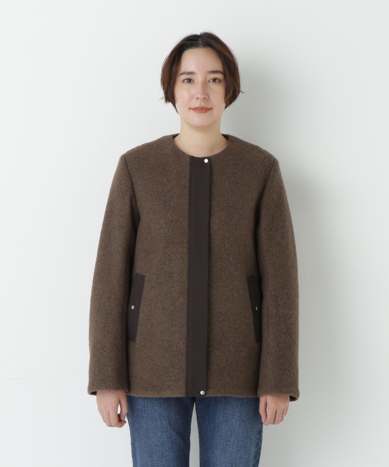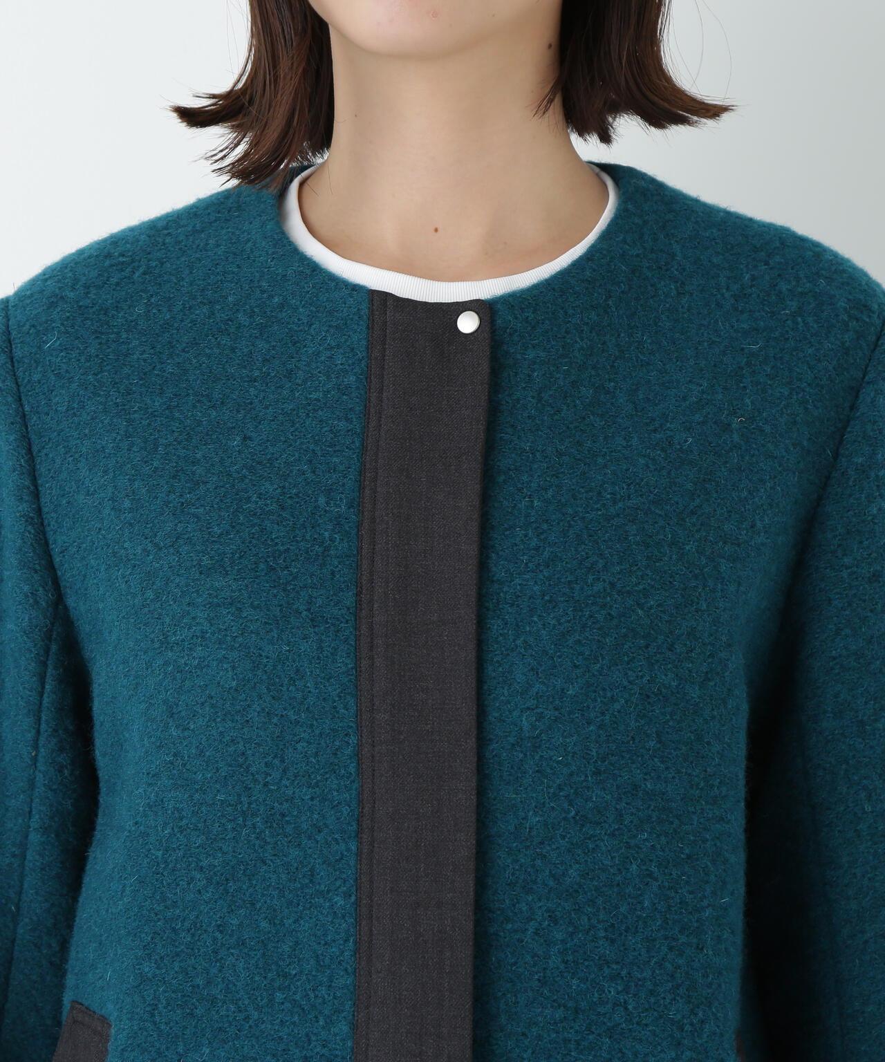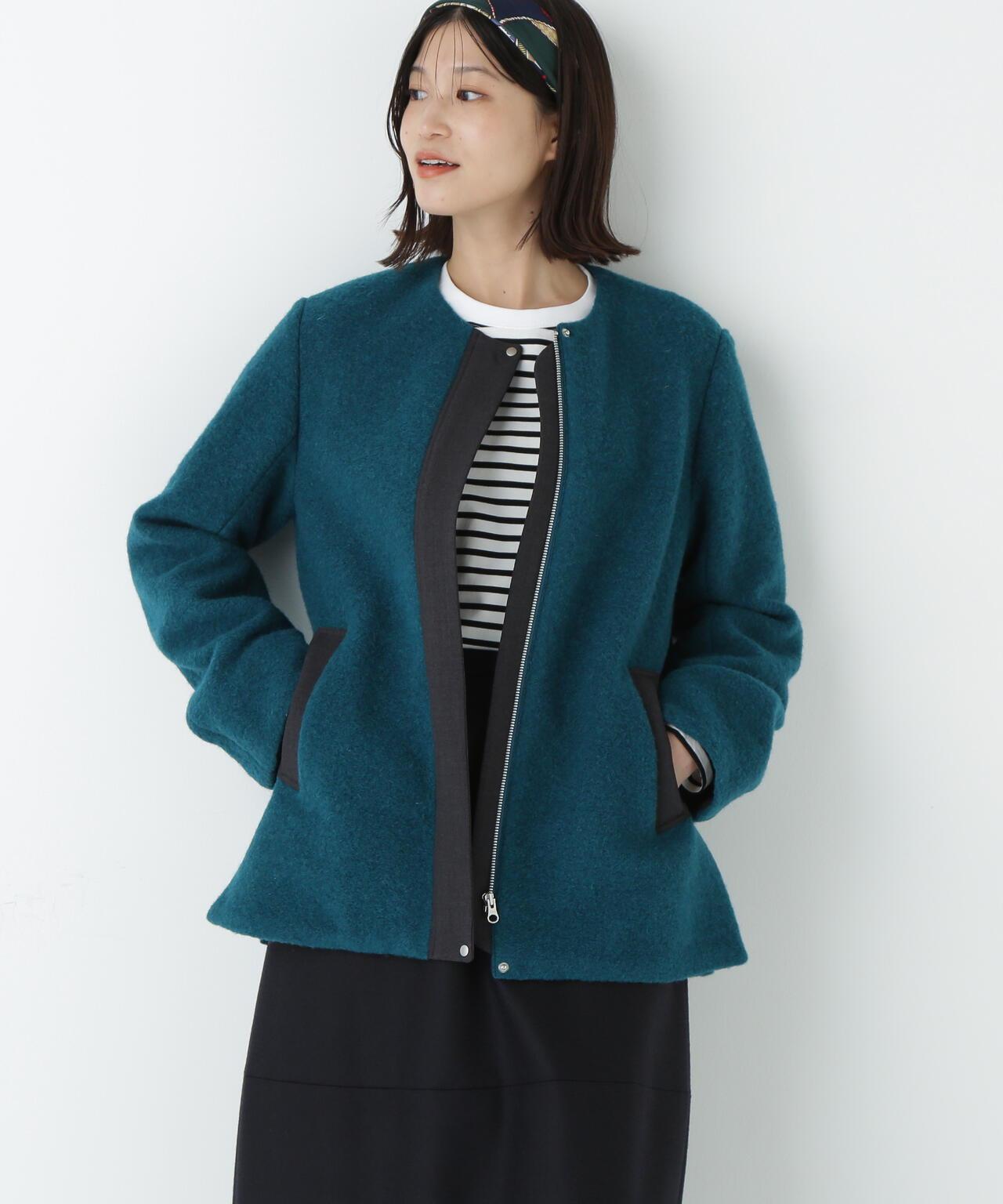 設計要點] 這款銀色夾克採用圓領設計。本季採用了前開式拉鍊設計。在前緣和口袋處使用獨立面料也是一大亮點。這種面料採用意大利開發的一種特殊製造方法,將纖維直接編織到面料中,而不是先製成紗線再進行編織。這種面料的另一個特點是輕盈,但又不失大氣和蓬鬆感。獨立面料由奢華的滌綸混紡羊毛紗布製成。外衣長度流暢,易於搭配各種廓形的下裝。