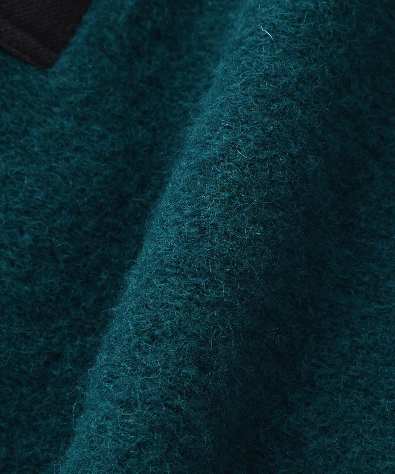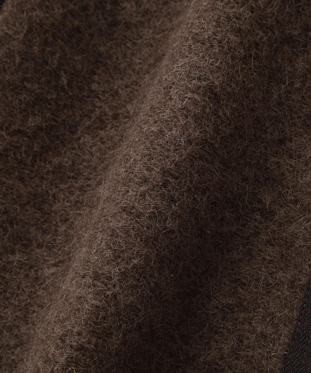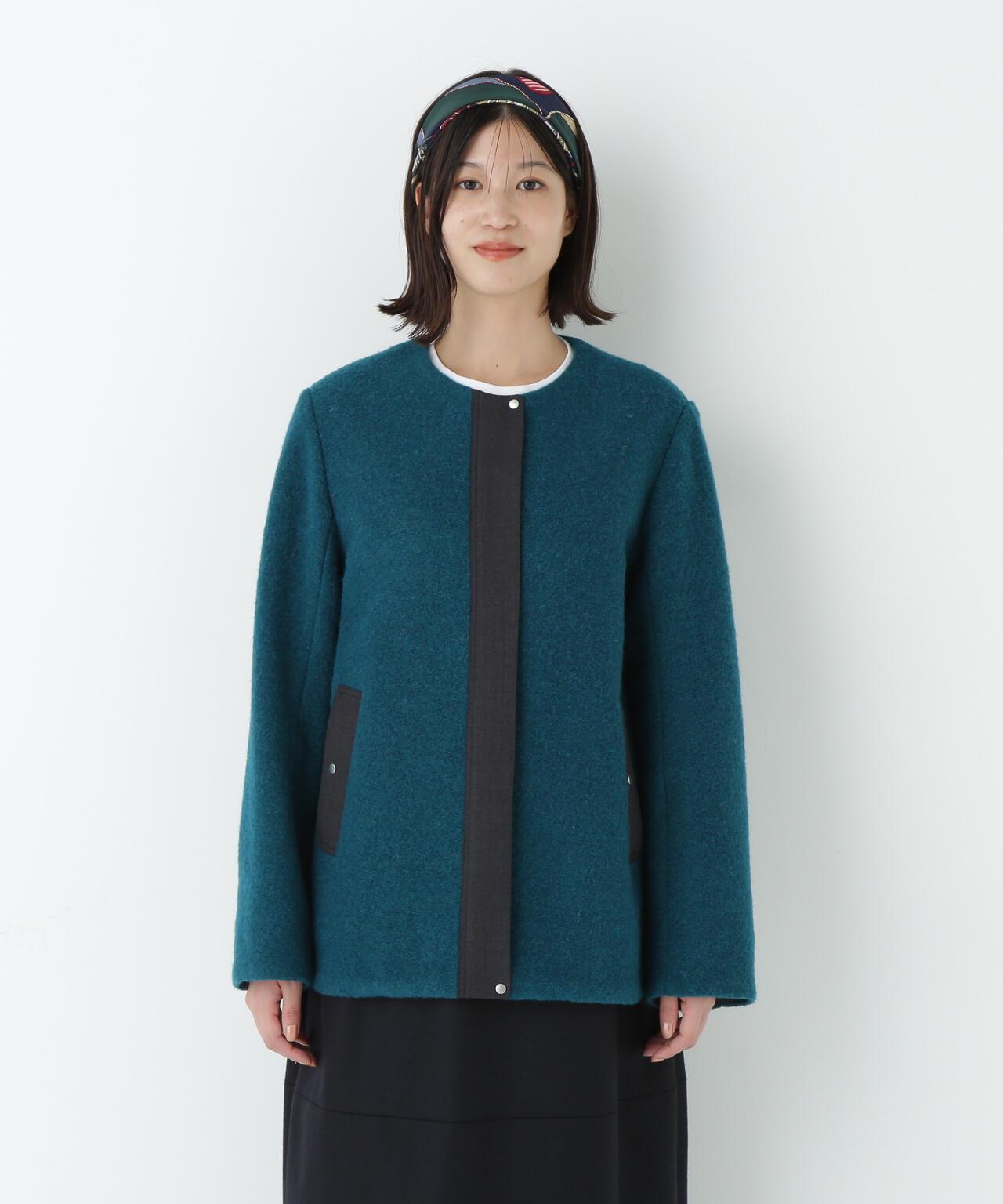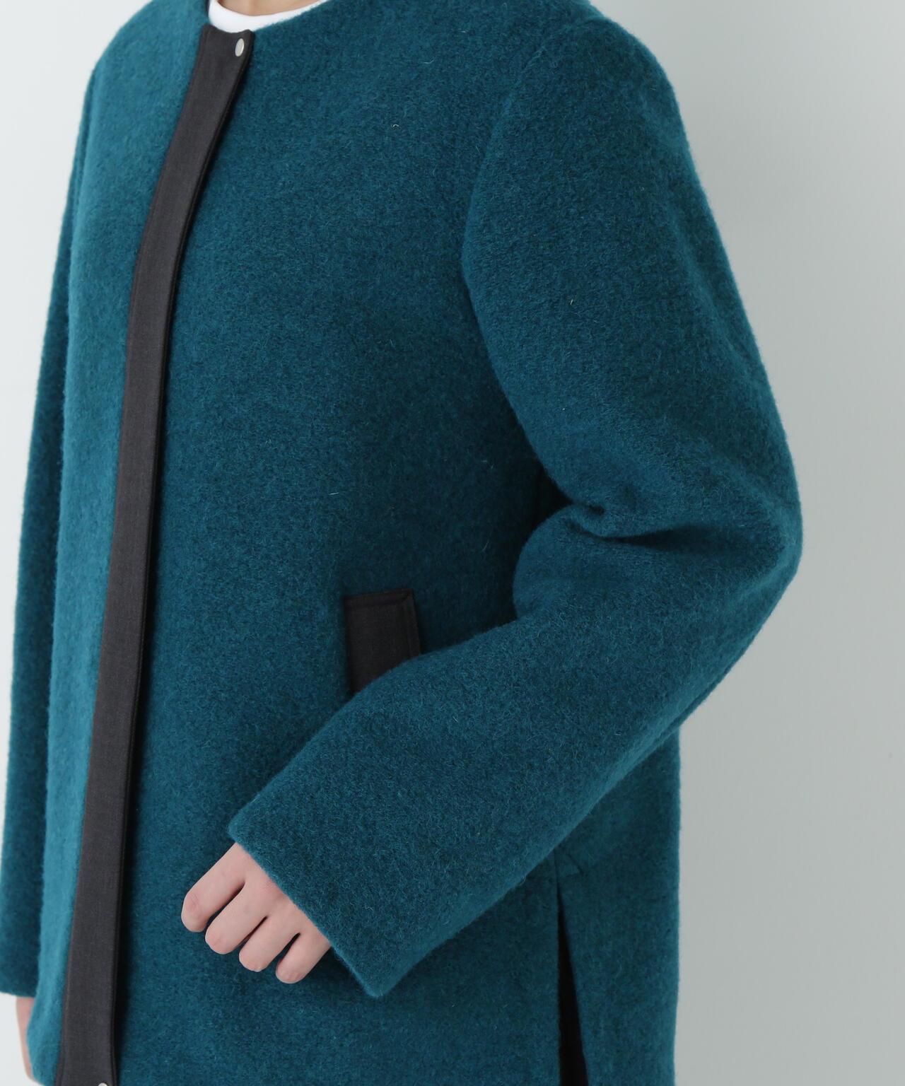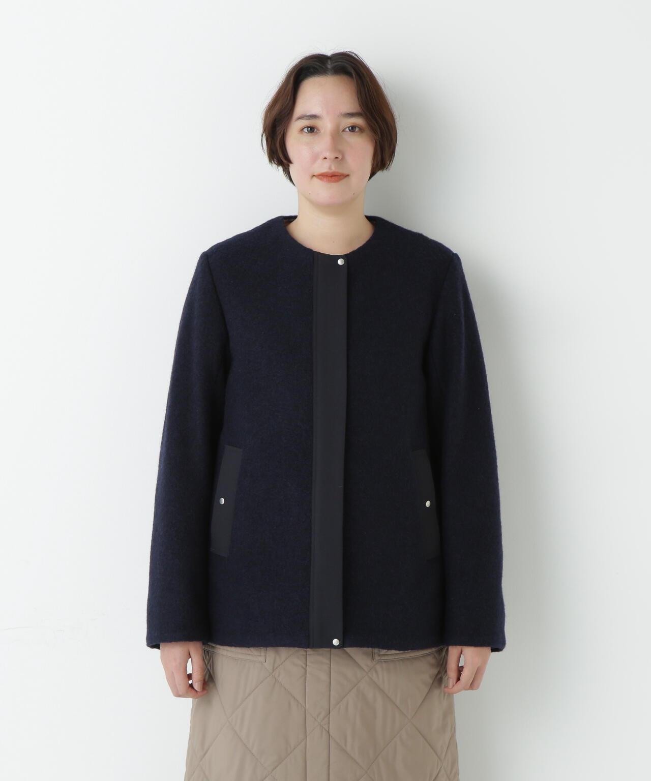 設計要點] 這款銀色夾克採用圓領設計。本季採用了前開式拉鍊設計。在前緣和口袋處使用獨立面料也是一大亮點。這種面料採用意大利開發的一種特殊製造方法,將纖維直接編織到面料中,而不是先製成紗線再進行編織。這種面料的另一個特點是輕盈,但又不失大氣和蓬鬆感。獨立面料由奢華的滌綸混紡羊毛紗布製成。外衣長度流暢,易於搭配各種廓形的下裝。