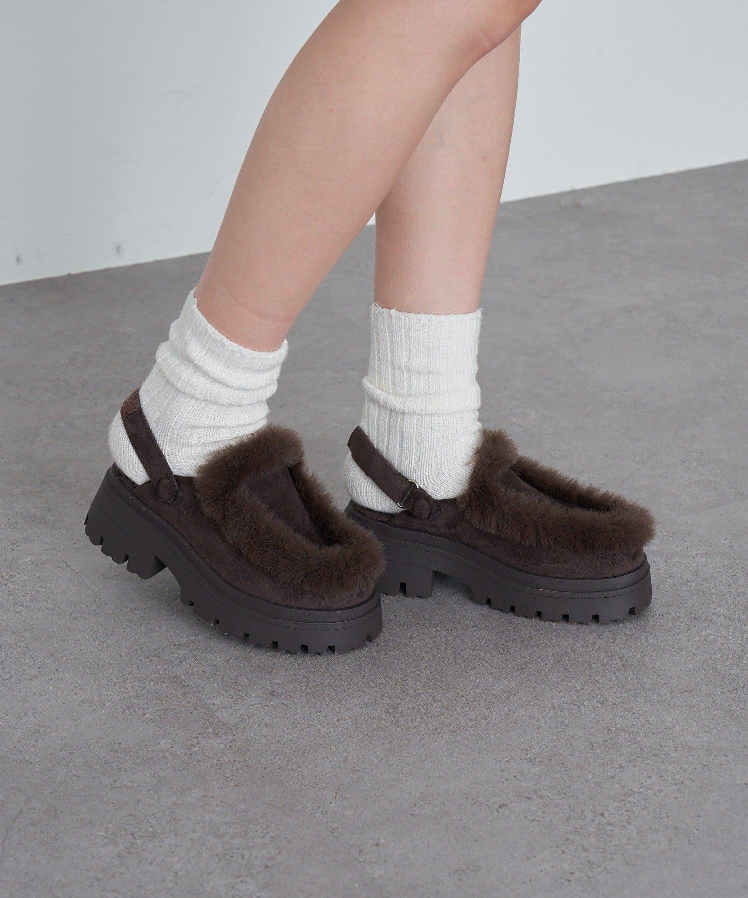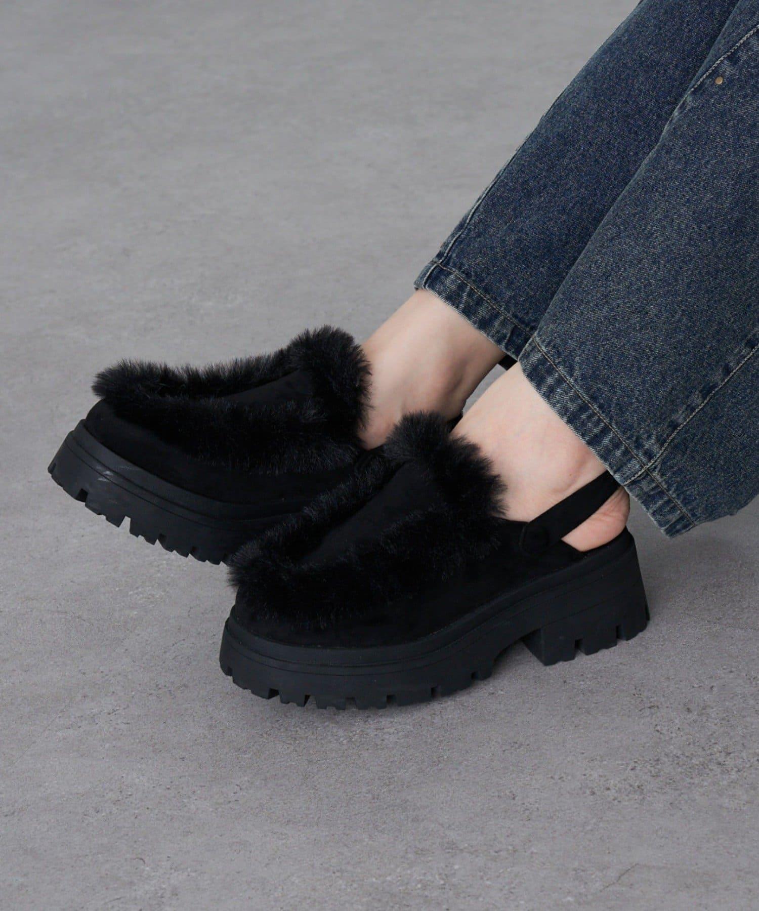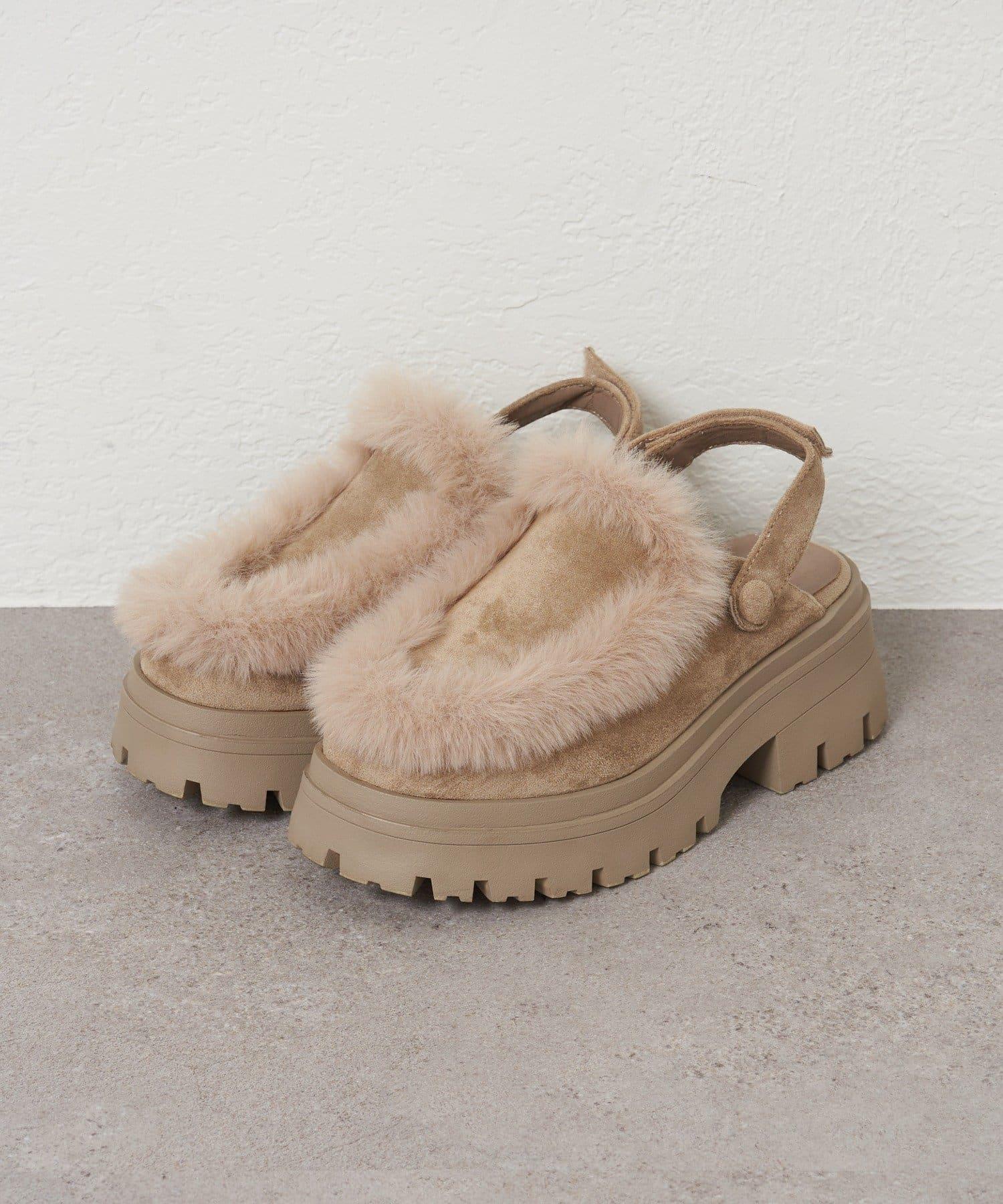 這雙鞋由絨面革和皮草製成,具有秋冬的感覺。