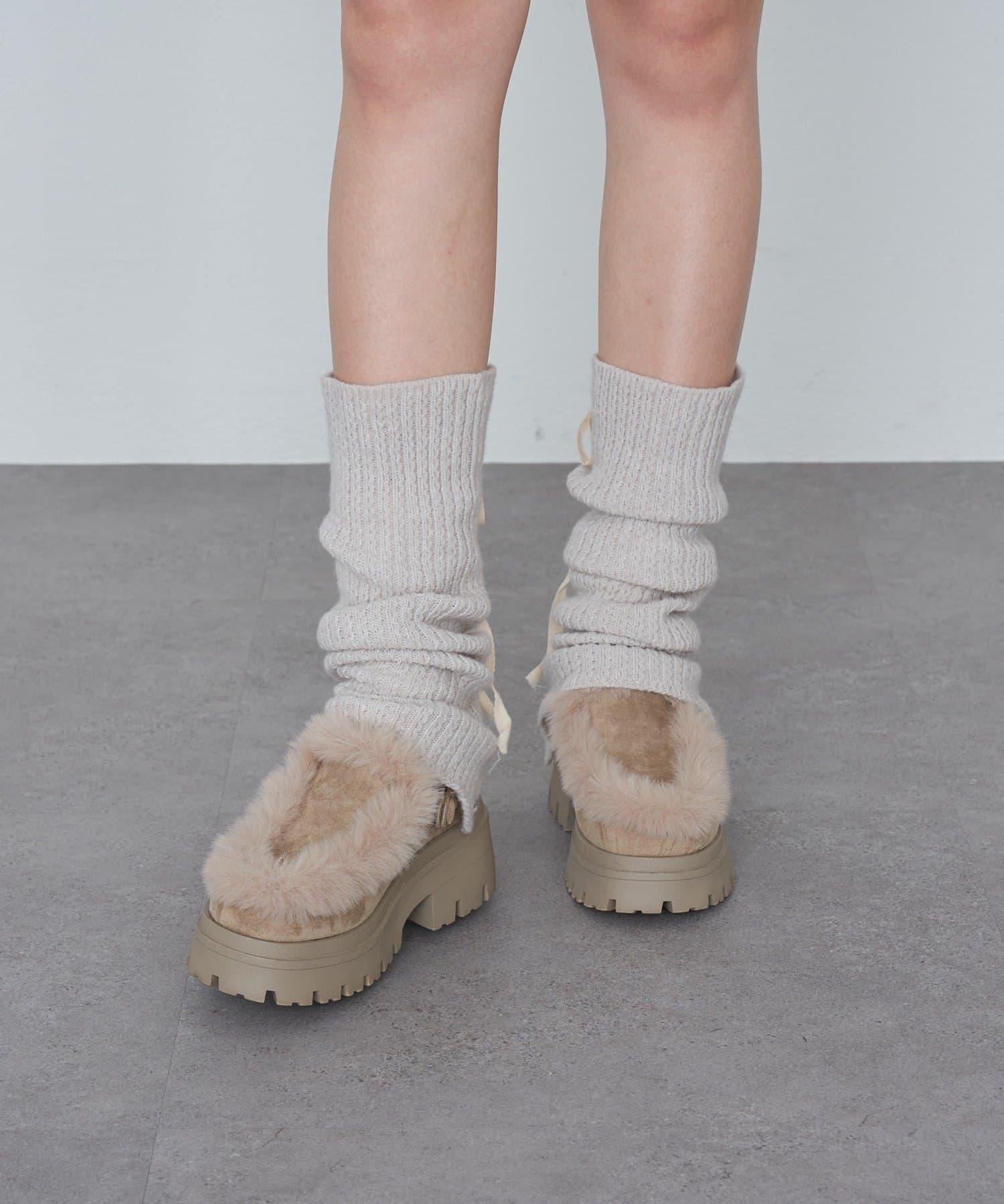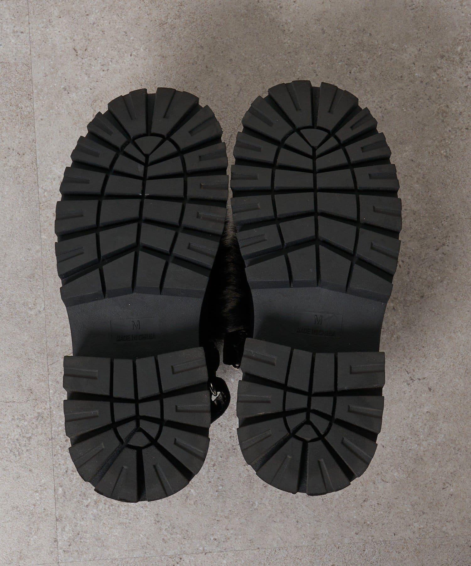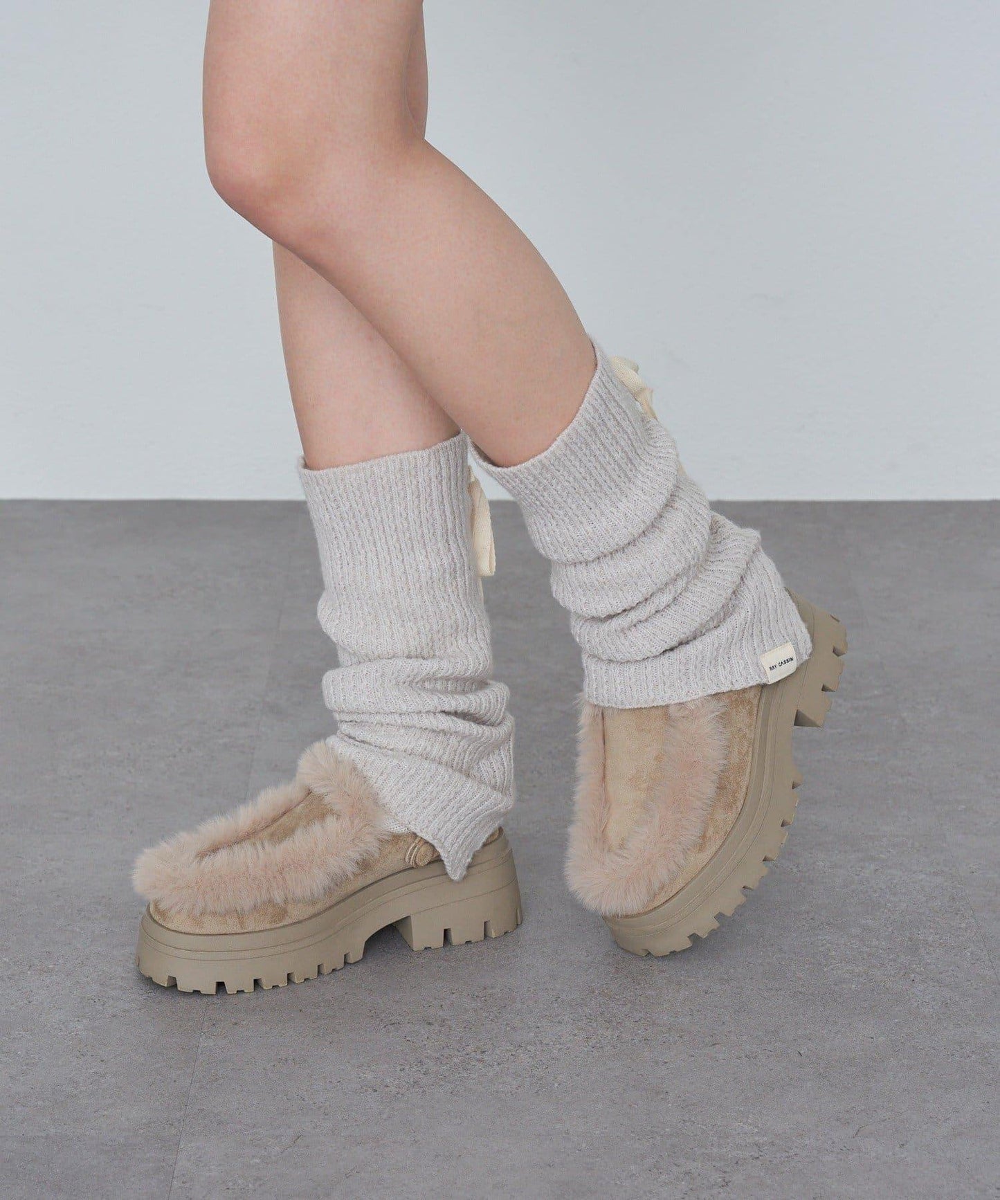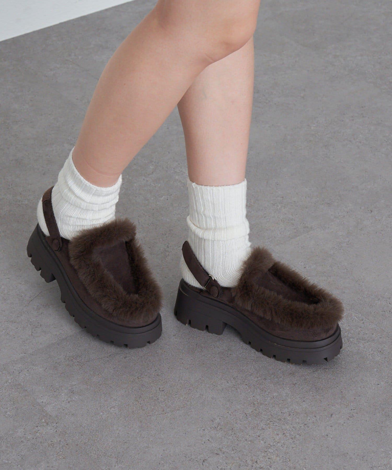 這雙鞋由絨面革和皮草製成,具有秋冬的感覺。