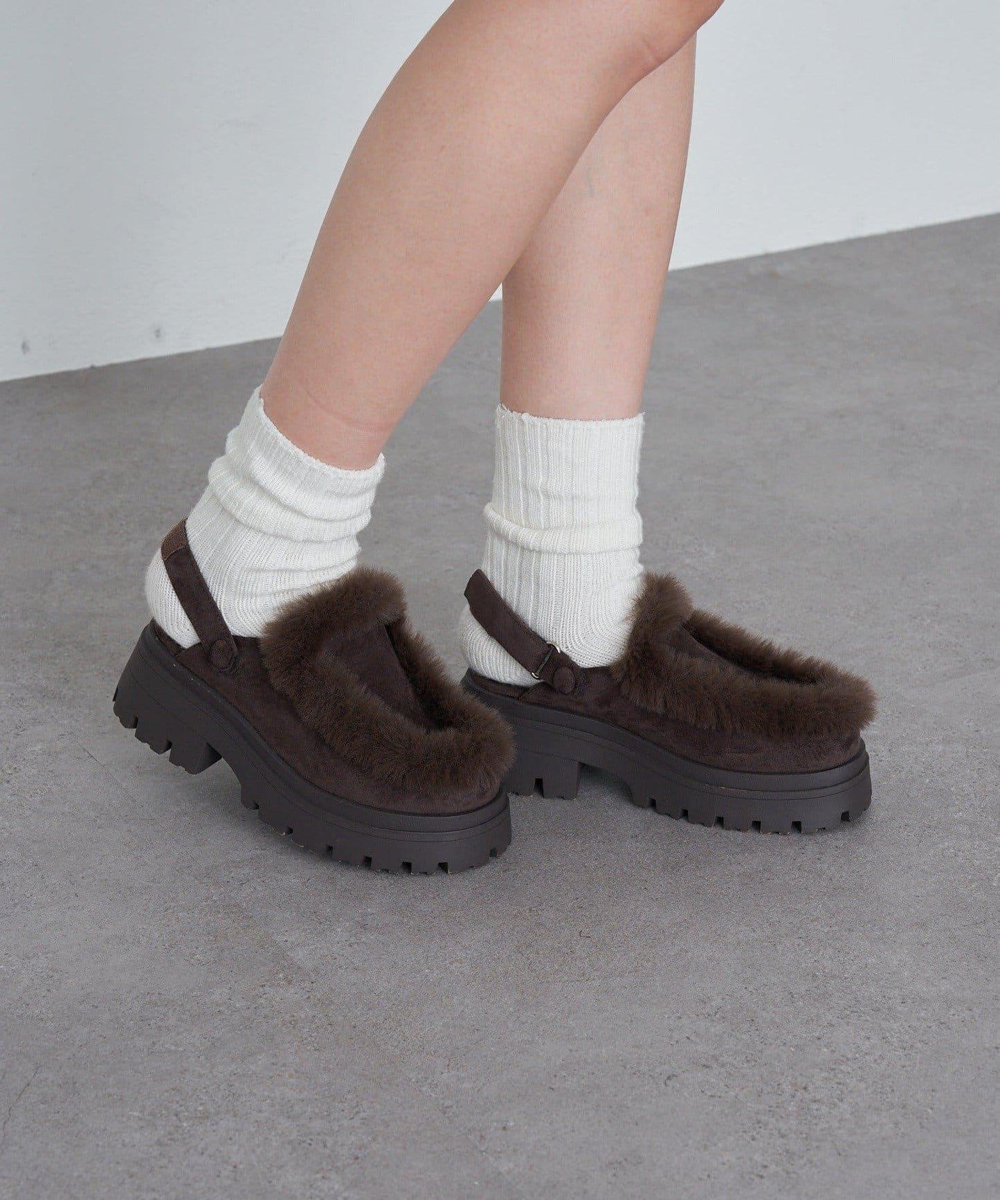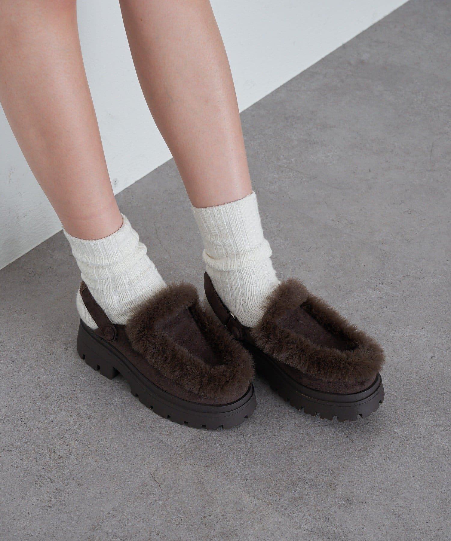 這雙鞋由麂皮絨和皮草製成,具有秋冬的感覺,但因為是便鞋,所以是一雙現在就可以穿的鞋。