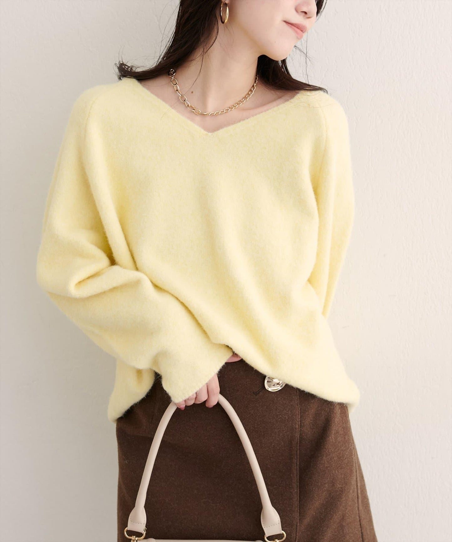 您可以用 V 字領美美地展示您的露肩曲線,也可以用圓領營造優雅的印象,根據當天的心情和造型享受變化的樂趣。