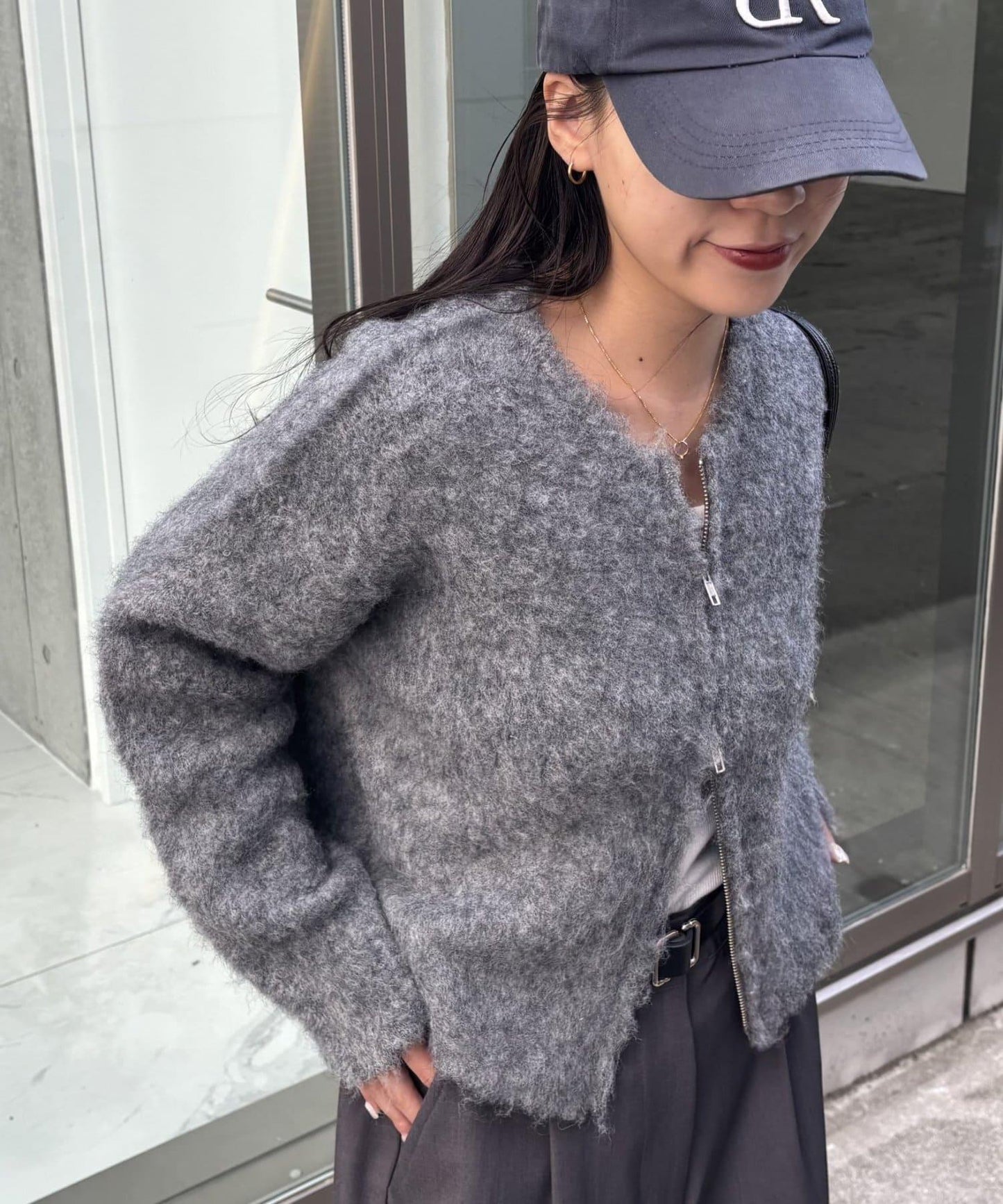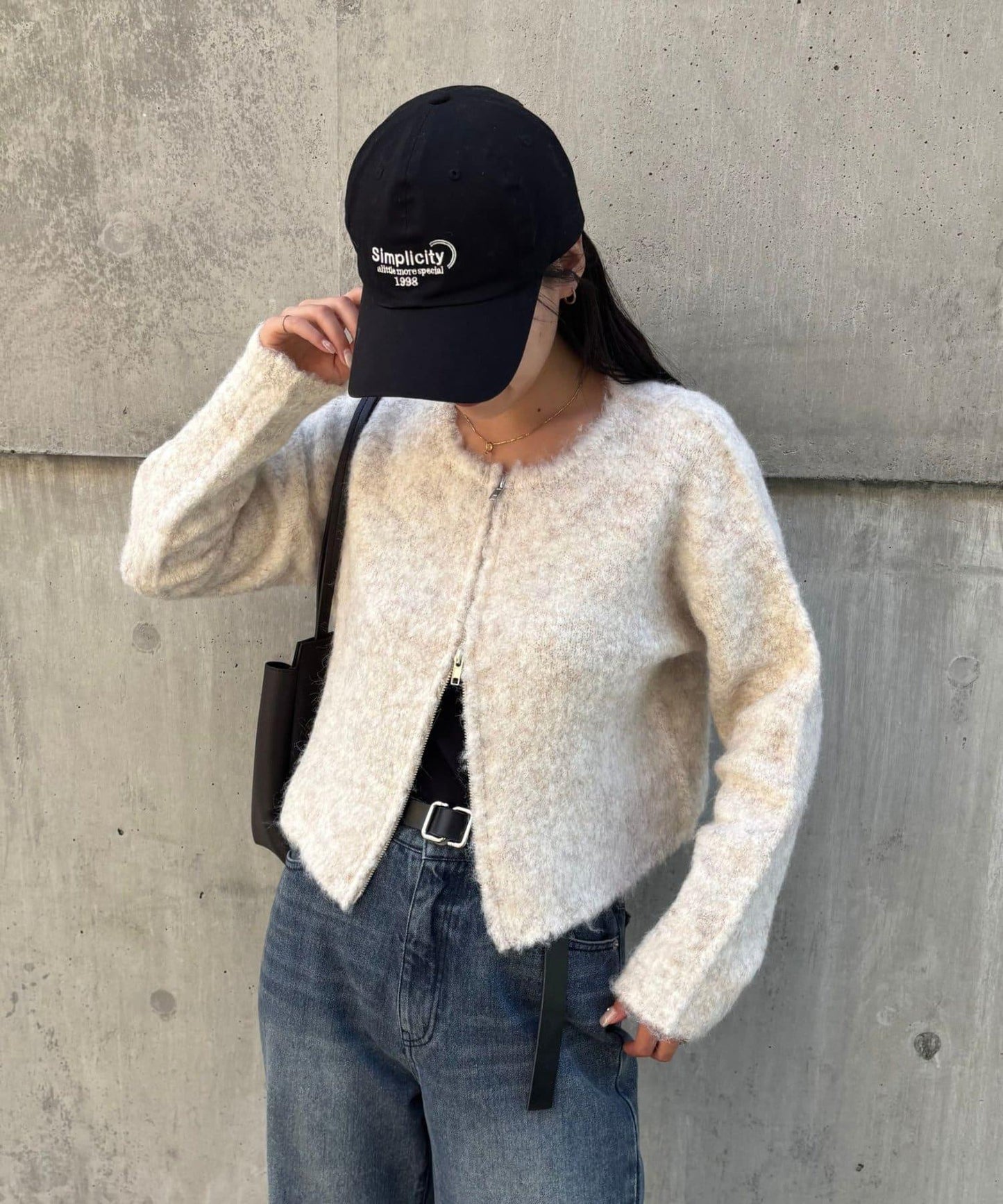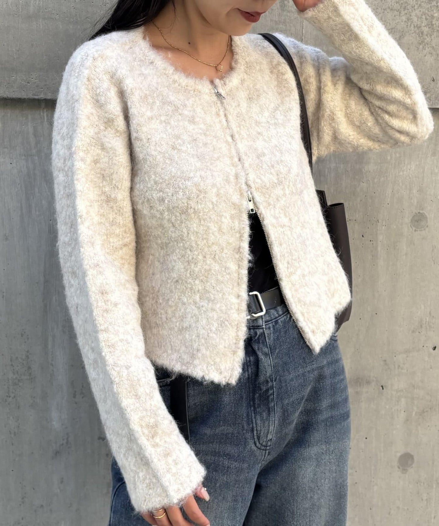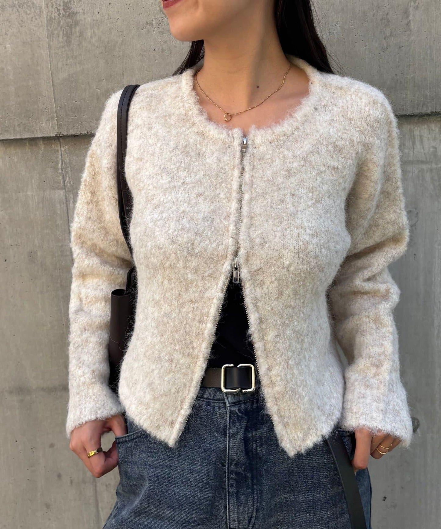 W型拉鍊針織開衫,單穿也很好看。