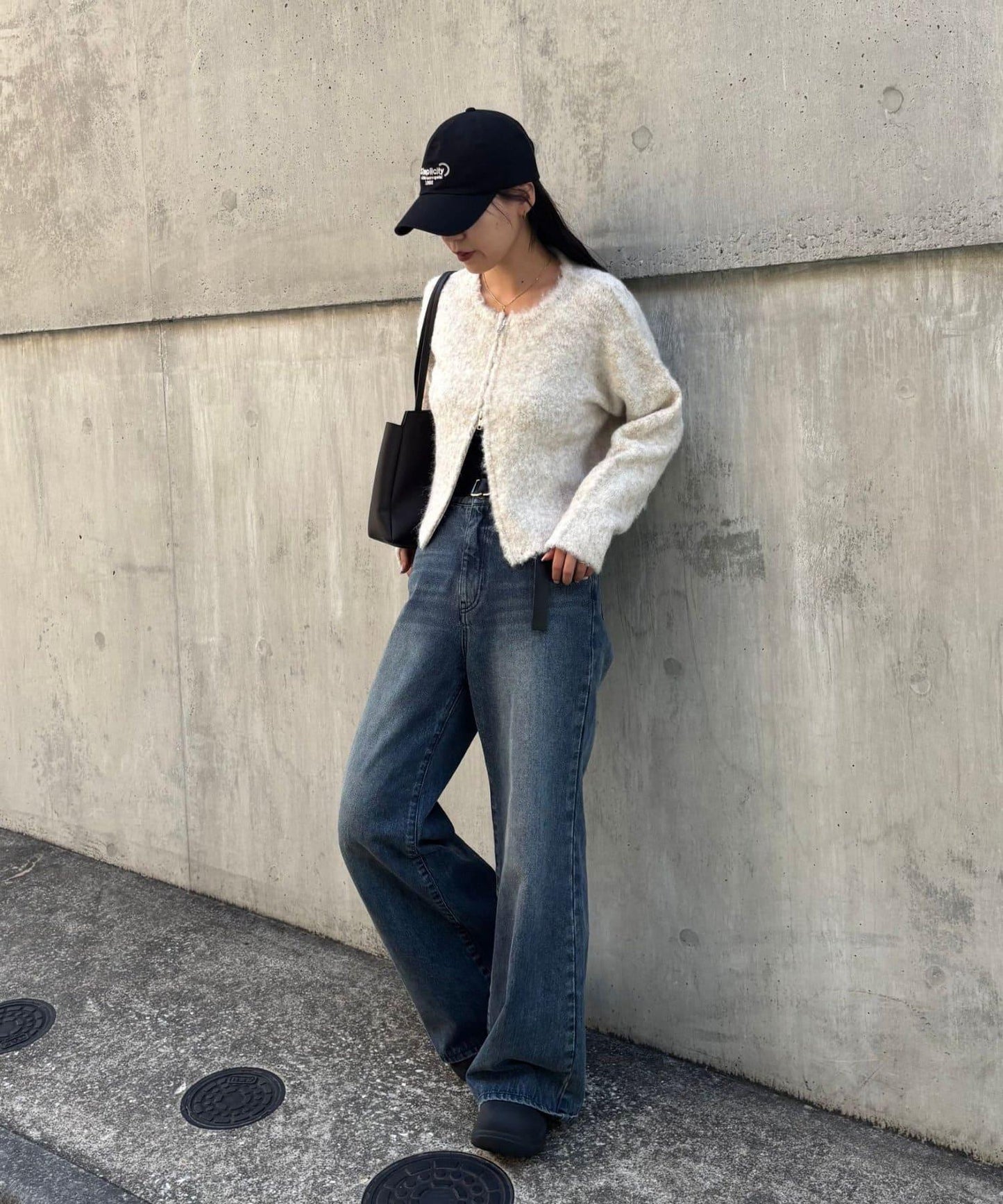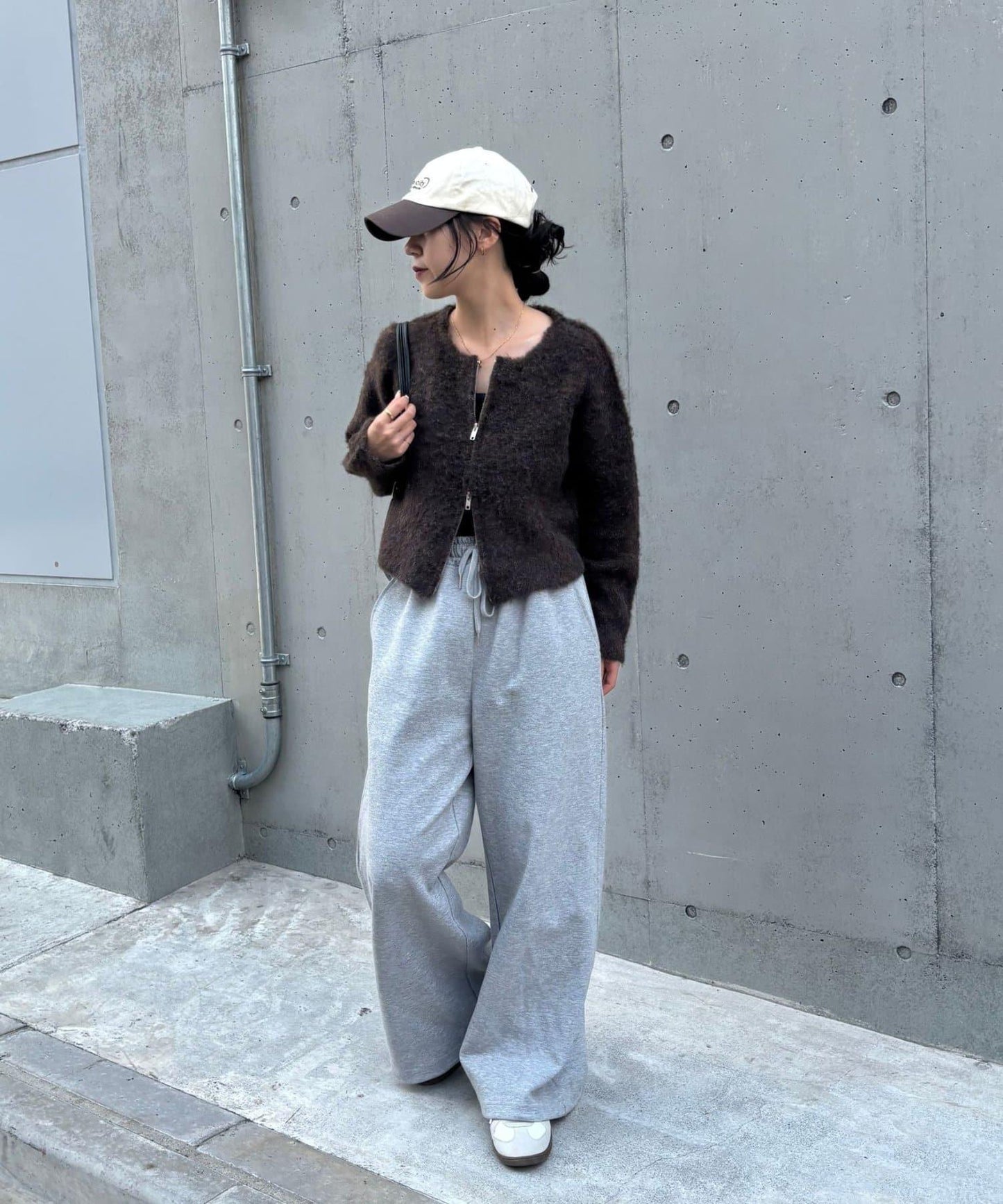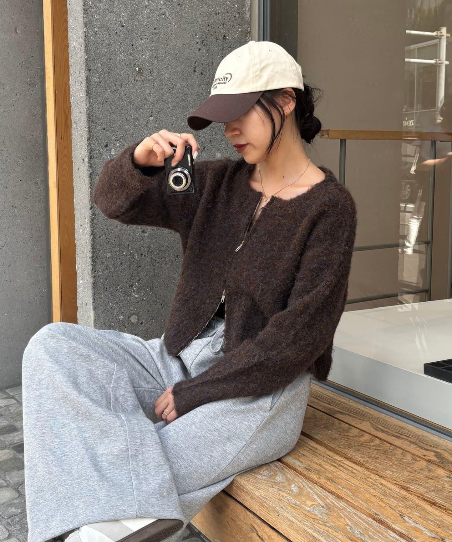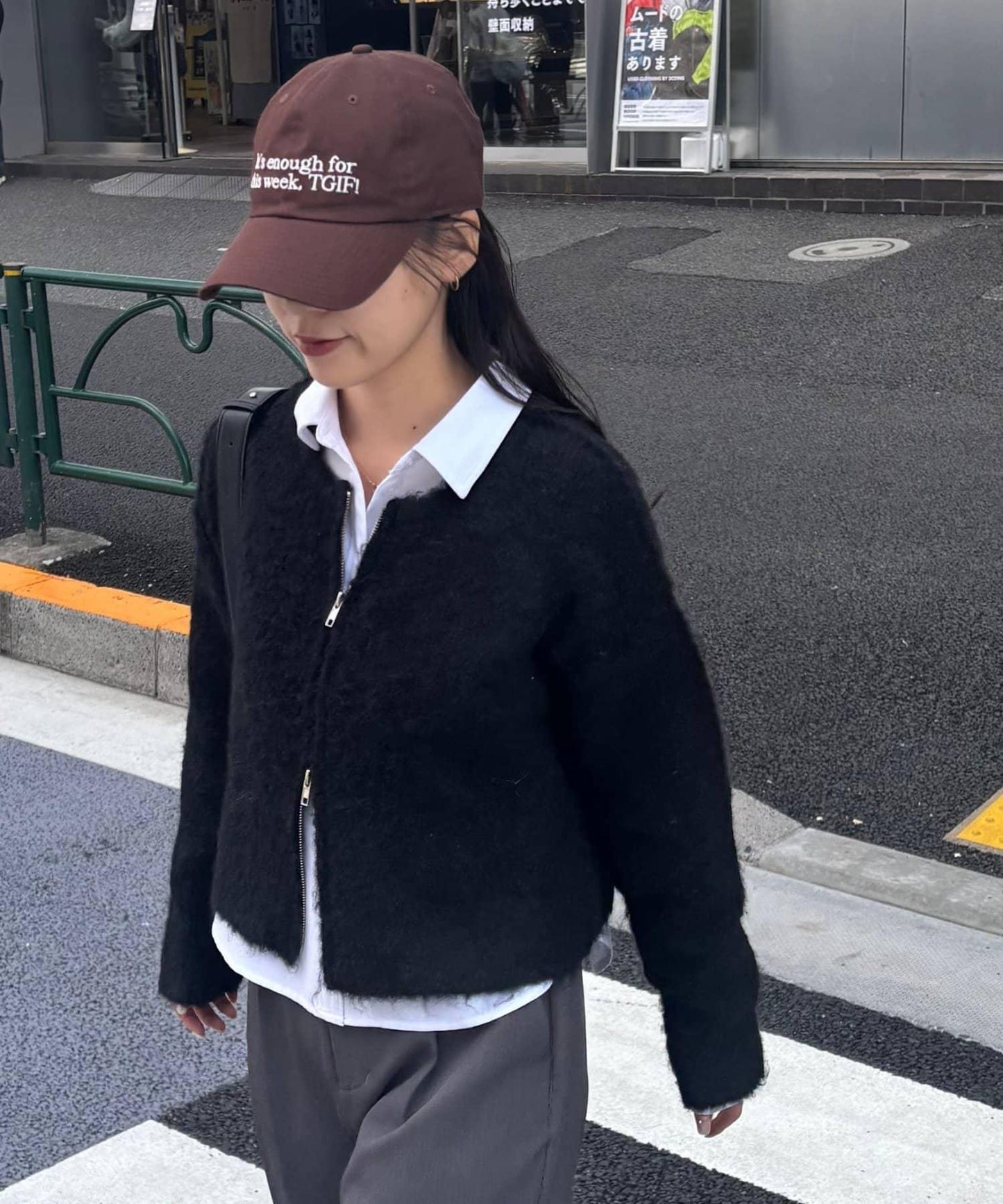 W型拉鍊針織開衫,單穿也很好看。