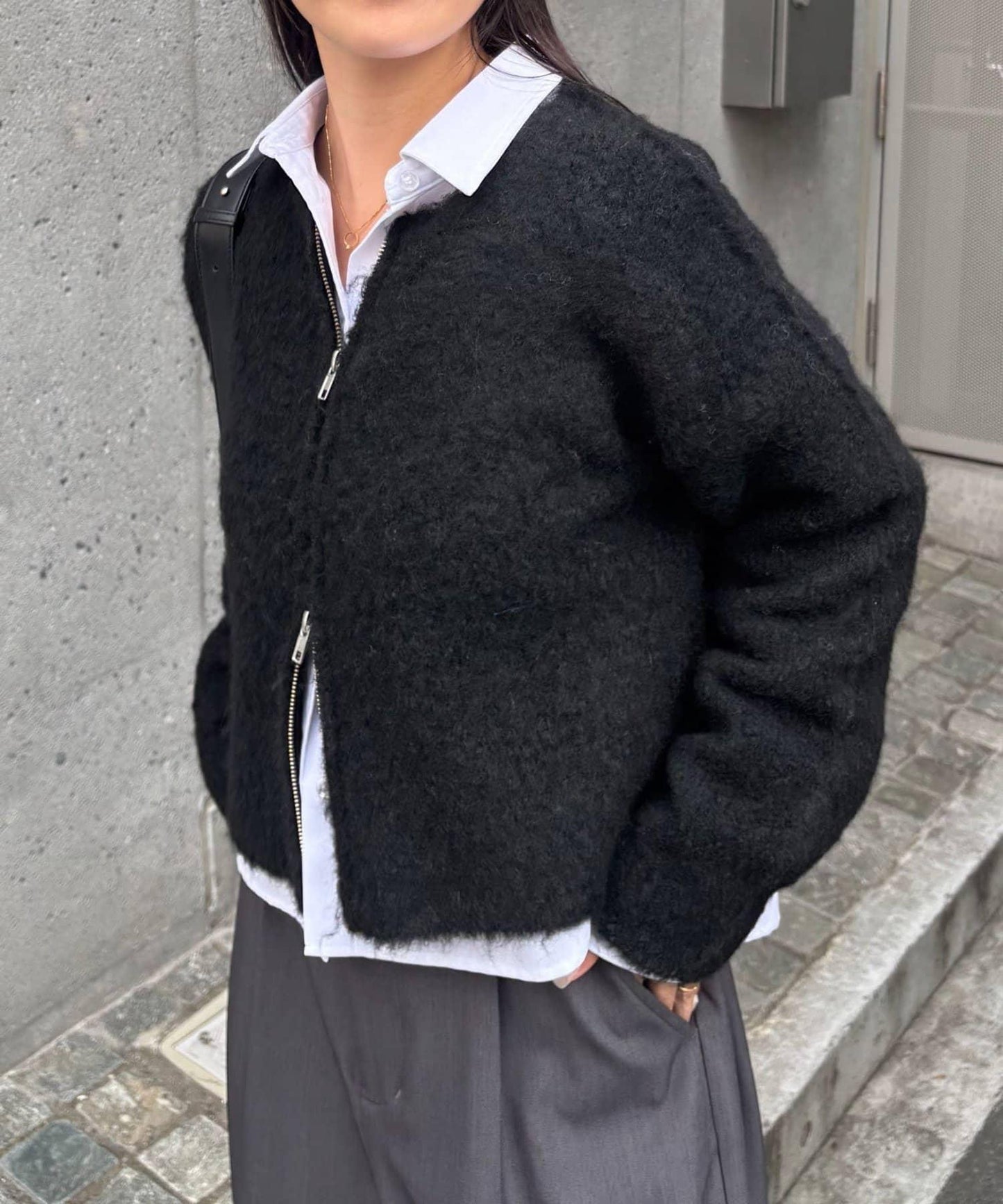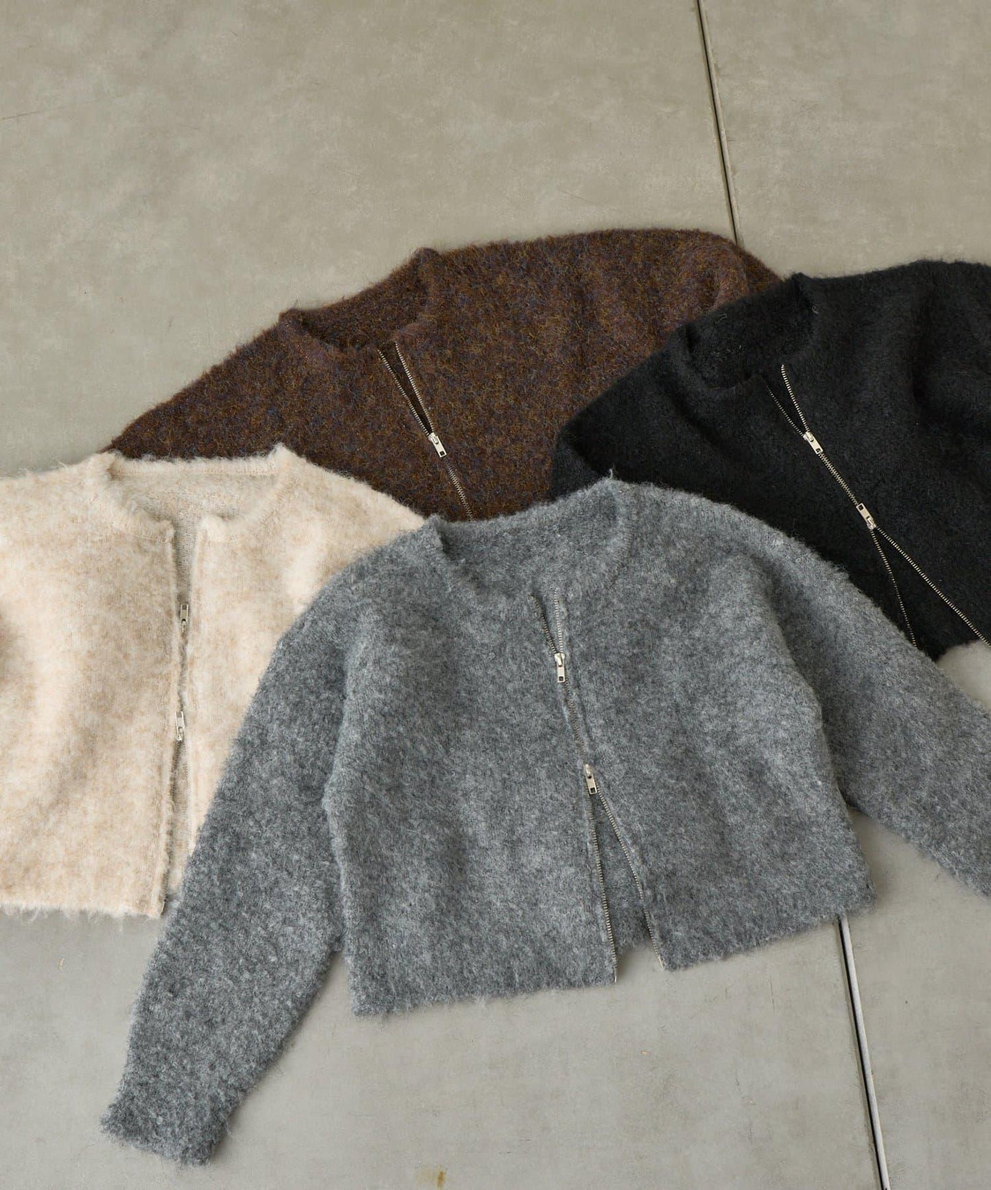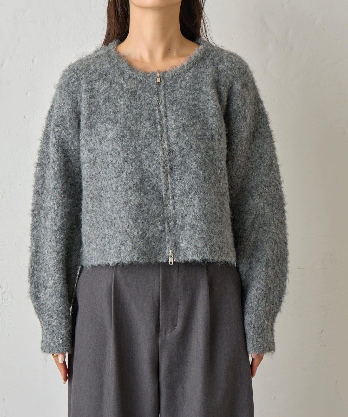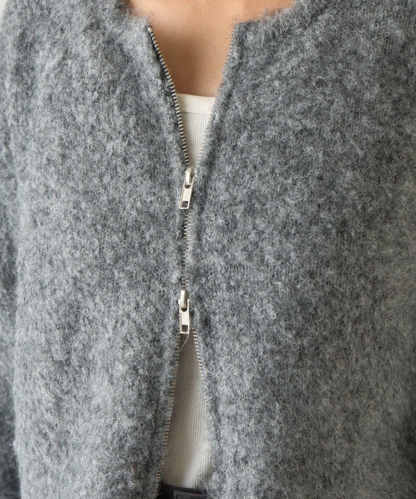 羊毛混紡圈圈紗雙拉鍊開衫