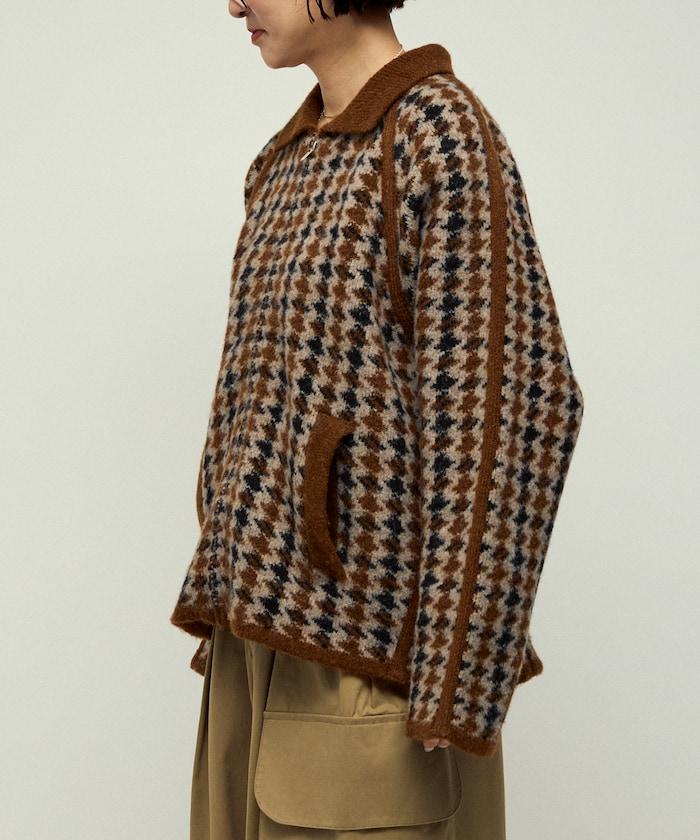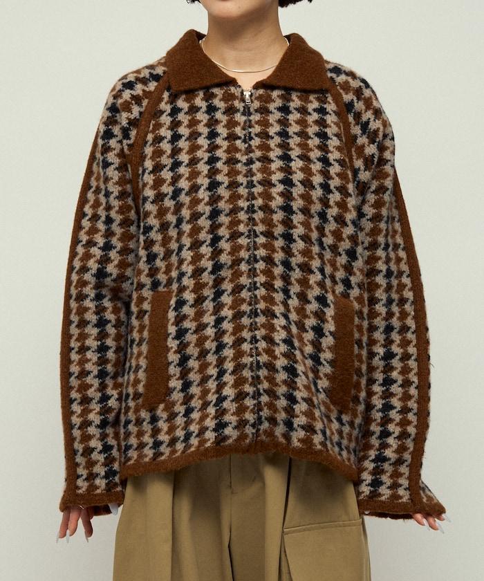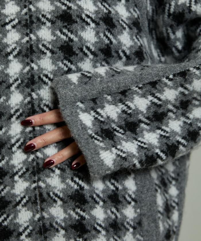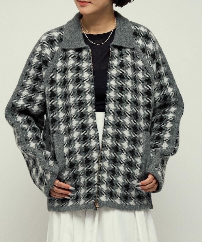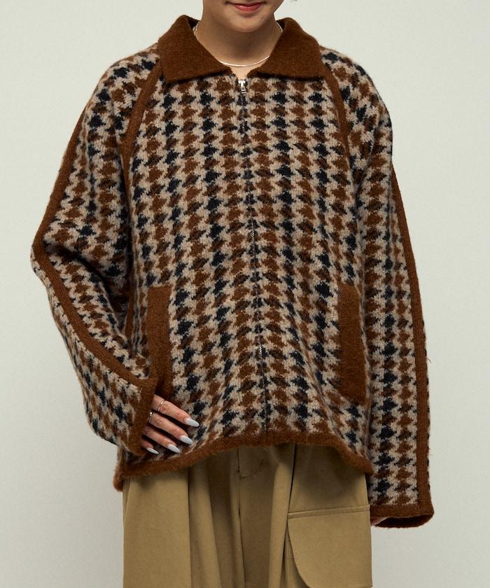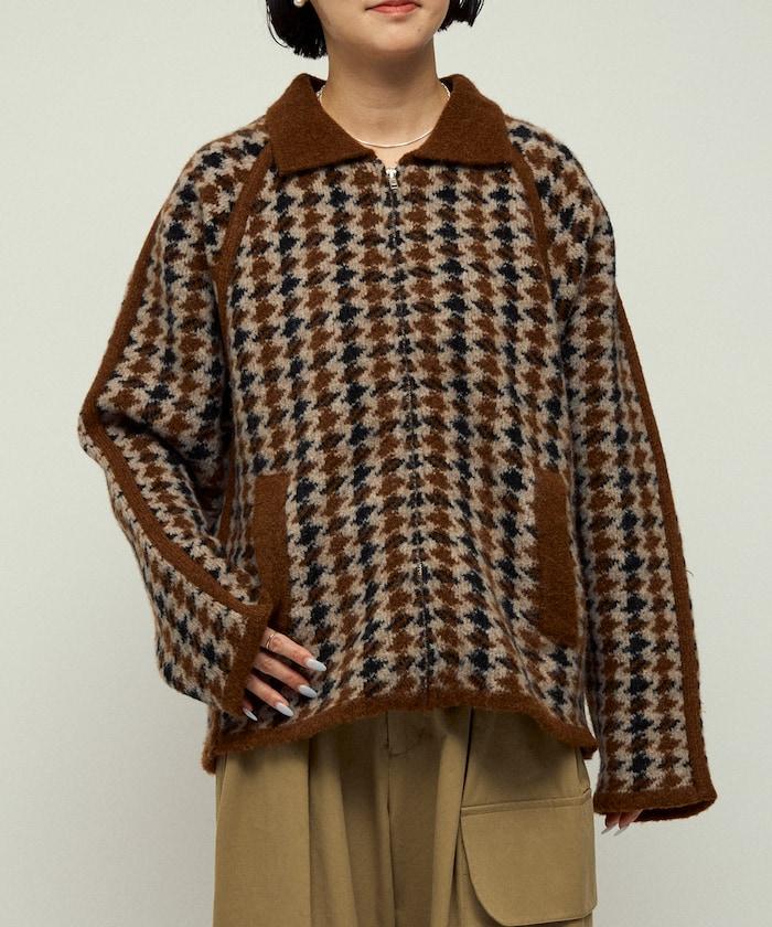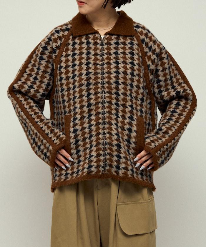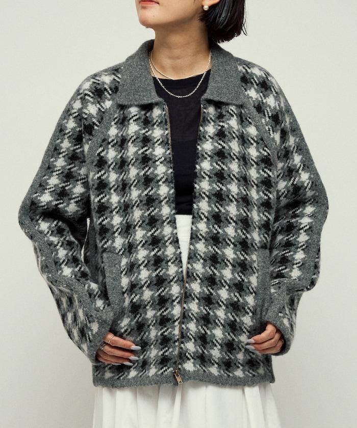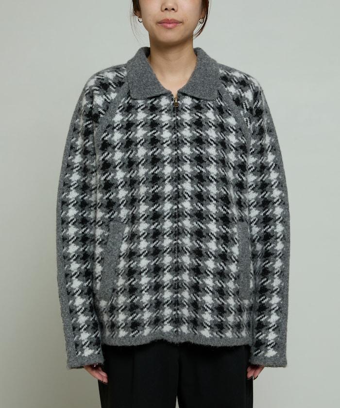 預約商品羊毛混紡格紋拉鍊針織夾克