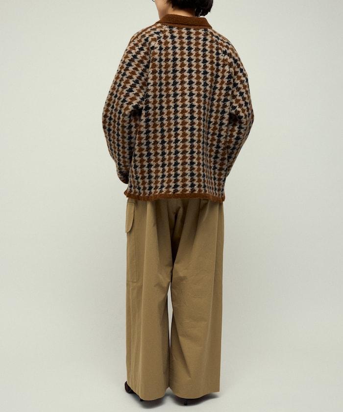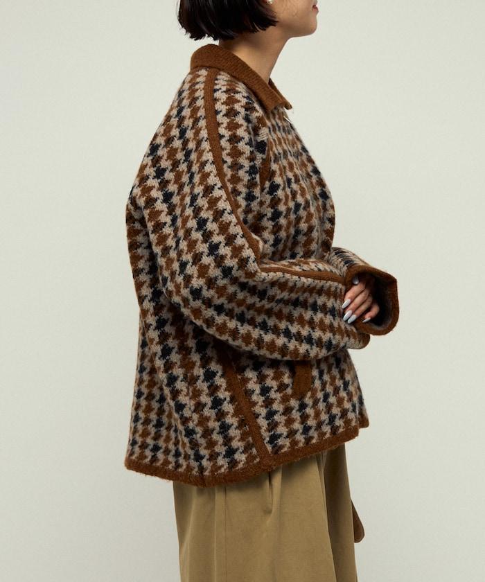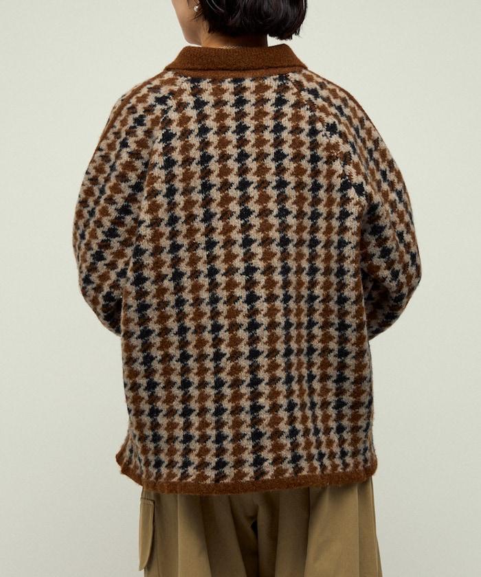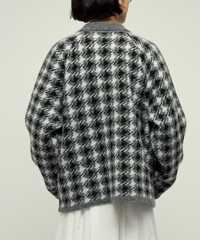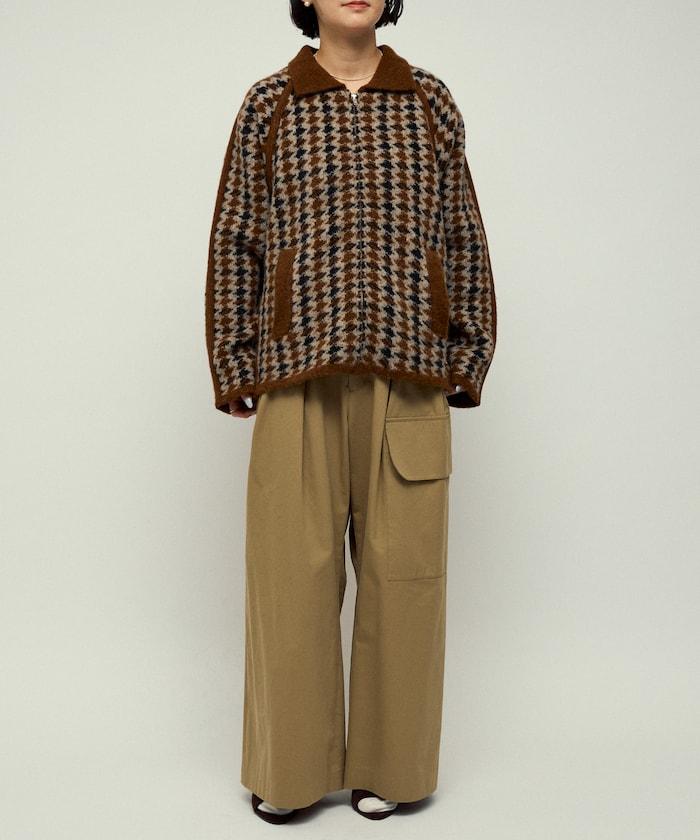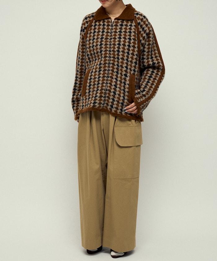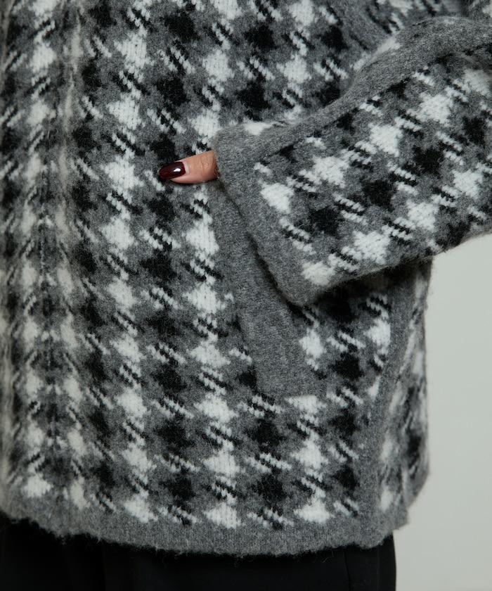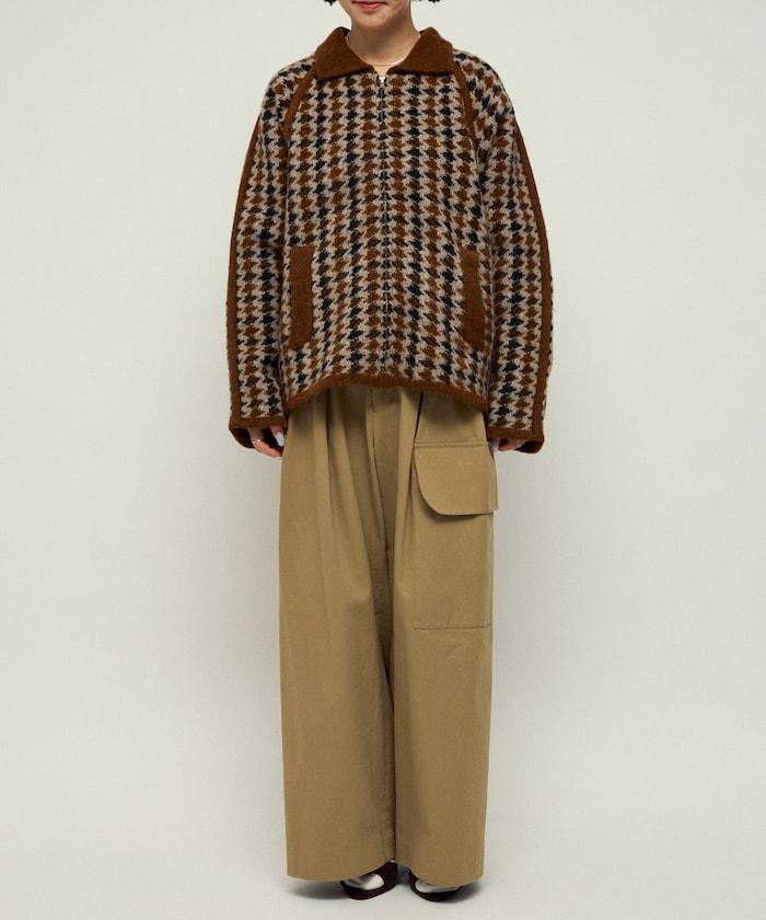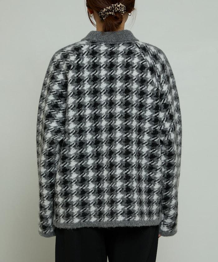 預約商品羊毛混紡格紋拉鍊針織夾克