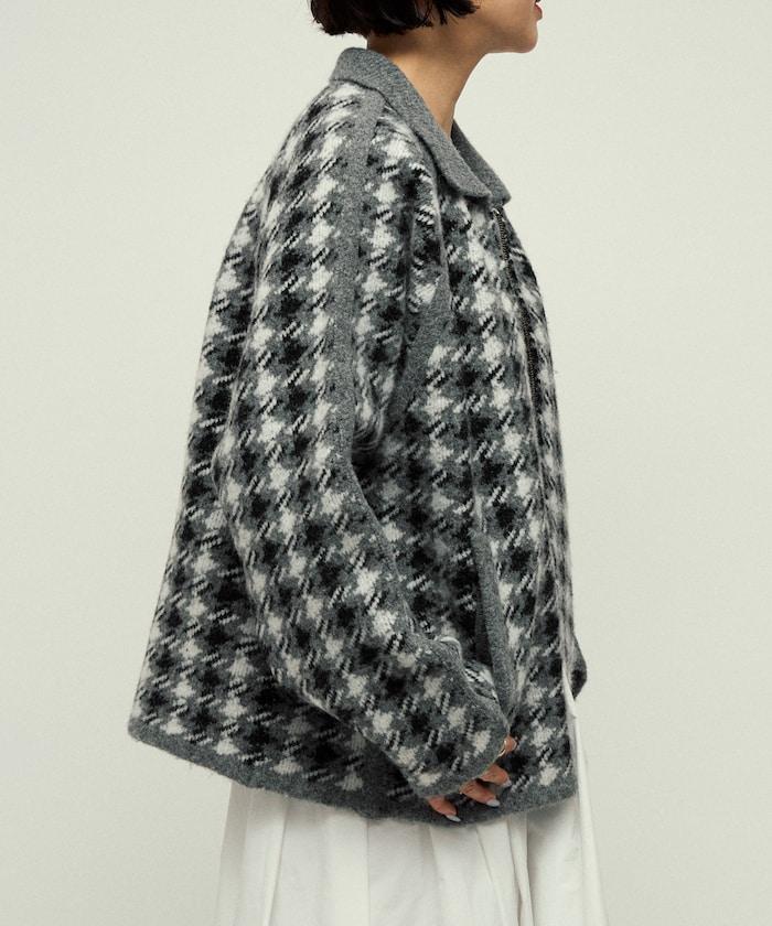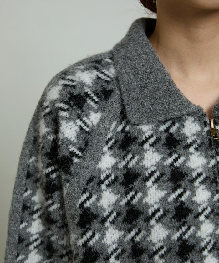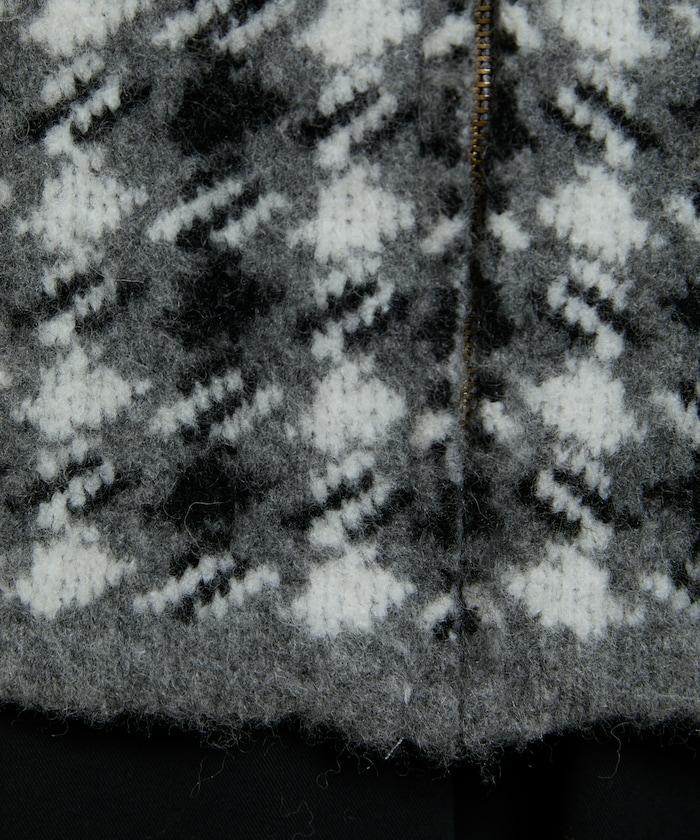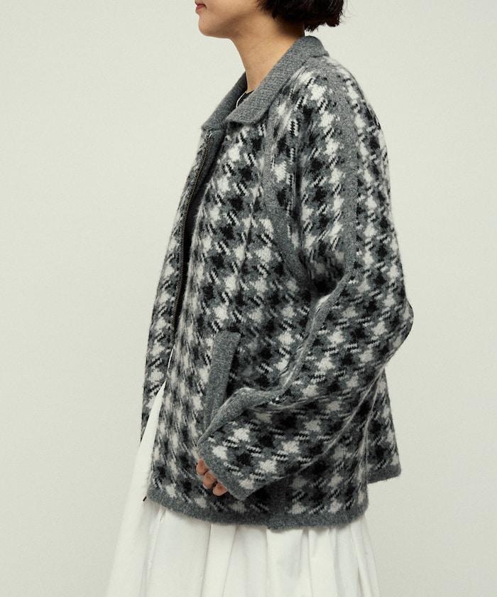 羊毛混紡格紋拉鍊針織夾克