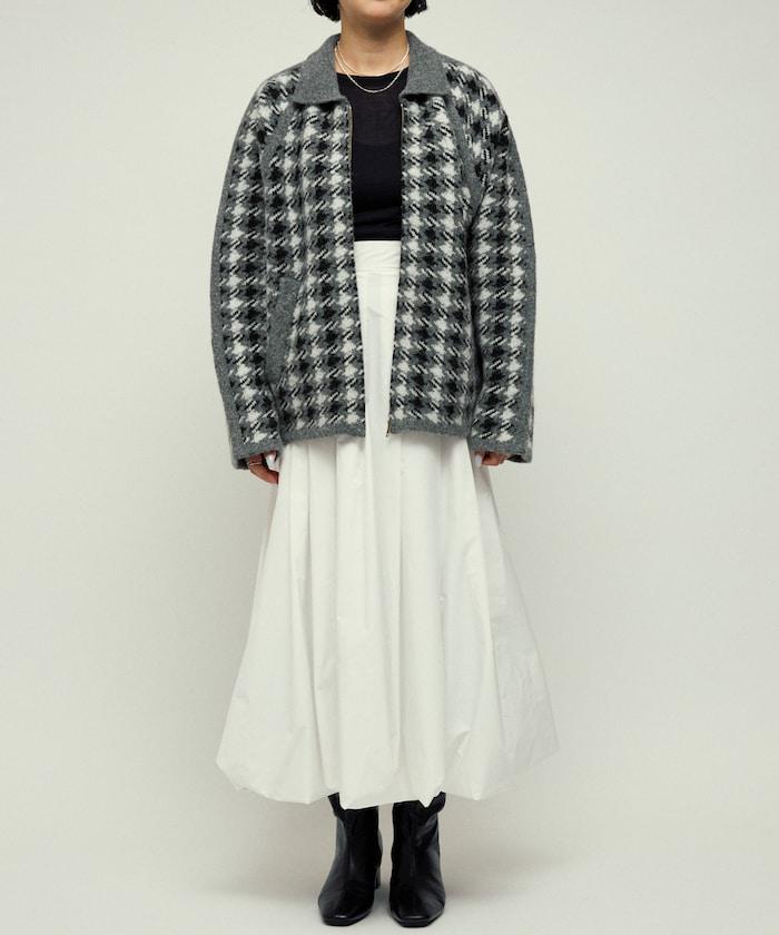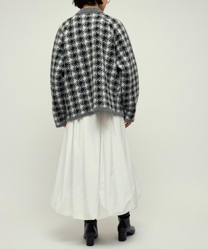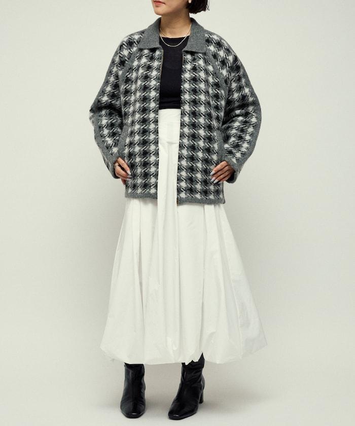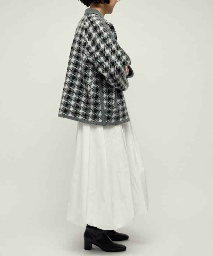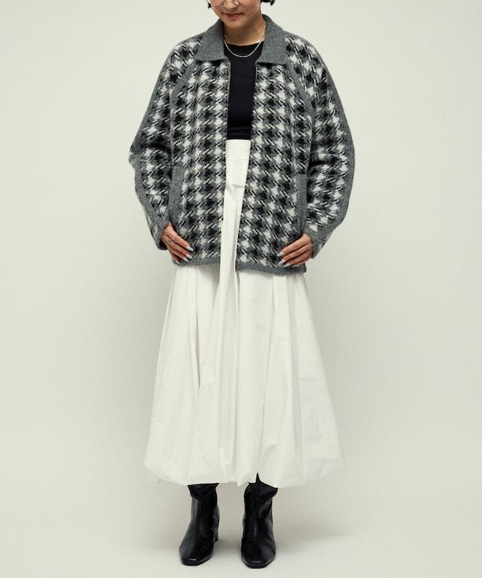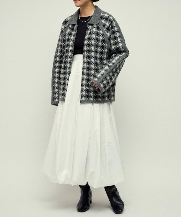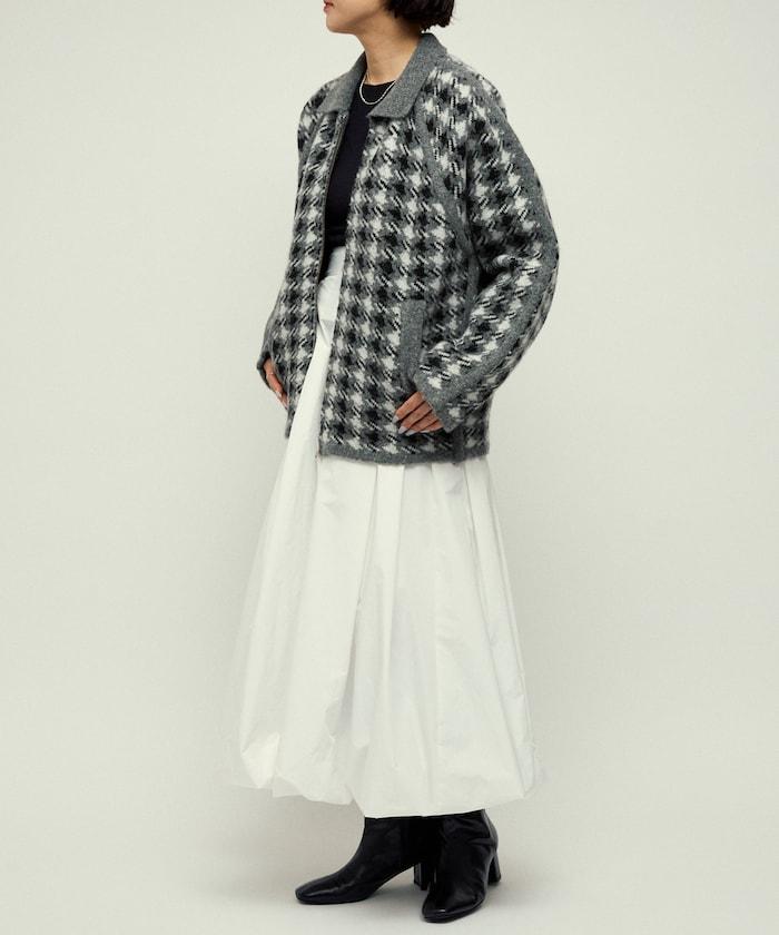 繭型廓形即使搭配厚針織衫和襯衫也顯得很時尚,因此在寒冷的冬天也能穿得優雅而不臃腫。經典的槍會格子圖案通過拉鍊設計和素色滾邊適度休閒化,因此無論是搭配牛仔褲或寬褲的成人休閒風格,還是搭配裙裝的靚麗風格,都值得推薦。