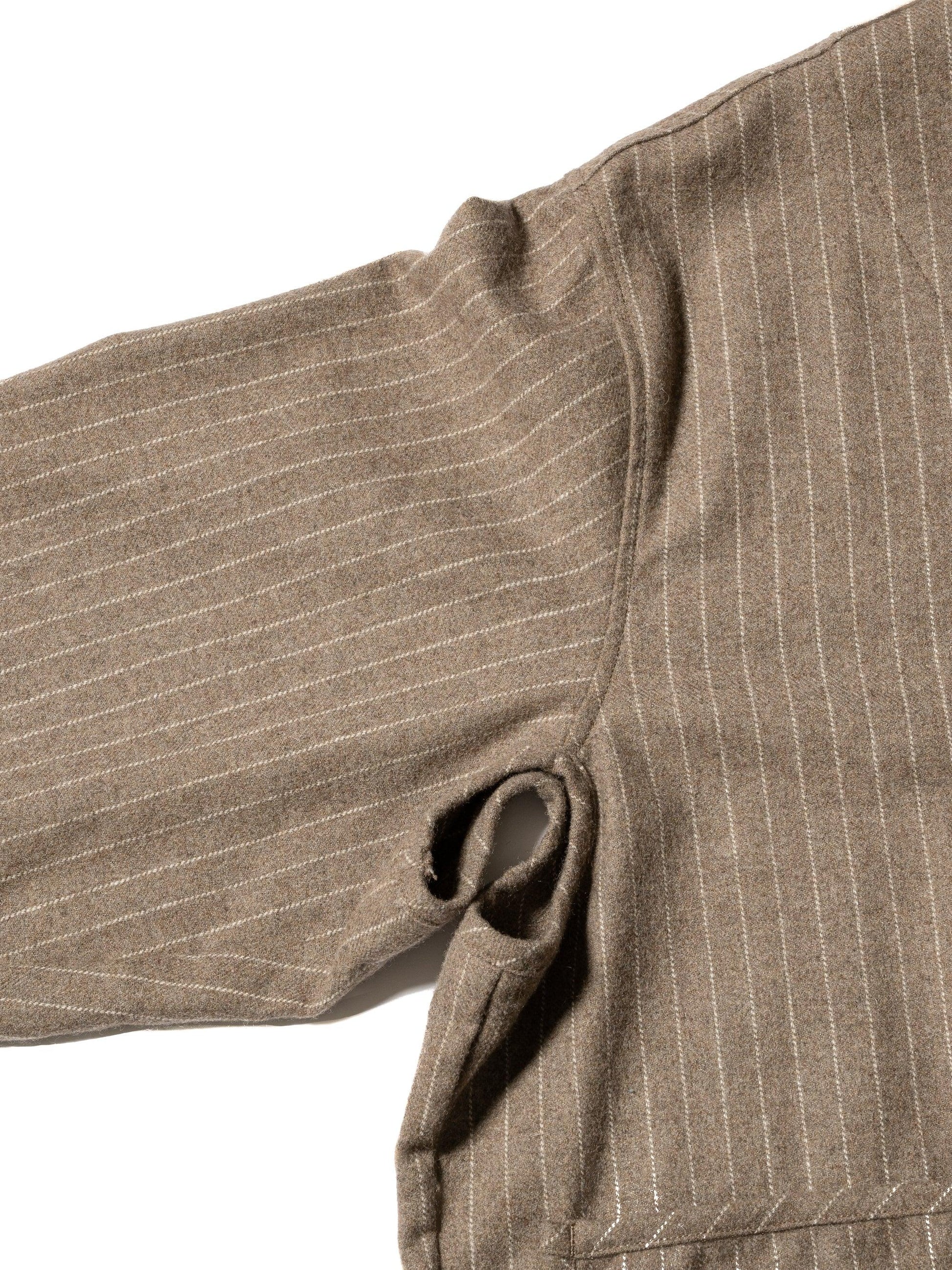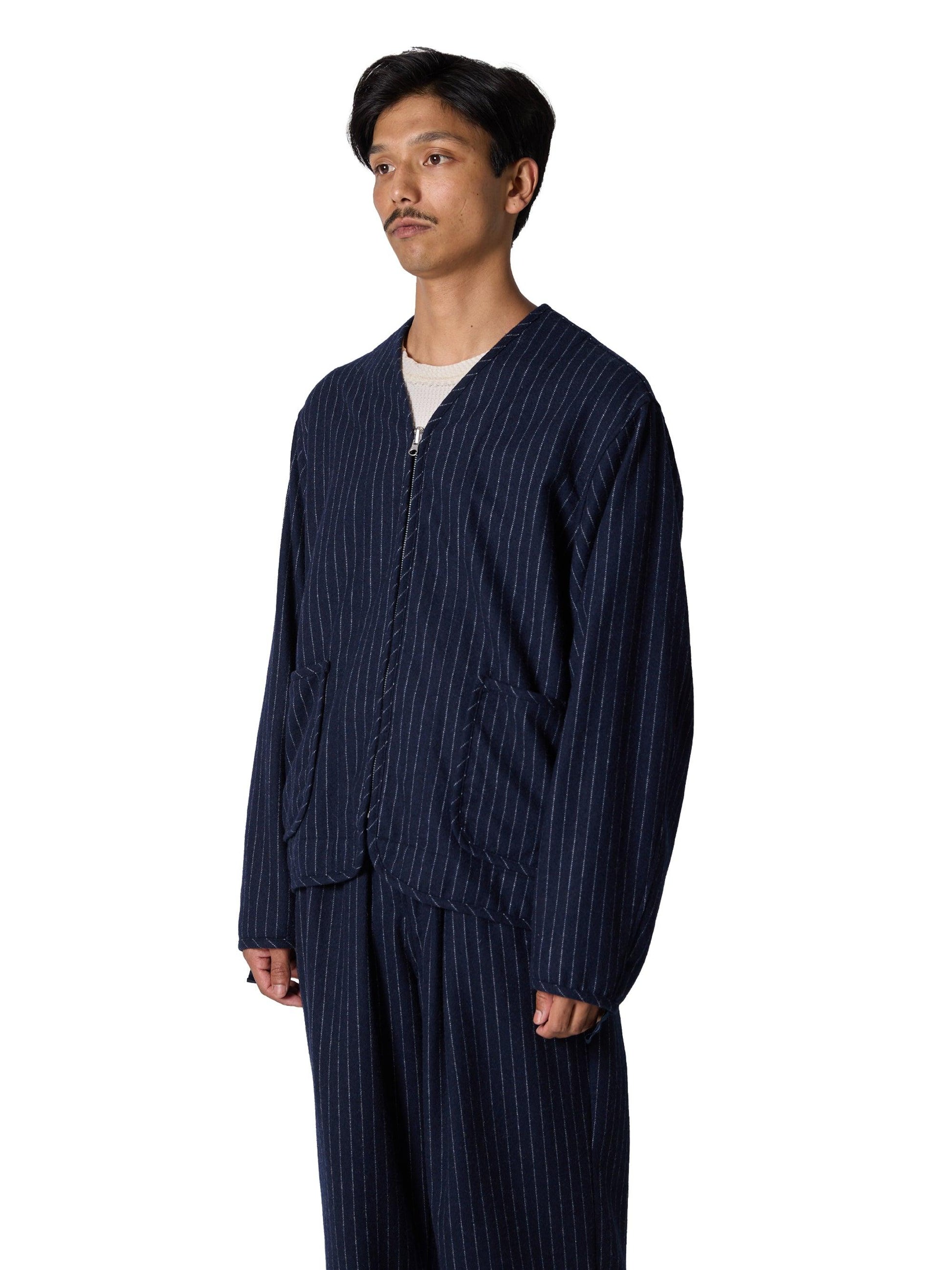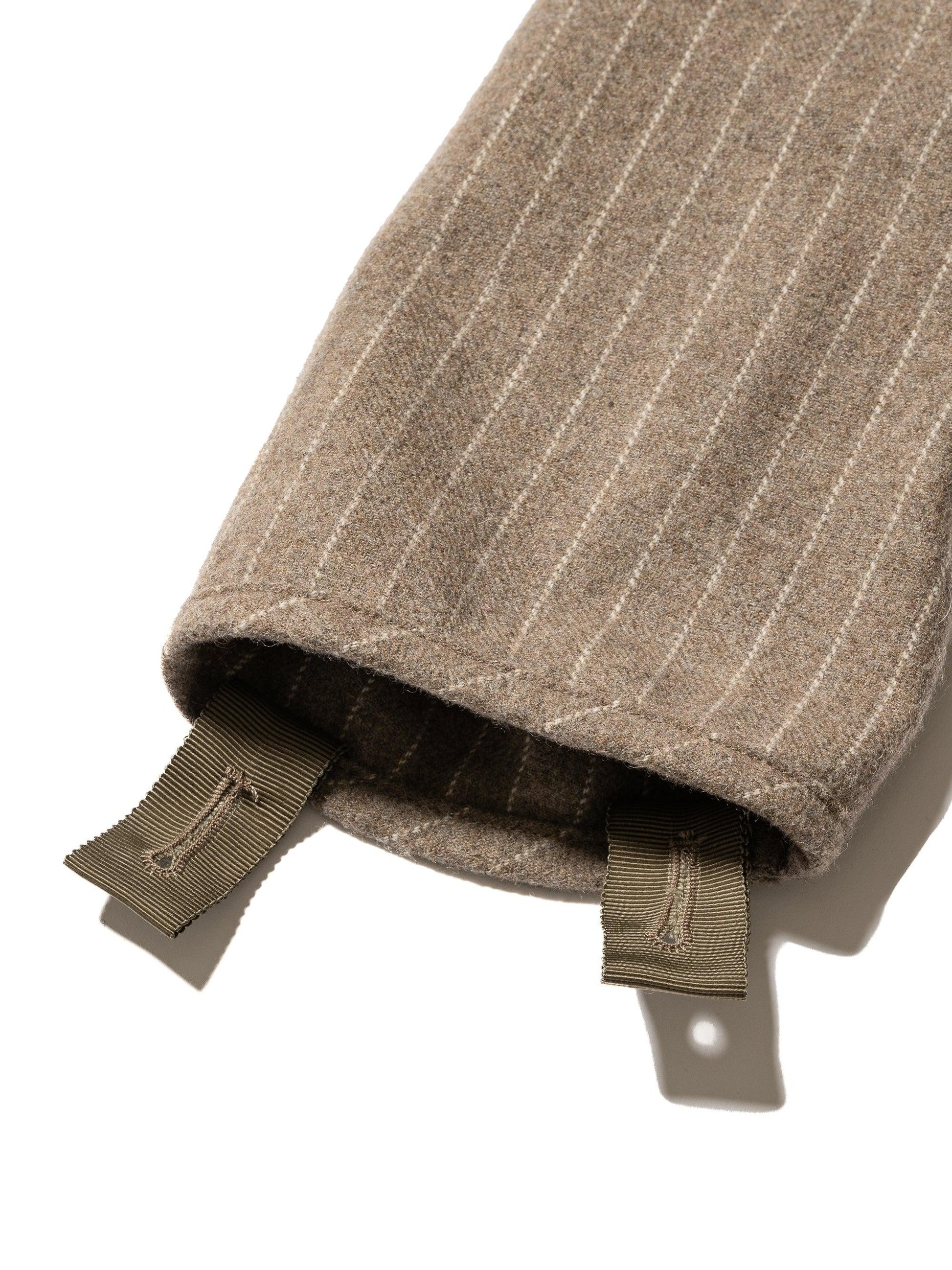採用羊毛和合成纖維混合的斜紋織物。織物略帶毛刺,手感柔軟,厚度適中,耐用性極佳。面料經過水洗處理,褶皺恰到好處。箱形輪廓,寬大的衣身"。可附加到 "M51 "模式派克大衣上的細節特點。