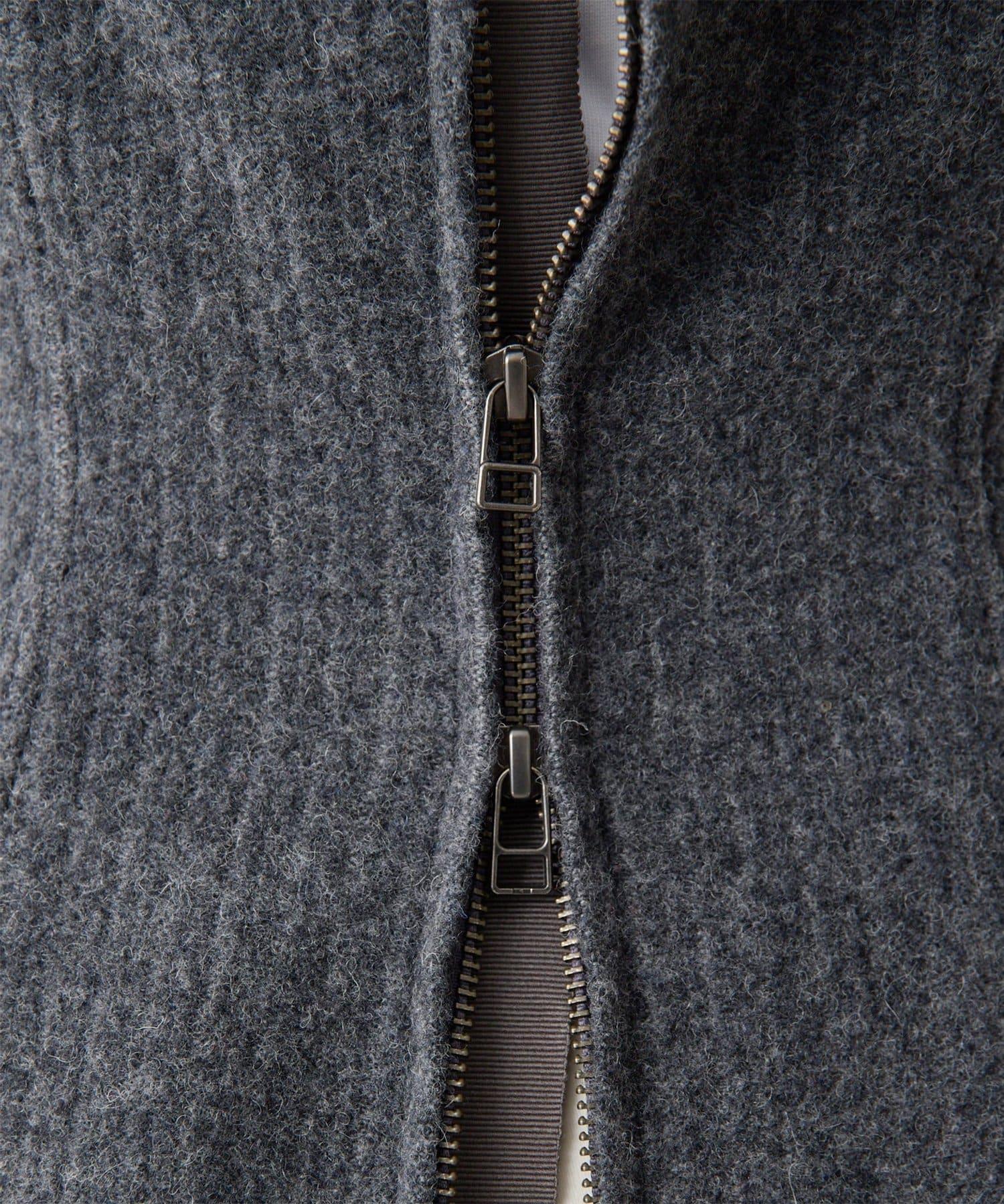 面料由再生羊毛製成,採用燈芯絨風格的匹克結構,外觀極具吸引力。