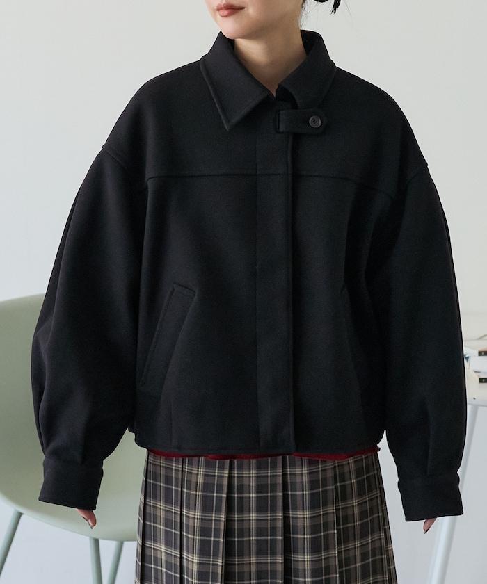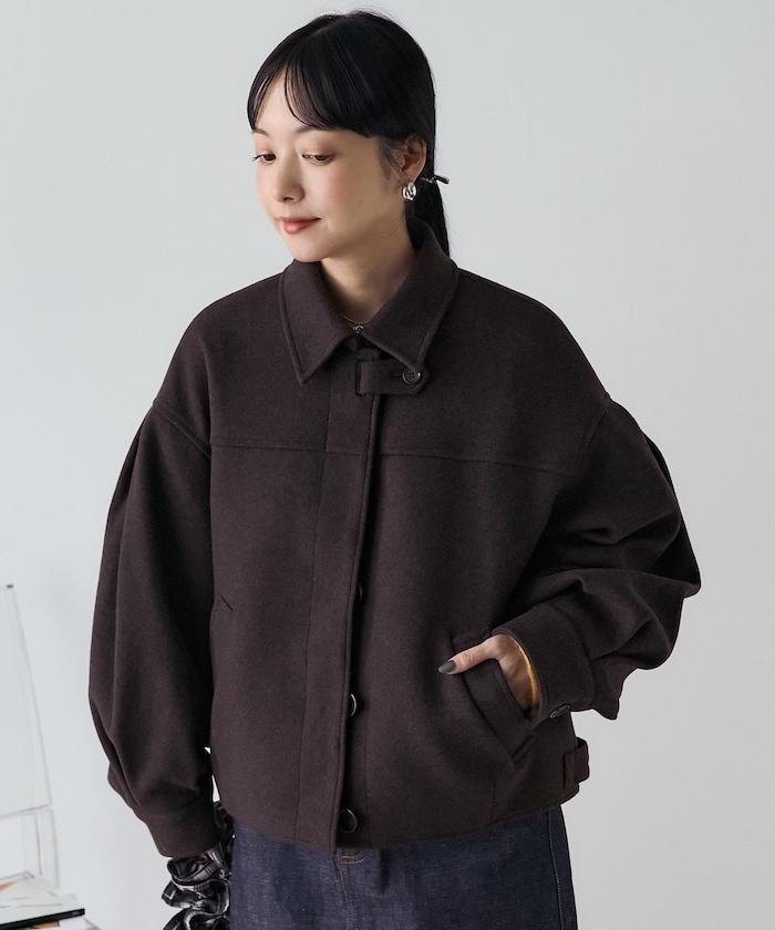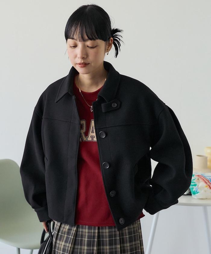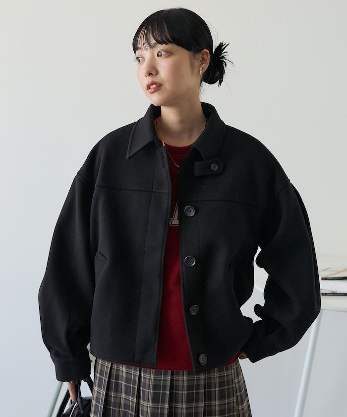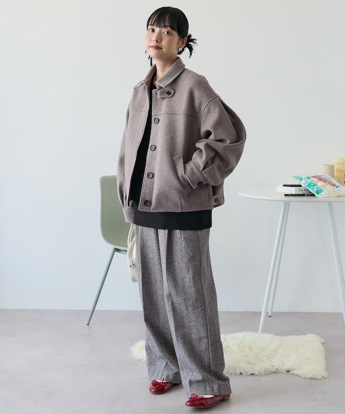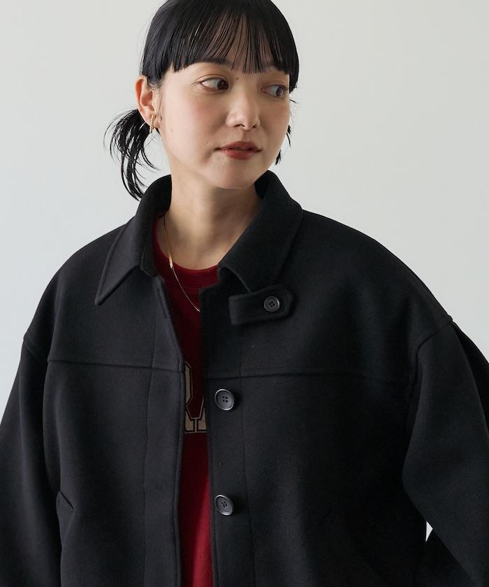 與長款大衣相比,這款短款罩衫給人更加休閒的印象,易於與下裝搭配。