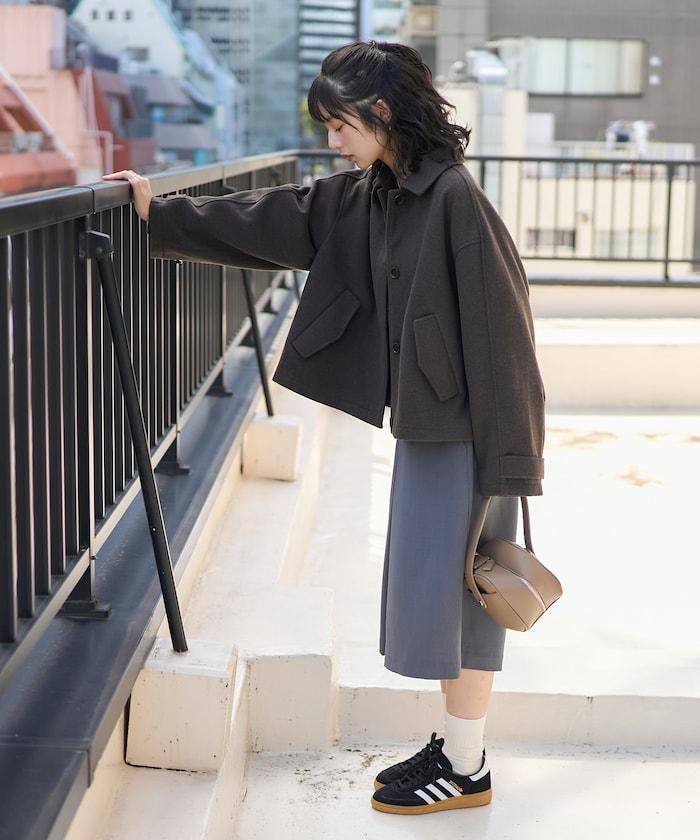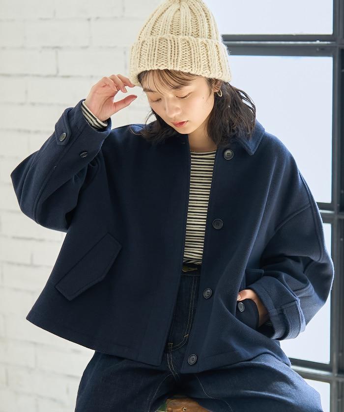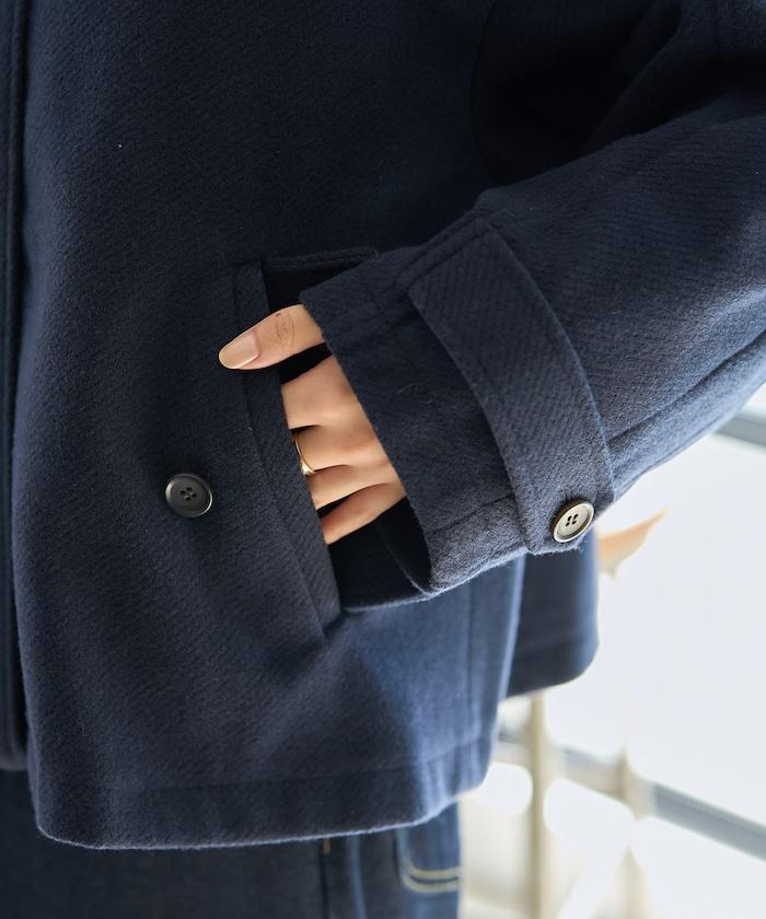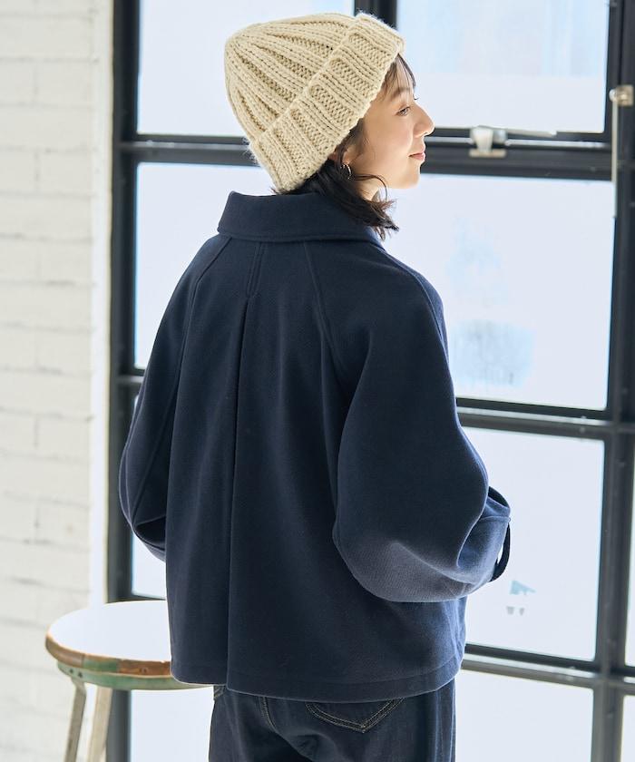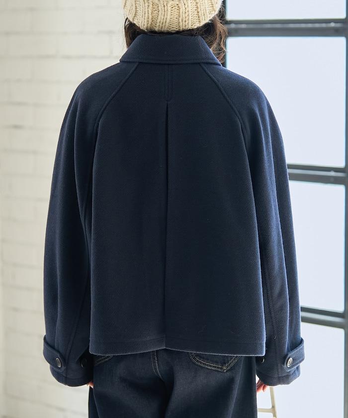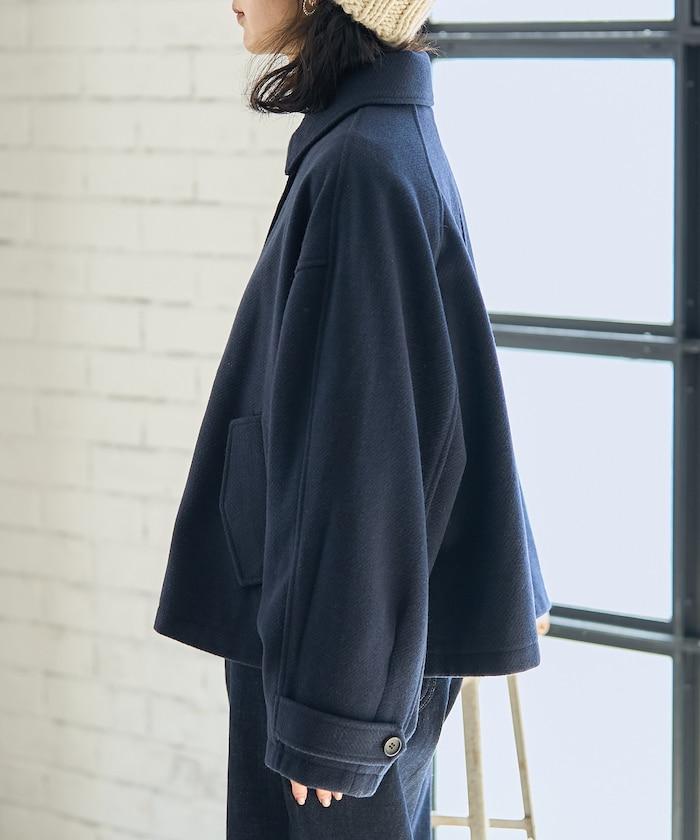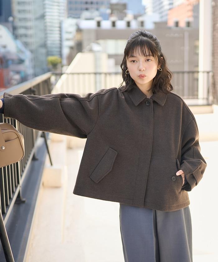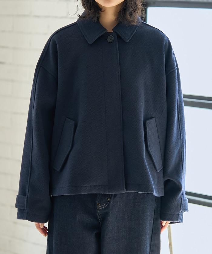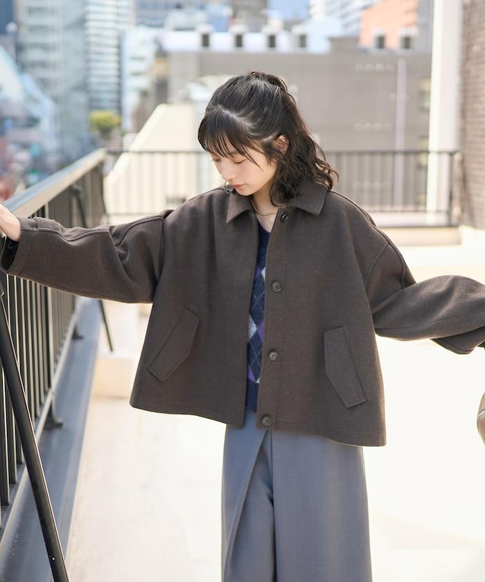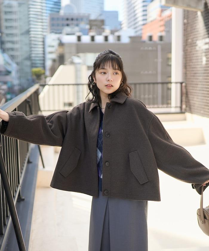 短款罩衫採用輕薄的仿羊毛面料製成。