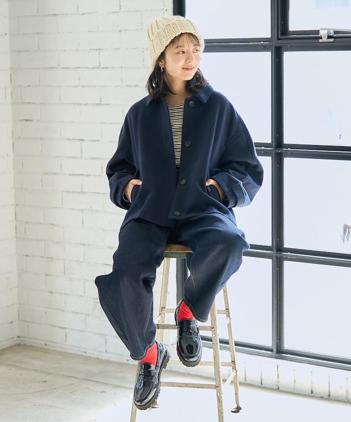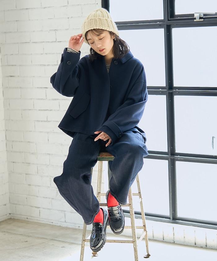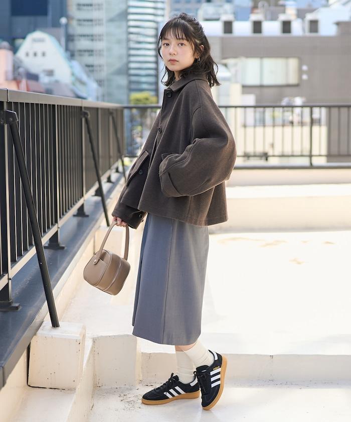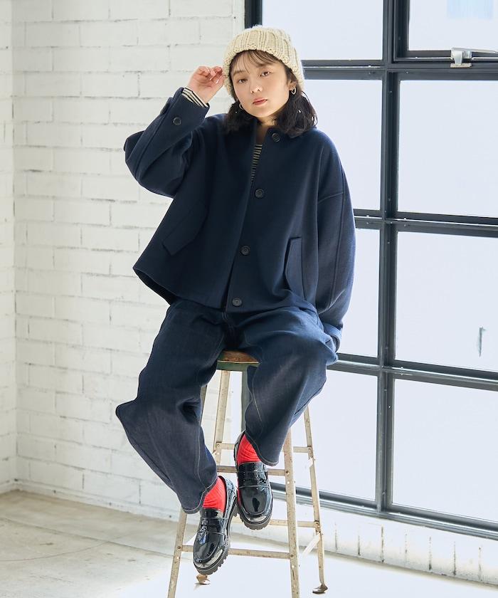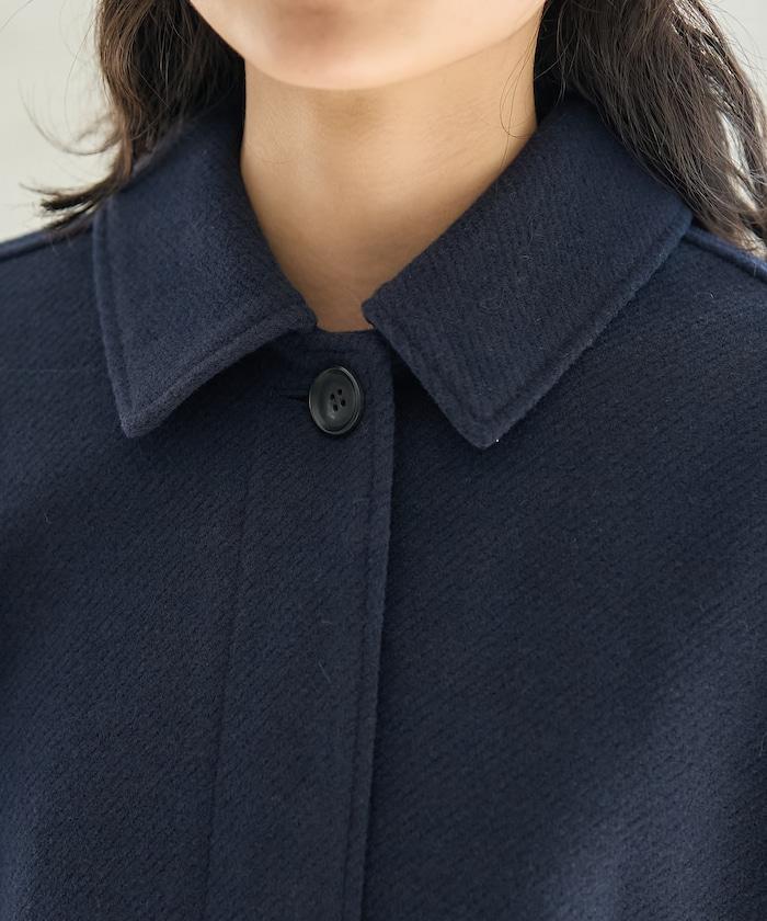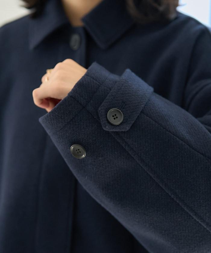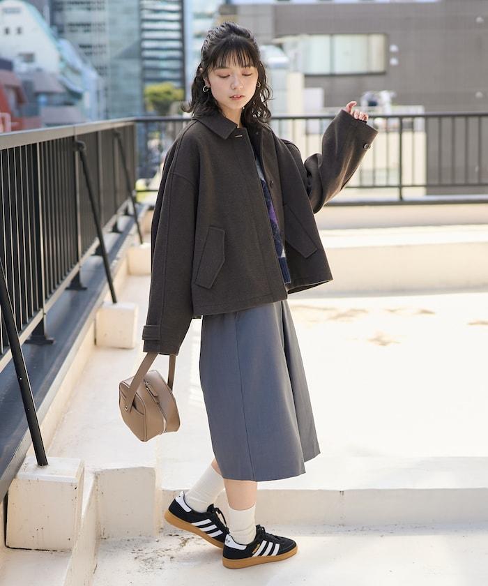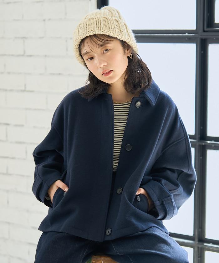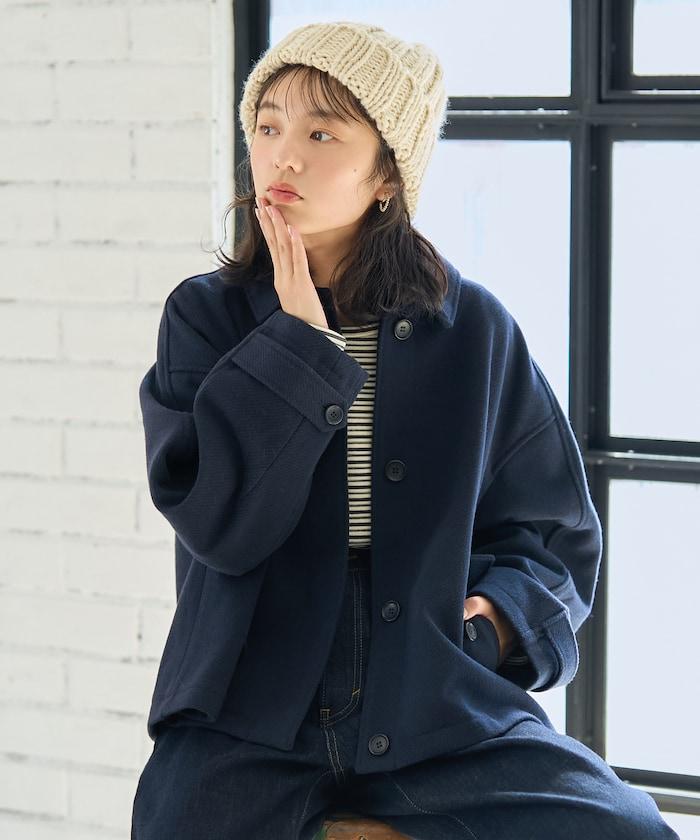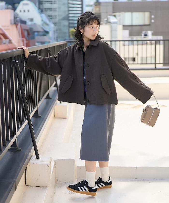 短款罩衫採用輕薄的仿羊毛面料製成。