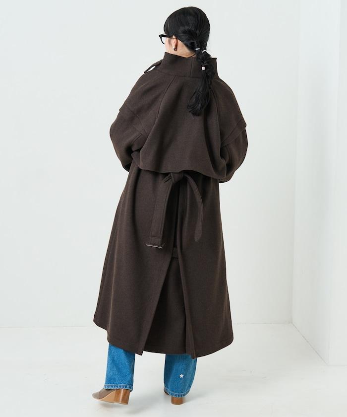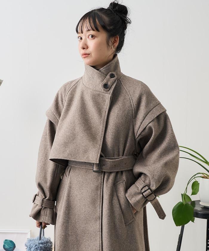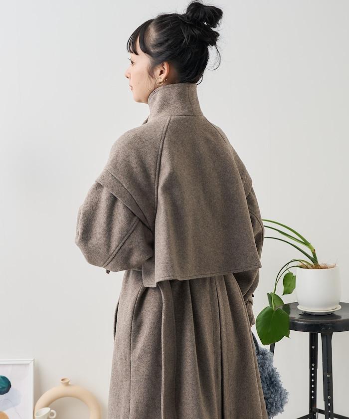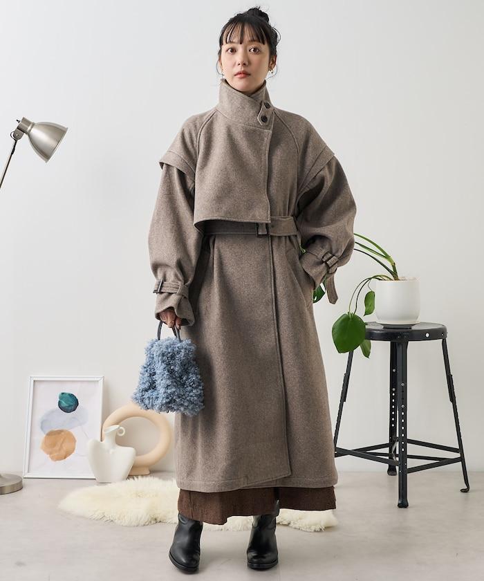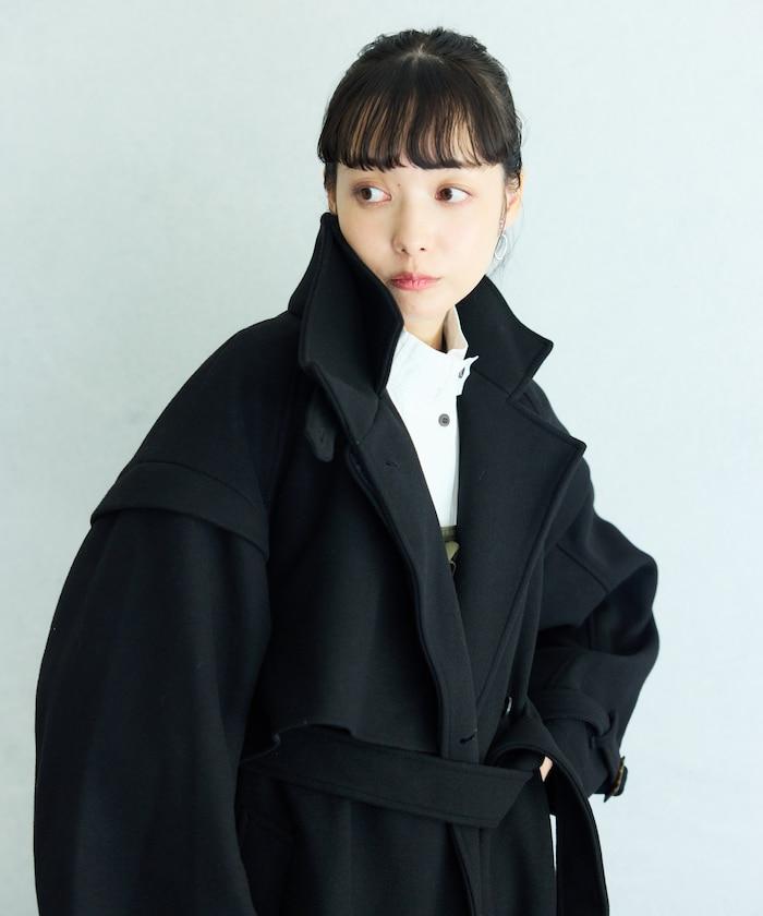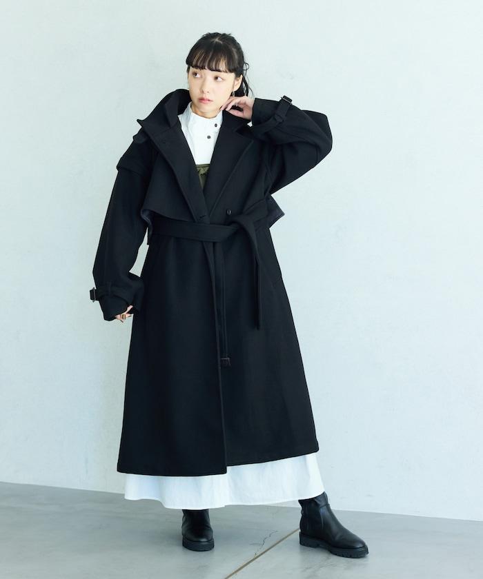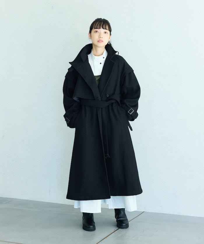 不對稱風衣/長款大衣由輕盈、保暖、厚重的類似熔岩的面料製成。