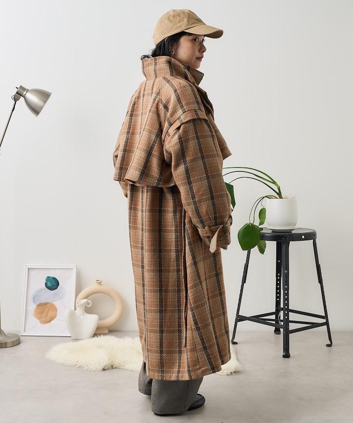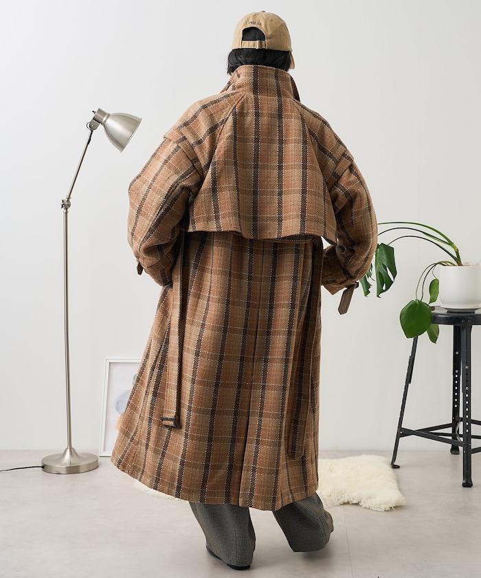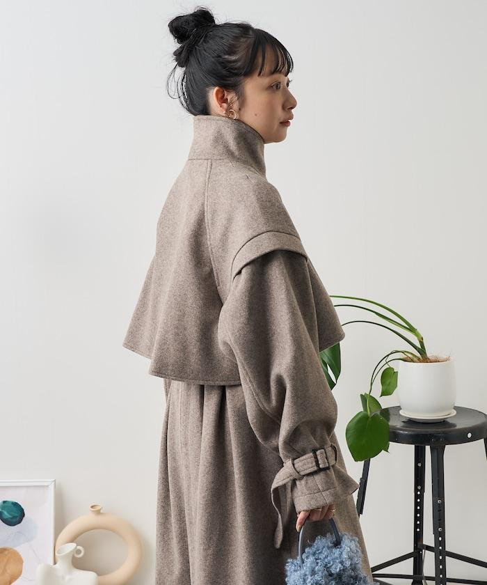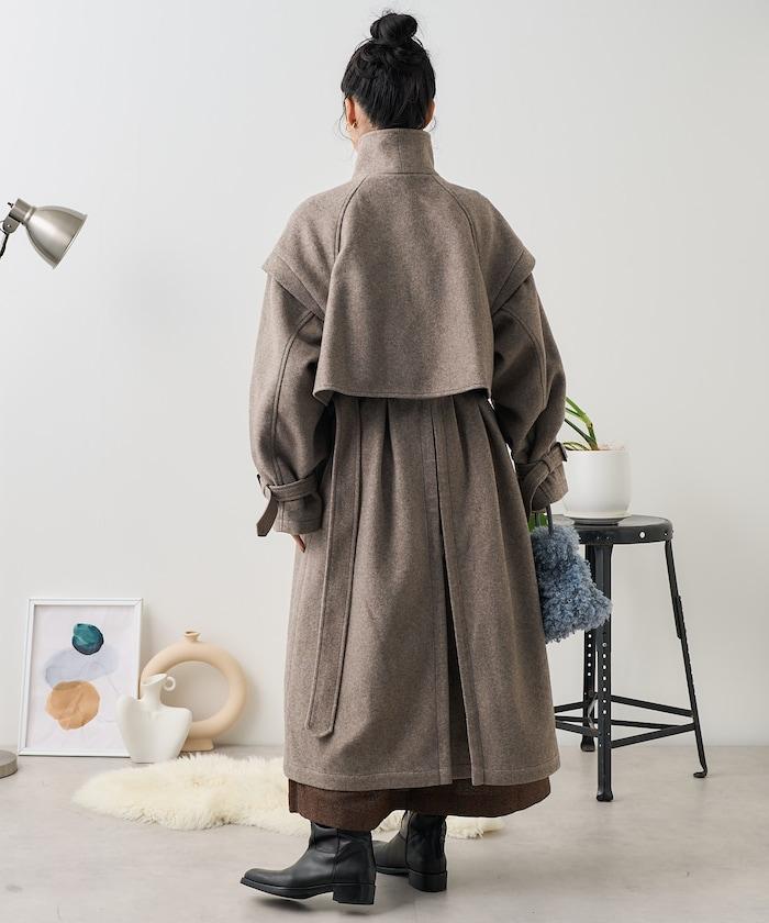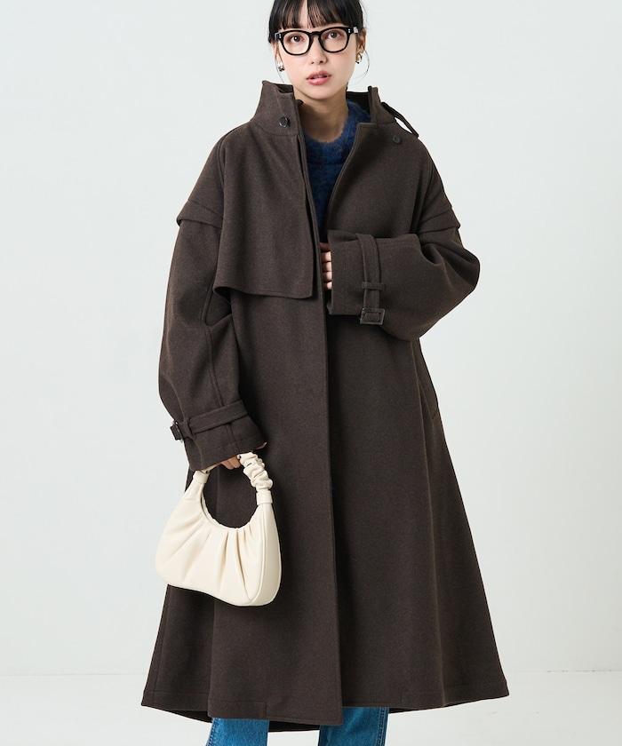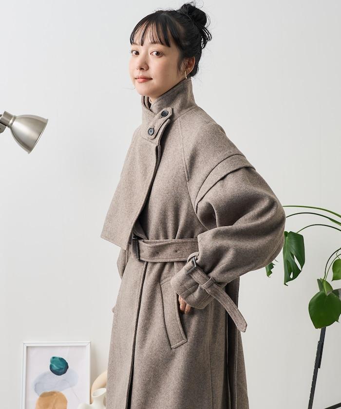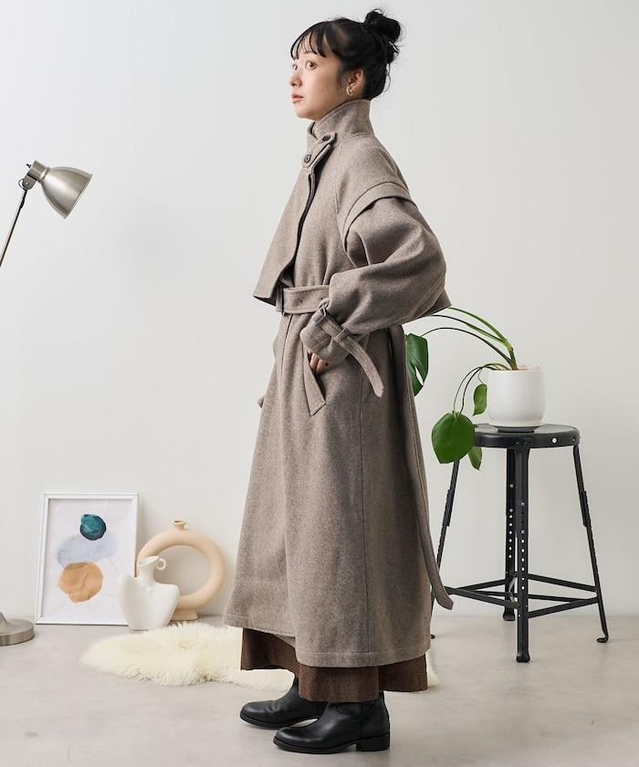 不對稱風衣/長款大衣由輕盈、保暖、厚重的類似熔岩的面料製成。