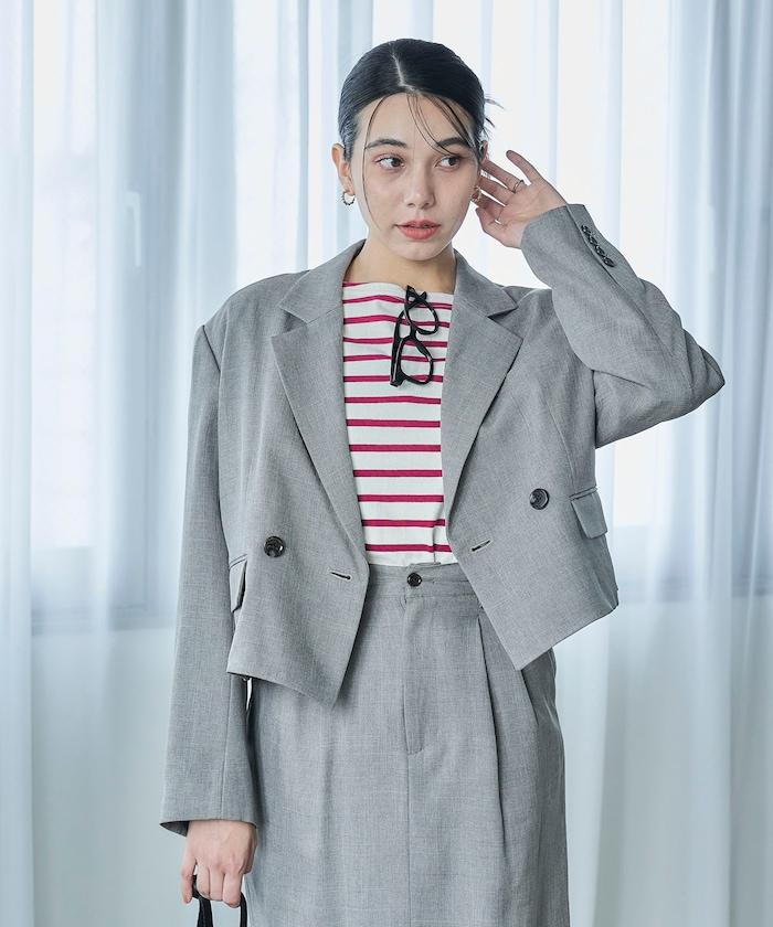 與相同面料的下裝搭配成套穿著,更顯正式和成熟。