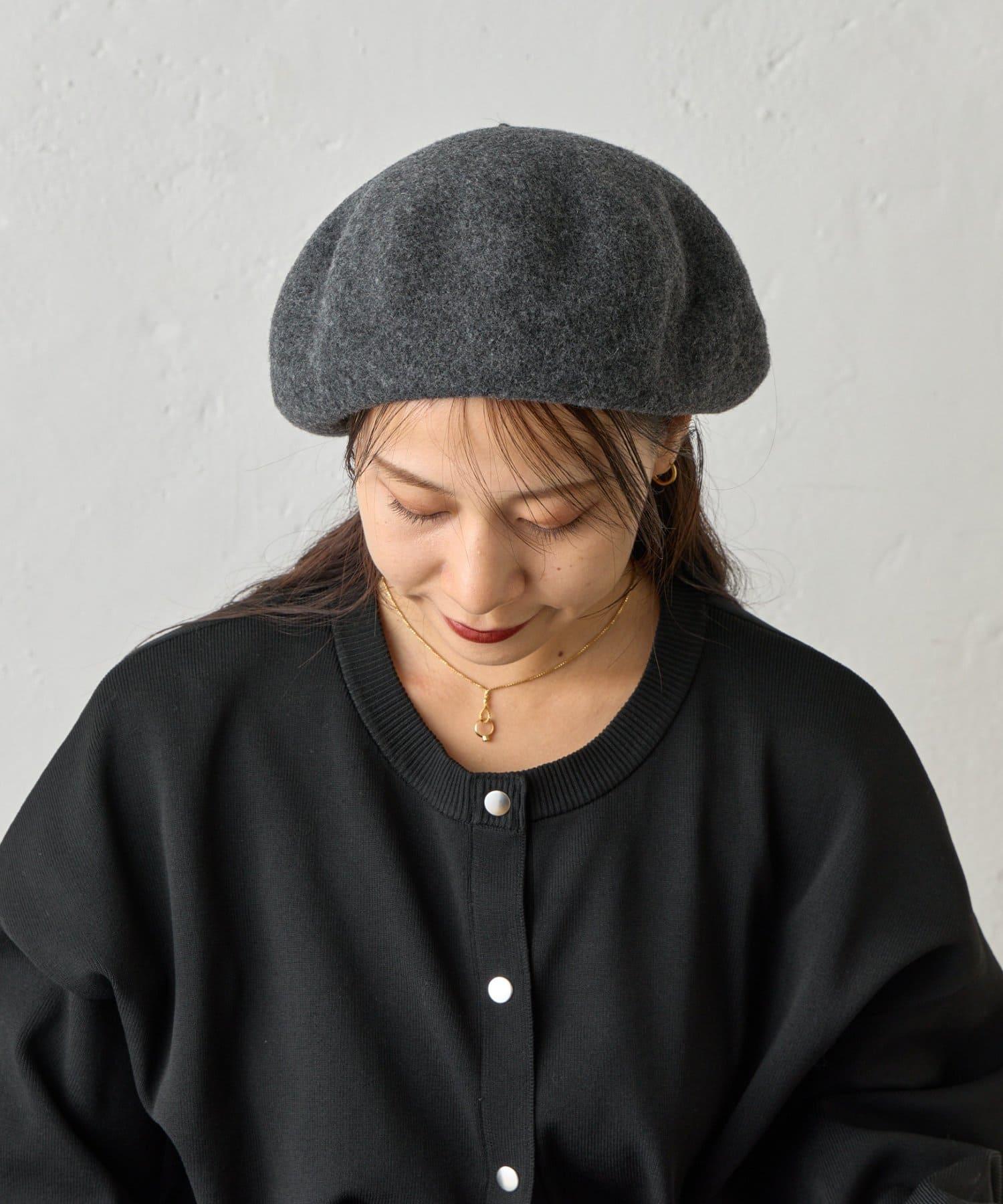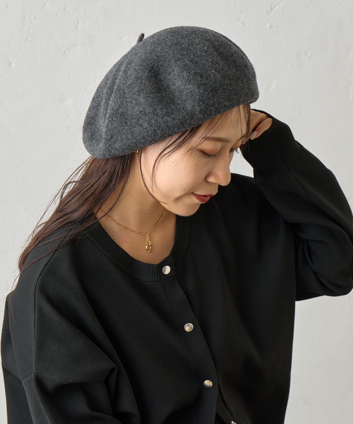 這款羊毛貝雷帽有著可愛的圓形輪廓。